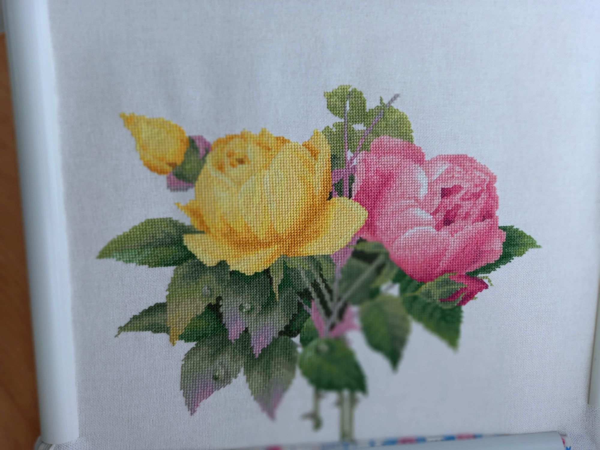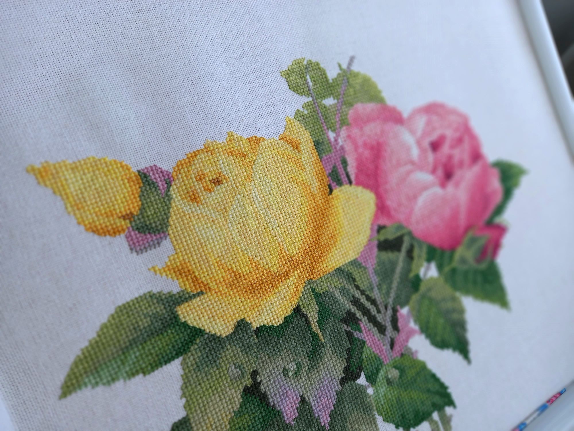 9 июля 2022 Продолжение Душистых роз. Летом чуть медленнее вышивается, но результат радует. Сначала хотела показать на этапе, когда совсем немного не дошилась желтая роза но через 5 дней уже дошила розочку и бутон появился Опять много 3/4 крестиков. Но на желтом это как-то не сильно заметно. У нас всё ещё белые ночи. Вот фото в 21ч.40мин. Луна видна. Это вид из моего окна.Если присмотреться, то видно, что на мостах уже включено освещение (его, кстати в 20ч30 мин. включают) Ксен40, АлёNка, Kattrielle и 17 других сказали спасибо Поделиться сообщением Ссылка на сообщение