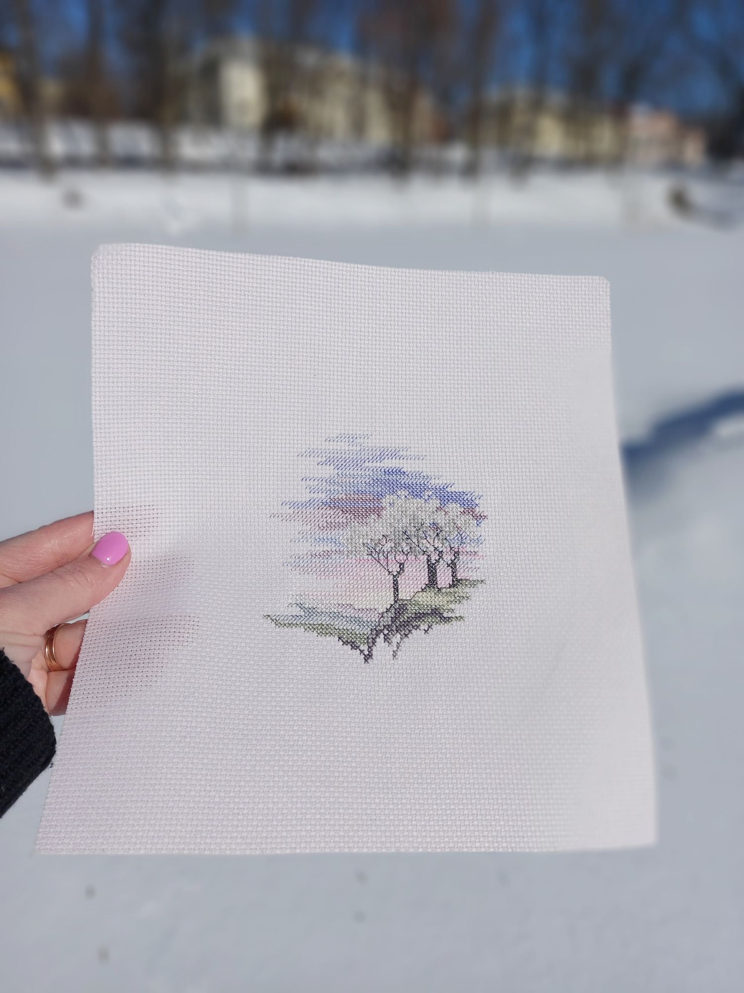 30 марта 2023 10 часов назад, Tata44 сказал(а): А я закончила ледяные деревца! Вышивать там всего дня на 3 (слышите? кто ещё не вышил их?) Но я справилась только за 5 дней. Успела, пока у нас зима, пофоткать. Очень красивая работа, с металликом в снеге на деревцах и с черным-серебристым металликом в стволах деревьев! Очень нравится. Как и Березки у Dervenwoter, и многие морские малявочки этого производителя. Огромное СПАСИБО Мариночке @mag за такой подарочек!!! Frosty Trees было: стало: Хотелось показать блеск металлика, но по-моему (на последнем фото) удалось передать искристость снега, а блеск металлика - нет Тут следы стайки снегирей: А ещё ко мне вышла кошечка - посмотрела, ещё подошла, вот тут она помяукала мне, искупалась в снегу, и развернулась, и пошла обратно. Фсё, провожаю зимушку, хоть у нас и в четверг, и в пятницу, и в субботу и в воскресенье по прогнозу стоит "снег"! Встречаю весну! Марина,как же я люблю это морозное деревце! Это одна из двух самых любимых мной работ. Я вышивала по набору и сначала хотела поменять канву на равномерку,но не нашла подобного цвета. А сейчас нравится то,что получилось. Думаю повторить в подарок. Маринка и мне купила сиреневую канву и рамочку квадратную. Я то оформила в круглую. Очень интересно посмотреть на твое оформление. Марин,у вас еще прям зима-зима. И снег такой чистый. А у нас и зимой снега было немного, а сейчас так вообще весь растаял. Уже на дачу ездим... Tatiana2406, Leutnant Ripley, Marusya1978 и 4 других сказали спасибо Поделиться сообщением Ссылка на сообщение
