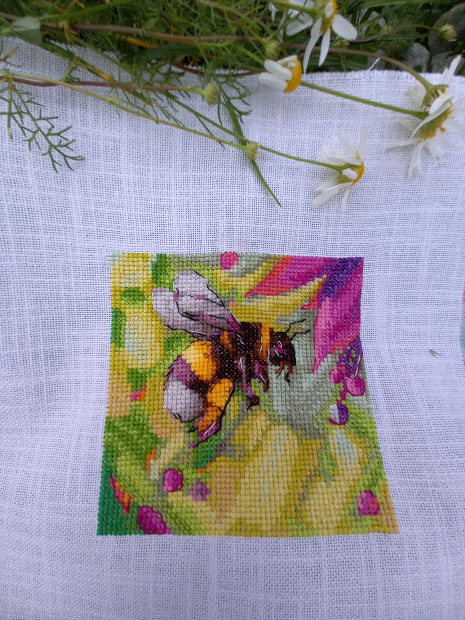 16 октября 2023 А я тем временем я закончила таки свой "пятый елемент" под названием "Охота на мёд". Немножко лета принесла вам чтоб осень холодной не казалась. Вот было вот стало: и тадам: бэк: Вторая гаечка зеленись! Финиш ещё одного, Шмель. Здесь я позволила себе изменить бэк на цветочке с черного на фуксиевый Ну вот так мне захотелось, чтобы цветок не был очерчен черным. Хотя, вряд ли это кто-то заметил бы. было: стало: Шмель у меня и в ромашках полетал, и в бархатцах желтых и на бархатцы оранжевые приземлился. А! забыла! Есть ещё при искусственном свете фото, он, оказывается и к космеям пристраивался! Вот какой неугомонный шмель оказался!Третья гаечка зазеленилась! Завтра покажу что-нибудь ещё Olechka19, vodonika, Путешественница и 18 других сказали спасибо Поделиться сообщением Ссылка на сообщение