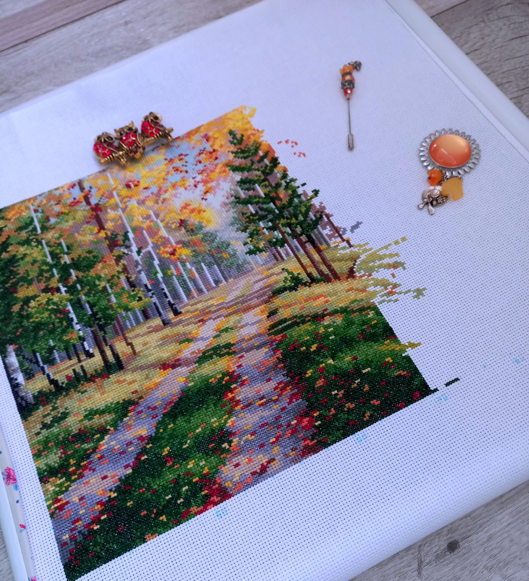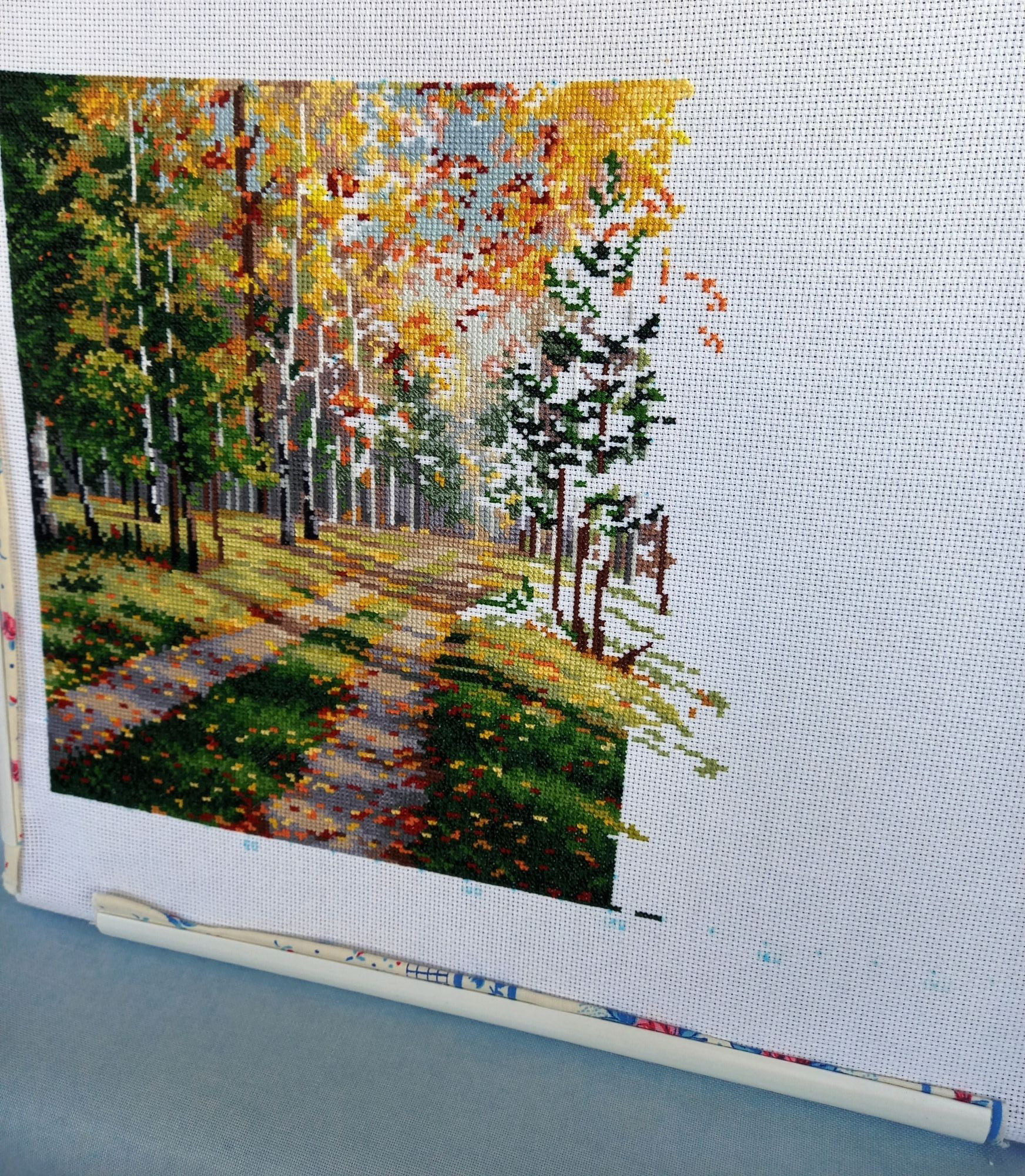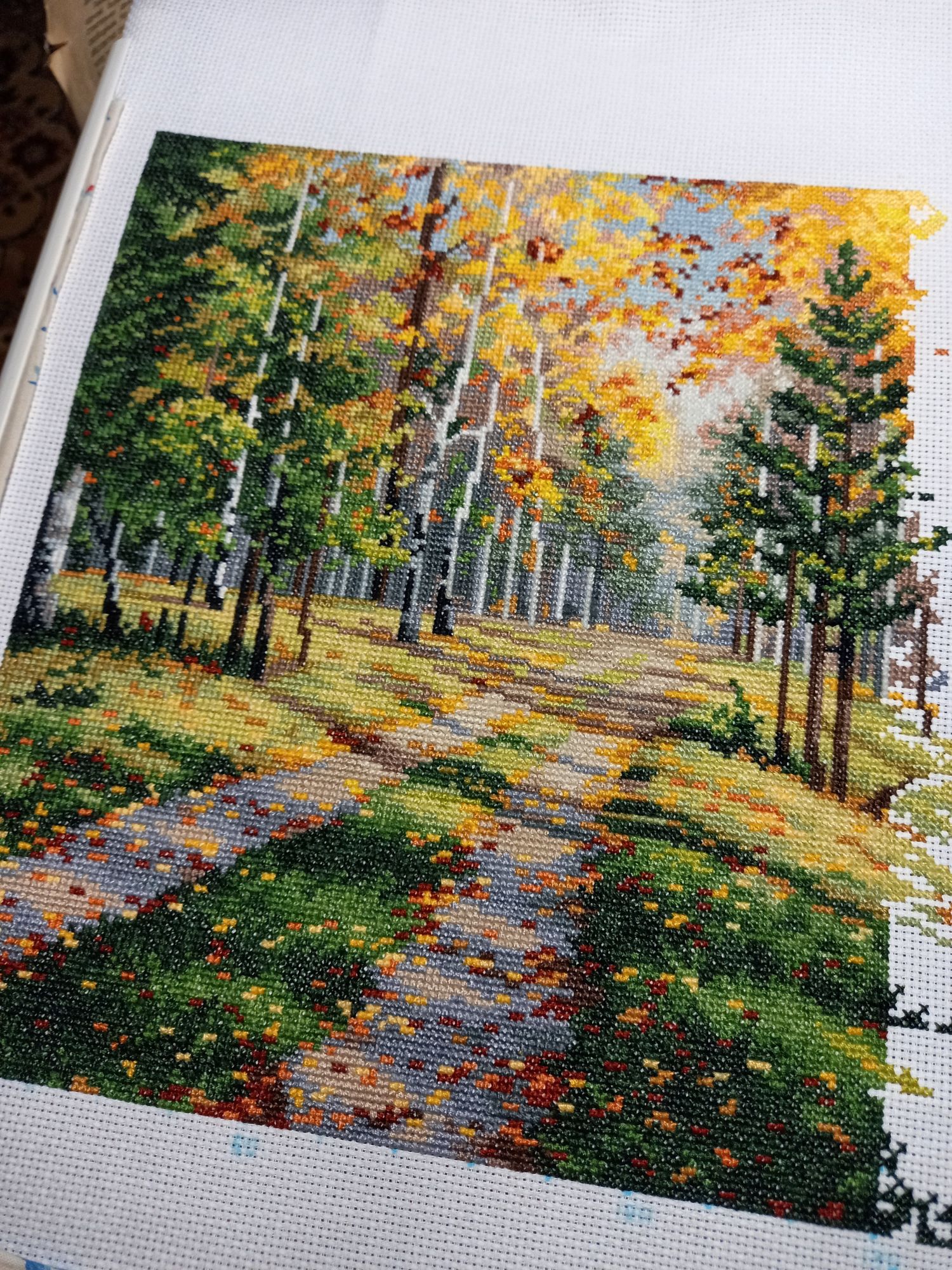 16 декабря 2023 Всем привееет! Наконец я собралась что-то написать. Сейчас самое сложное время у нас на работе, ноябрь-декабрь всегда очень забойные. Усталость накапливается. Нет никаких сил ни на что. Еле урвала кусочек субботнего утра. И то, не знаю, получится сегодня что-то написать или нет. Я всё это время была погружена в свою тихую и ясную, оттого прекрасную Осень. Ударно потрудилась. Сделала оставшиеся 40 процентов. Как я и хотела, завершила крестиковую часть, и к Новому году отбэкаю. Вторая половина работы показалась сложнее, В основном только ветки и листочки самых разнообразных цветов. Только кусочек воды порадовал - это мне очень нравится всегда в пейзажах. Уже всё прекрасно в этой работе, но веточки четко очерченные всё же добавят то, чего не хватает для полноты картины. И ещё я заметила; правую половину можно у же рассматривать как отдельную работу и левая половина - вполне себе отдельная работа Было; Стало; Бэка предстоит много и разноцветного, но сразу бэкать я однозначно без стирки не могла. Поэтому весь его объём буду делать сейчас. Так что скоро ждите нас с Осенью! Немного вам наших осенних ноябрьких фото Новый процесс и сразу финиш! Белка Зинаида, У Аннушки. В наборе вложено всякой всячины, на первом фото смотрите.Белку вышивала 5 дней. Всё сидела и думала, как люди за 2 дня это делают, ну никак у меня такой финт не получается. А потом ещё бэкала, пришила табличку, клеила задник. И так же, как у Нади @Nadinka-Blondinka в подставке она свободно болтается! И я тоже не хочу белку приклеивать к своей подставке. Но вот пока стоит, всё нормально, а если двигать её - болтается. А все остальные фигурки уже довольно плотно втискиваются в свои подставки, видимо, это как-то учли? И за девчушку свою я бралась несколько раз, повышивала личико и ручки, а как дошла до цветочков - остановиться не могла! Пока шьется на черной канве, буду продвигать понемногу. Было; Стало; Всем хороших выходных, и приятных вам забот по подготовке к Новому году!!!! Путешественница, Olechka19, Хозяйка смешных зверей и 24 других сказали спасибо Поделиться сообщением Ссылка на сообщение