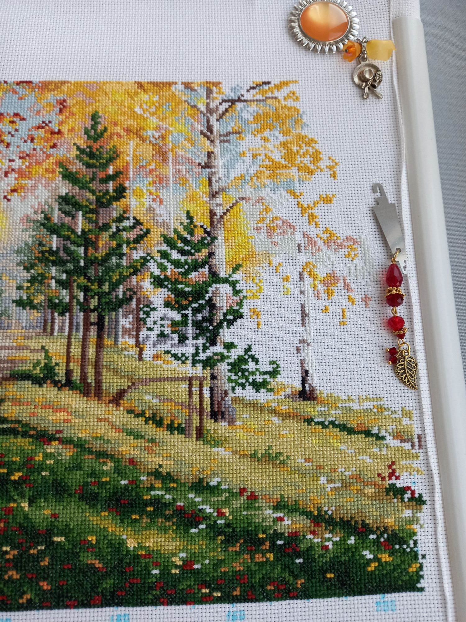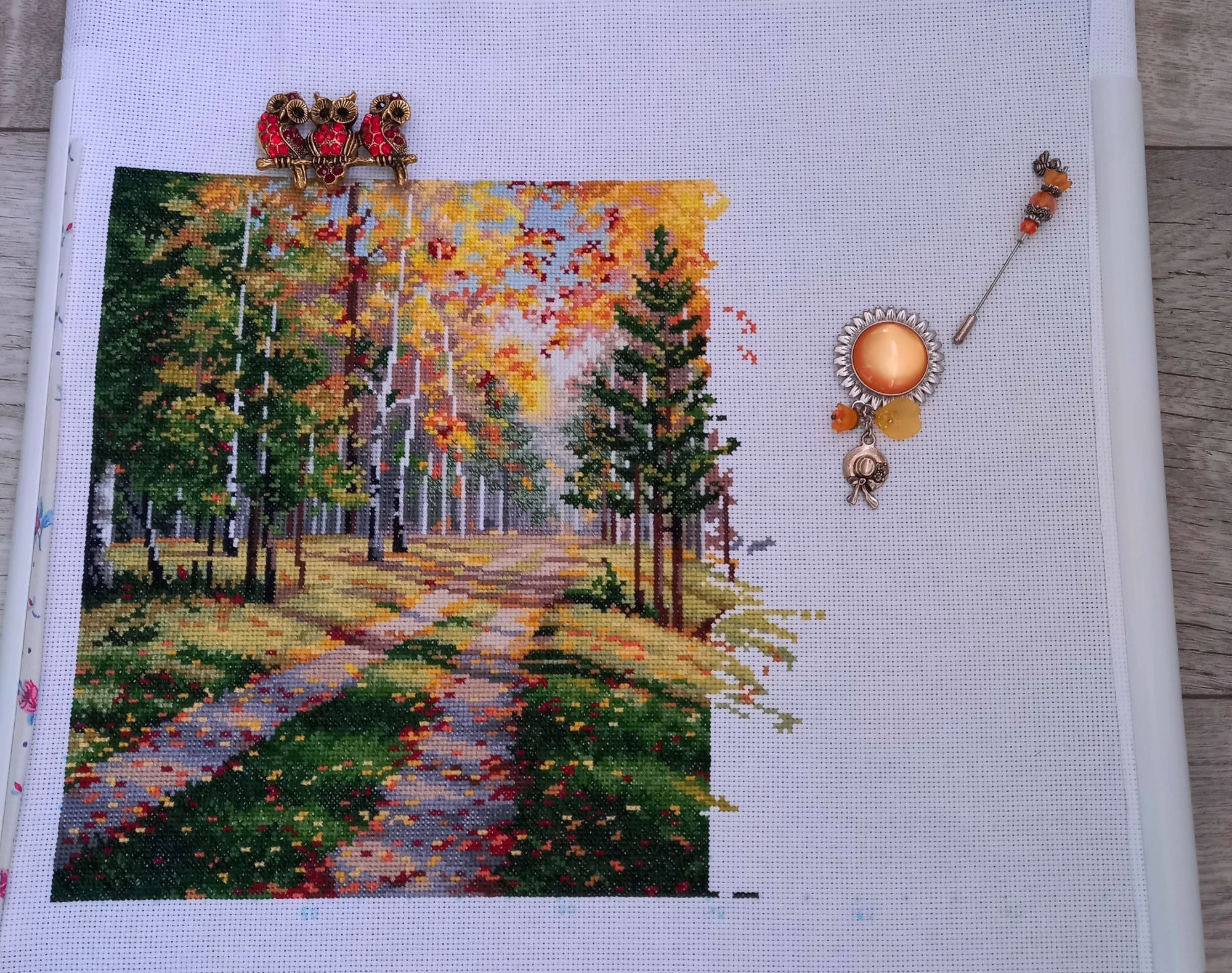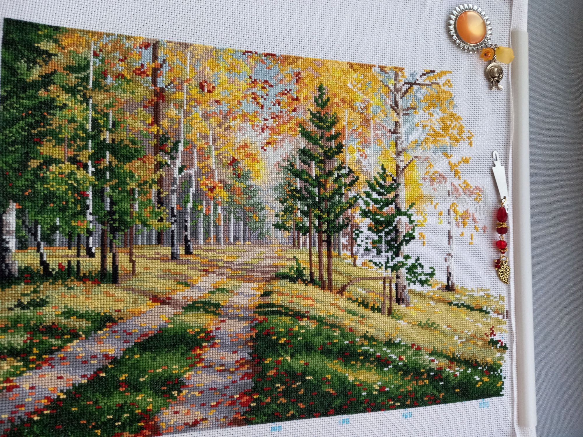 16 декабря 2023 Всем привееет! Наконец я собралась что-то написать. Сейчас самое сложное время у нас на работе, ноябрь-декабрь всегда очень забойные. Усталость накапливается. Нет никаких сил ни на что. Еле урвала кусочек субботнего утра. И то, не знаю, получится сегодня что-то написать или нет. Я всё это время была погружена в свою тихую и ясную, оттого прекрасную Осень. Ударно потрудилась. Сделала оставшиеся 40 процентов. Как я и хотела, завершила крестиковую часть, и к Новому году отбэкаю. Вторая половина работы показалась сложнее, В основном только ветки и листочки самых разнообразных цветов. Только кусочек воды порадовал - это мне очень нравится всегда в пейзажах. Уже всё прекрасно в этой работе, но веточки четко очерченные всё же добавят то, чего не хватает для полноты картины. И ещё я заметила; правую половину можно у же рассматривать как отдельную работу и левая половина - вполне себе отдельная работа Было; Стало; Бэка предстоит много и разноцветного, но сразу бэкать я однозначно без стирки не могла. Поэтому весь его объём буду делать сейчас. Так что скоро ждите нас с Осенью! Немного вам наших осенних ноябрьких фото Новый процесс и сразу финиш! Белка Зинаида, У Аннушки. В наборе вложено всякой всячины, на первом фото смотрите.Белку вышивала 5 дней. Всё сидела и думала, как люди за 2 дня это делают, ну никак у меня такой финт не получается. А потом ещё бэкала, пришила табличку, клеила задник. И так же, как у Нади @Nadinka-Blondinka в подставке она свободно болтается! И я тоже не хочу белку приклеивать к своей подставке. Но вот пока стоит, всё нормально, а если двигать её - болтается. А все остальные фигурки уже довольно плотно втискиваются в свои подставки, видимо, это как-то учли? И за девчушку свою я бралась несколько раз, повышивала личико и ручки, а как дошла до цветочков - остановиться не могла! Пока шьется на черной канве, буду продвигать понемногу. Было; Стало; Всем хороших выходных, и приятных вам забот по подготовке к Новому году!!!! Путешественница, Olechka19, Хозяйка смешных зверей и 24 других сказали спасибо Поделиться сообщением Ссылка на сообщение