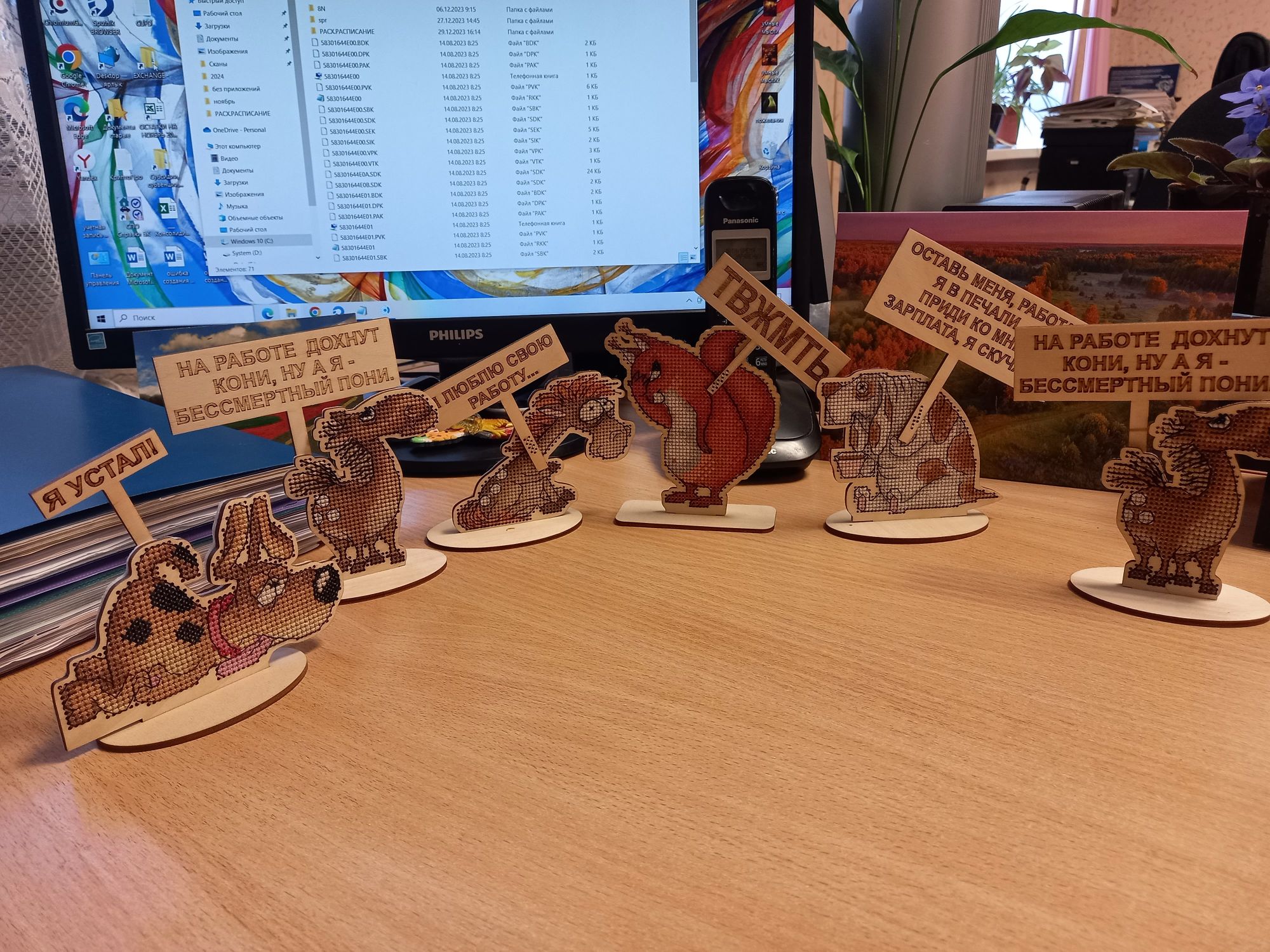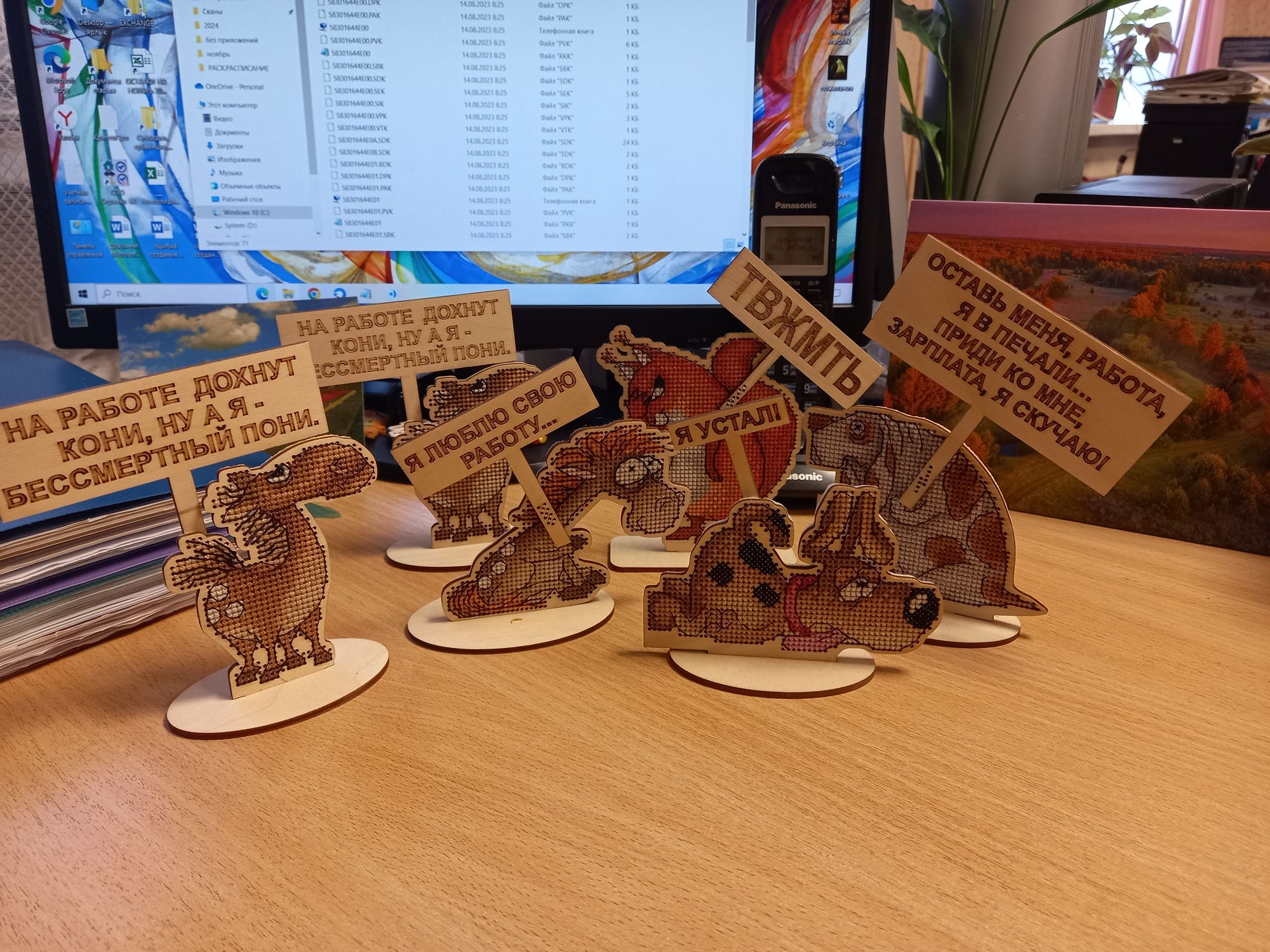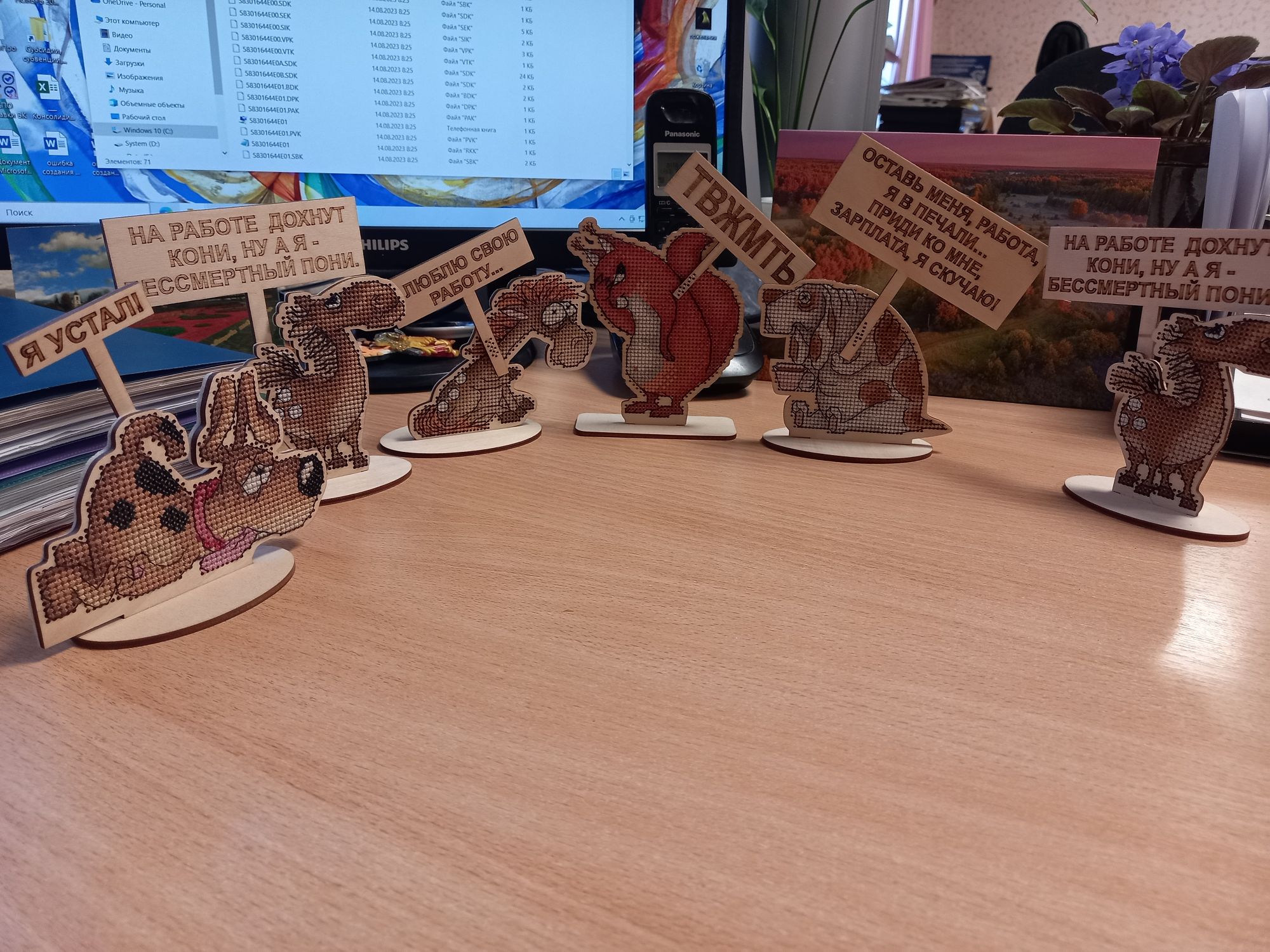 4 марта 2024 Всем привеееет! Так хотела я отметиться с фонариком по окончании зимы. Законченным фонариком. Но не успела. Я добралась до третьего угла, и до четвертого. Все крестики и полукрестики вышиты. Постирала, погладила и ..... не сделала бэк.... было: стало: Далее: Собака Валера У Аннушки, закончила! Было: стало: И начала Ещё одного пони, гордого такого, непобедимого: У Аннушки, Федот №2. А также вышила ещё одну Белку Зинаиду: Ну очень понравилась мне она. Думаю, что и у моих сослуживиц она будет отмечена. Почему-то нет фото, где две белки вместе!!?! Придётся опять собирать в кучу всех и фоткать... А пока вот так выглядит отряд моих деревяшек: Всем добра и весеннего яркого солнышка!!!!! Охотница, Juliay, nogres и 20 других сказали спасибо Поделиться сообщением Ссылка на сообщение