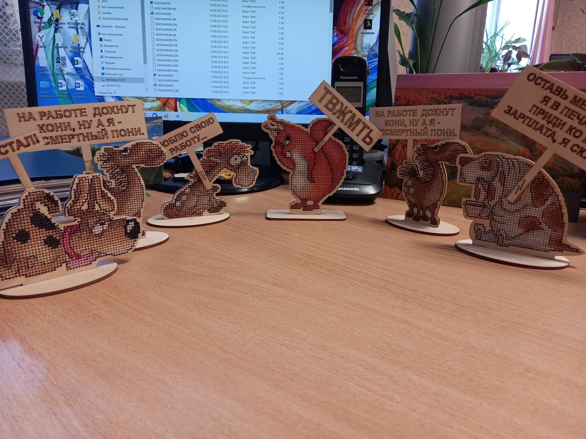 9 марта 2024 С праздником всех нас, девочки! Всем желаю много нежности, много любви, много цветов и обожания!!! А так же Защиты и опоры от наших мужчин, и ещё, чтобы у них было желание исполнять наши желания!!!! Во как придумала. Ну что, кратенько рассказываю, как приняли мои подарки, мой вышитый отряд деревяшечек. Начну с того, что есть у нас молодая девушка (38 лет), которая постоянно с юмором и со вздохом повторяла: Ну что ж! Я люблю свою работу, Я приду сюда в субботу и т. д." В связи с этим, подарок для неё был очевиден -Это та самая Лошадка Со всеми остальными было посложнее. Боясь их обидеть чем-то, и чтобы подарок не был неприятен, я выставила всех на стол, который у нас стоит прям на входе в кабинет, и сказала -выбирайте! Все улыбались, читали, присматривались, но совсем не долго - и каждый выбирал. Почти без слов. Без слов восторга или какой-то похвалы. Главбухша у нас любит деньги. И я думала,, она возьмет Собаку про зарплату, но я не угадала. Она первой потянулась и забрала собаку "Я устал". Посмеялась: "Это мой девиз по жизни!" Собака "Приди ко же зарплата ушла конечно же второй по счету. Скажу сразу - она понравилась всем! Потом забрали Белку и пони. Вторую Белку я отнесла начальнице - я так и хотела, и почему-то её никто из моих не взял. Замечу ещё, что я принесла на работу и Дракошу ещё и Елочку на деревяшке. Как чувствовала! Одна дама у нас так и сказала: а что это вы каких-то животных себе берёте? А я возьму Елочку! И потом ещё раз что-то в этом плане высказывала - что у неё лучше, у неё Елочка! И осталась довольна. Ну и слава Богу! Она очень своенравна, импульсивна, делает всё с какой-то верой во вседозволенность, болтает всё подряд без умолку, обижает словом "на раз" просто, и вдобавок имеет родство с мужем нашей начальницы. Начальница больше всех была благодарна за такой подарок, смеялась и восторгалась. Но у неё уже и две подаренные мной картины, и зайка на пластике. Её реакция мне уже 6 лет знакома. В двух словах если - все отреагировали скромно. Как будто так и должно было быть. Но я была готова к этому. Были конечно вопросы ещё: Это ты две недели, наверное вышивала? Я ответила, что неееет, два месяца! Еще одна поинтересовалась: а деревяшки эти муж выпиливал? Ну в общем, как к поделке какой-то отнеслись, которую в садик делают. Это вот люди, далёкие от вышивки, но тем не менее наблюдающие каждый день висящие на стенах трёх наших кабинетов мои вышивки. Теперь про Елочку остановлюсь подробнее. В магазине "У Аннушки я брала скопом несколько деревяшек, чтобы пересыл был бесплатным, и прихватила ещё заготовочки на дереве: Елочка, саночки и... ... Так вот, раз уж тема Новогодняя меня не отпустила, я вышила Елочку по схеме Дименшионс (схемы у неё прилагались) И украсила на свой вкус разным бисером, у меня, оказывается много остатков бисера, который я покупала мешочками для своих шовчиковых работ. И не только бисер у меня оказался, а ещё и стеклярус - очень красиво он сверкает, как будто свечки на елке горят. Ёлочка, Dimensions. Новый процесс; vodonika, Nata_Struchkowa, nata2017 и 23 других сказали спасибо Поделиться сообщением Ссылка на сообщение
