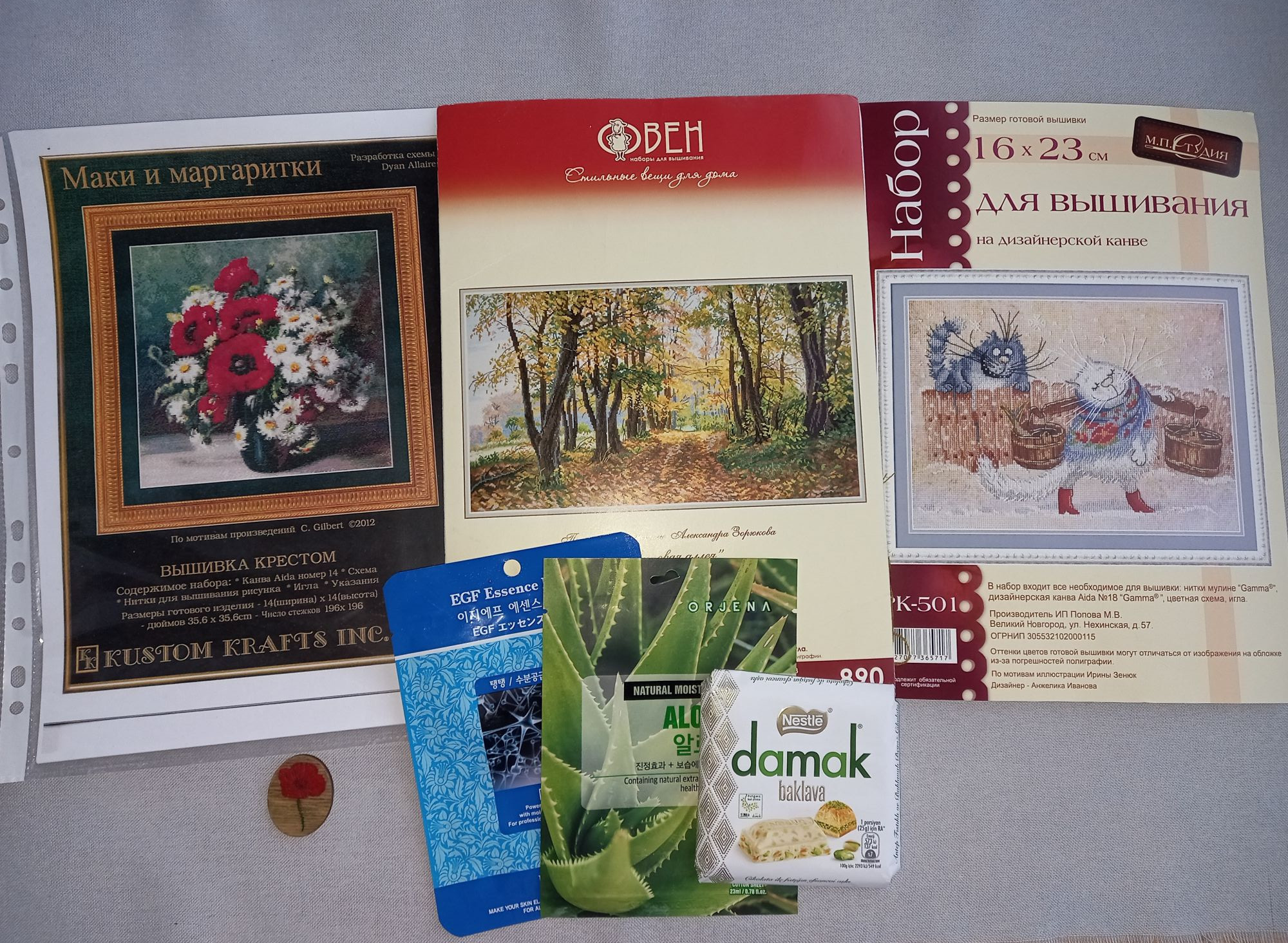 7 апреля 2024 Девочки, с праздником всех! Моя прекрасная девчуля в цветочном веночке шьётся успешно. Сейчас, когда я закончила Белочек, лошадок, пони и других деревяшечек, переключилась на неё и птичку. Вот было: стало: На черной канве есть неудобства, но я думаю, вполне осилю за два месяца свою девочку! Ну и новые старты: Очень надо в пару к кружочку с маками кружочек "Берег Ладоги" от Овна, размер 15х15см Тем более, что рама уже его ждёт, не дождется! Скоро год уже будет, как ждет. Начало процесса: Стартанула ещё один кружочек из закромов: Ромашковое поле, тоже Овен, размер 20х20см Какие ниточки! Я балдею. Начало процесса: Продолжаю со стартами. И, как ни странно, одна из самых последних покупочек попросилась в руки. И Это Байкал. Тоже кружочек! И тоже Овен , размер 20х20см. Начало процесса: Хочу добавить, что ждите ещё один старт! Правда у меня уже нет больше пялец после того, как двое Нурге круглых сломались...в прошлом году... Спешу ещё поделиться с вами радостью: ко мне прилетели остаточки Липовой Аллеи от Наташеньки @Lorans Я безмерно рада! Надо только подобрать ниточки, а в наборе пока не увидела, какими же нитками там шилась аллея, надо искать. Но это не всё, в посылочке от Наташи ещё и схема прекрасных цветочков Кастома! Первый раз держу в руках что-то от Кастома - это какое-то непередаваемое чувство! Ещё набор МП Студии с их знаменитыми кошачьими историями: какая же цаца эта белая кошечка - просто прелесть! Магнитик с маком, масочки для лица и шоколад из самого Стамбула! Так приятно, не передать словами! Спасибо тебе Наташик, многа-многа-многа раз!!! Всем добра и теплой весны без дождей и затоплений. Солнышка всем! Nadinka-Blondinka, mag, vodonika и 23 других сказали спасибо Поделиться сообщением Ссылка на сообщение