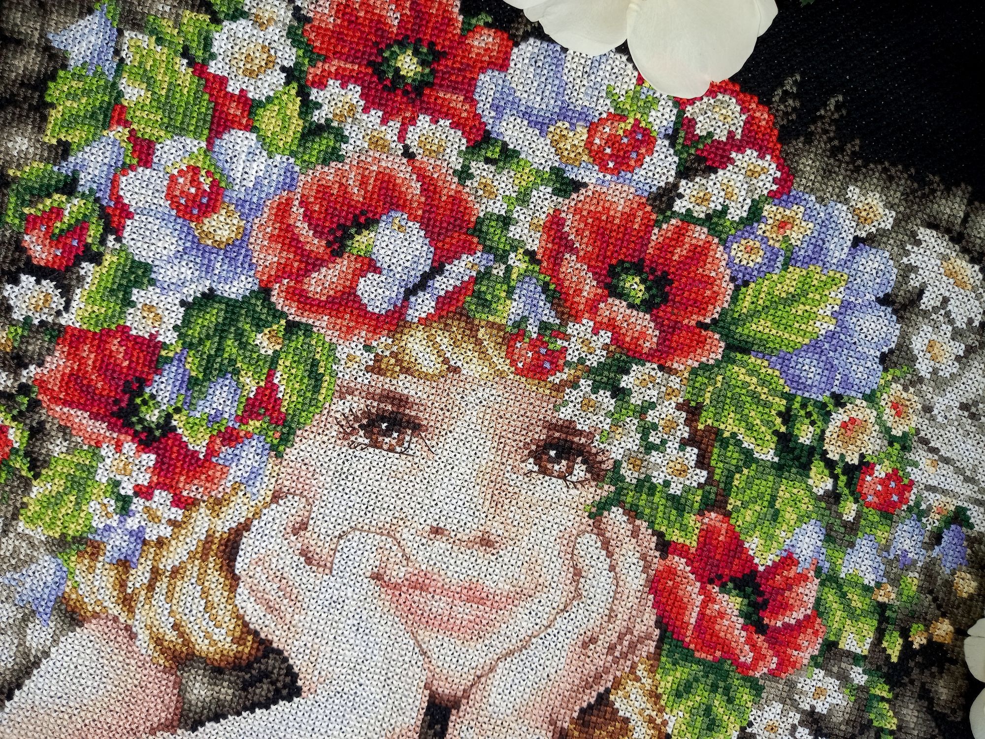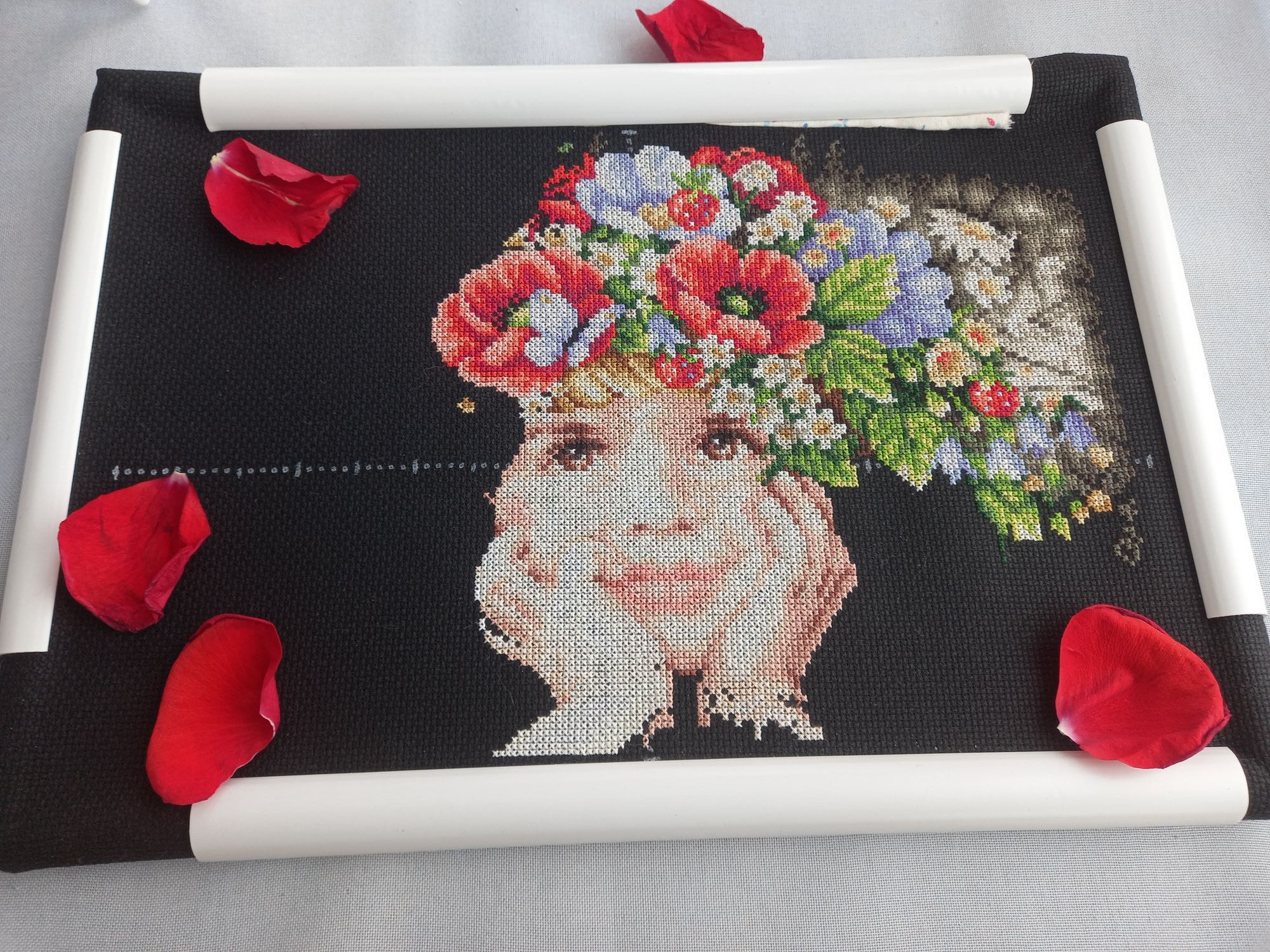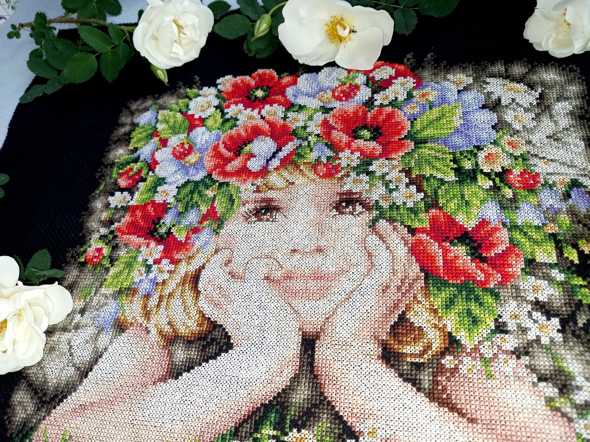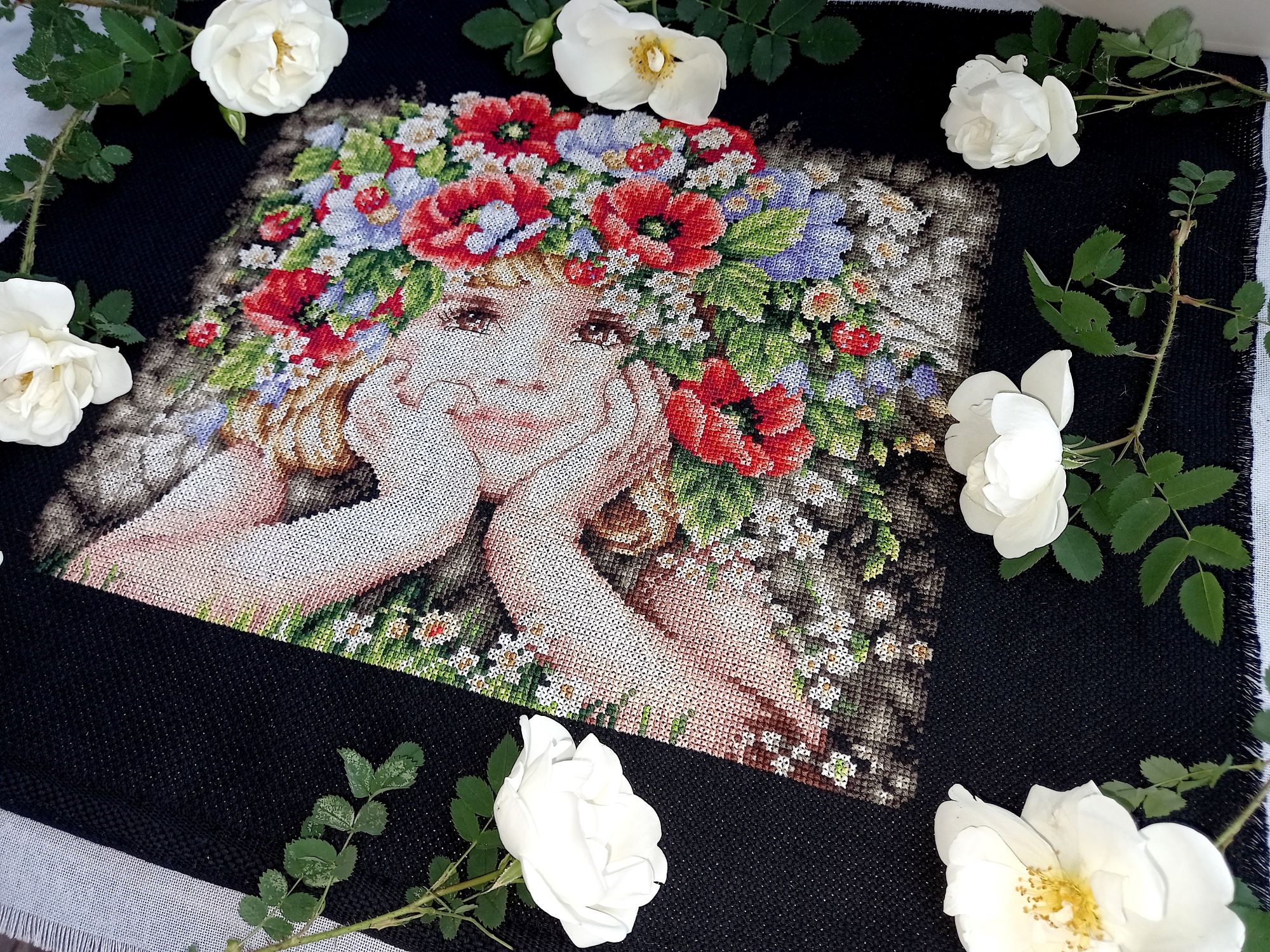 9 июня 2024 Всем привеееет! Обещала я через 2 месяца завершить девочку в цветочном венке. Всё исполнено! Принимайте кучу фоточек моей красотулечки. Вышивать на черной канве гораздо сложнее, конечно, чем на белой. Но я её победила. Сначала дошла до первого угла сверху справа: Было: стало: затем море цветочков добавилось слева: и фон, вышив который, я, наконец достала второй угол!Потом пошла вниз, за правой ручкойИ потом к последнему, четвертому углу: И это всё без бэка. Глазки обвела бэком только после стирки, как обычно. Ещё немного моих ирисов, пионов, петуний и не цветущих пока ещё бархатцев, а вот роза моя плетистая замерзла (: ( Весна морозная кончилась у нас, жаркое лето началось. vodonika, Lucia-del-Umago, Кисюня и 30 других сказали спасибо Поделиться сообщением Ссылка на сообщение