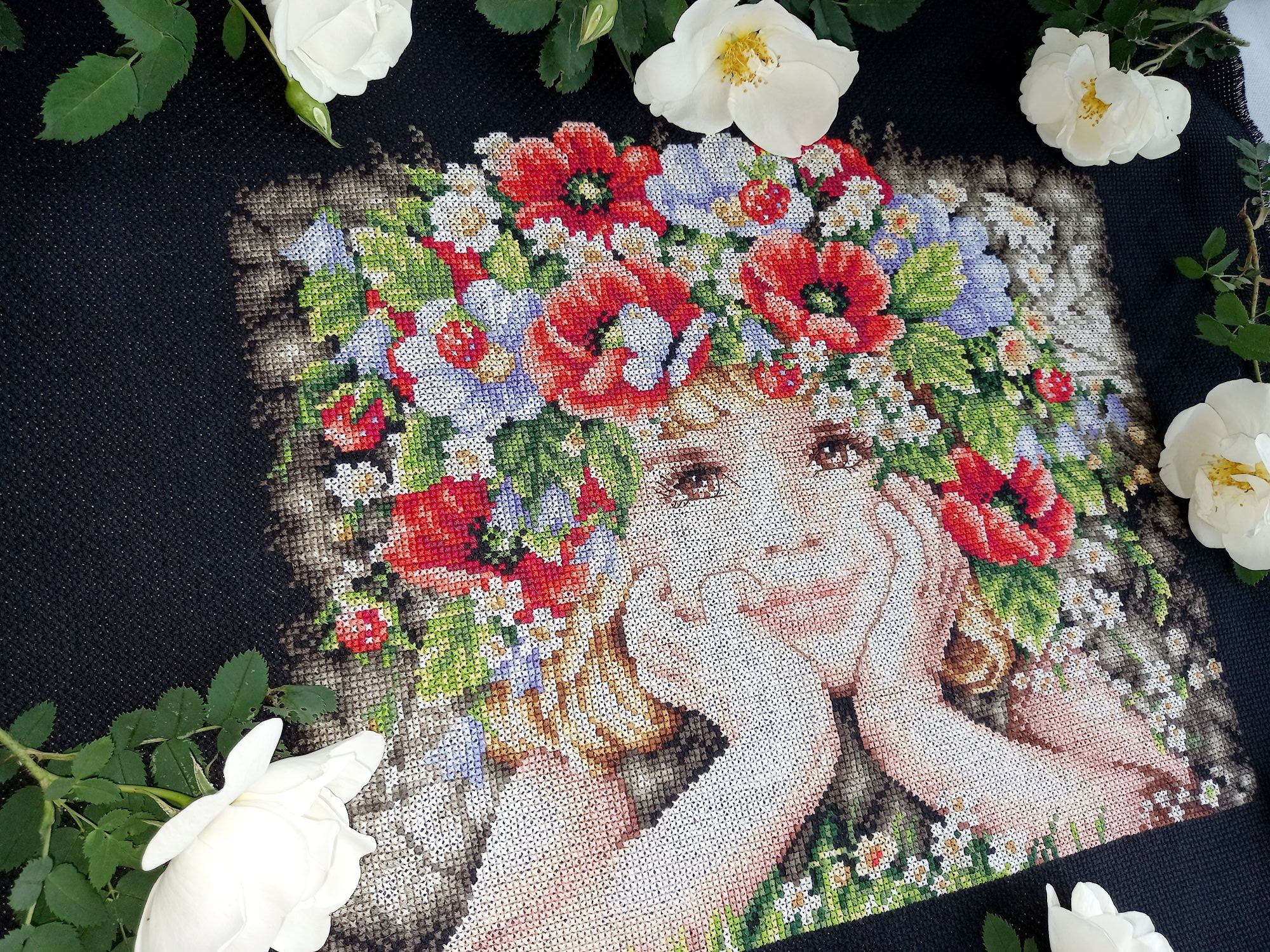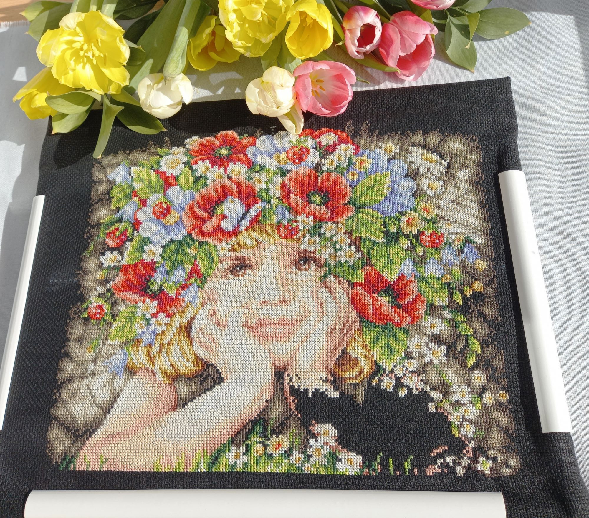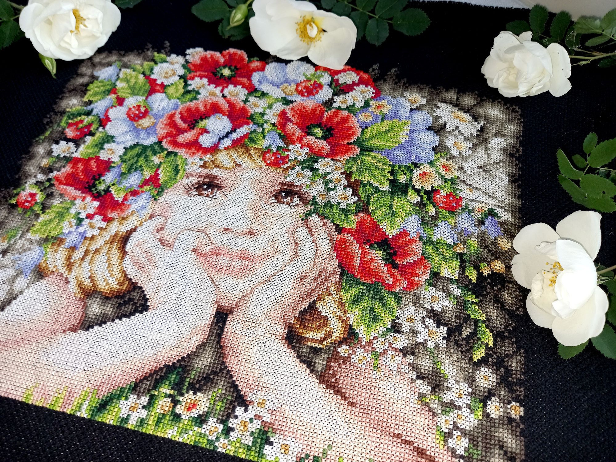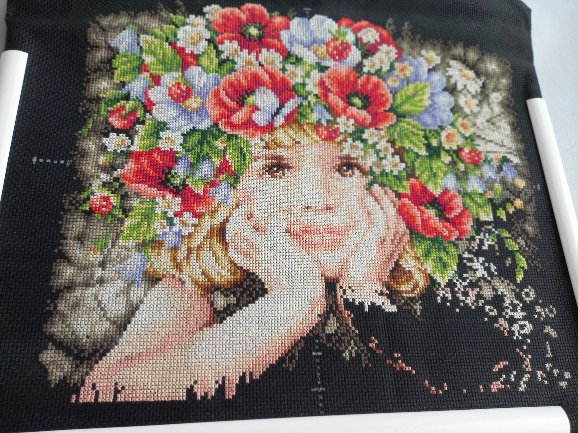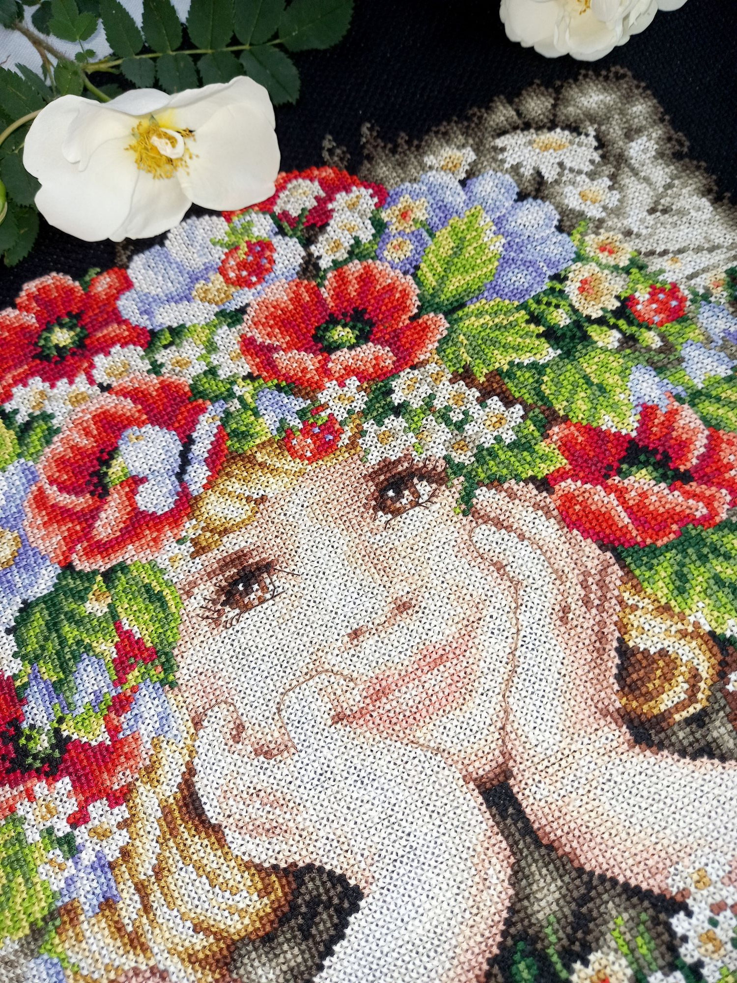 9 июня 2024 Всем привеееет! Обещала я через 2 месяца завершить девочку в цветочном венке. Всё исполнено! Принимайте кучу фоточек моей красотулечки. Вышивать на черной канве гораздо сложнее, конечно, чем на белой. Но я её победила. Сначала дошла до первого угла сверху справа: Было: стало: затем море цветочков добавилось слева: и фон, вышив который, я, наконец достала второй угол!Потом пошла вниз, за правой ручкойИ потом к последнему, четвертому углу: И это всё без бэка. Глазки обвела бэком только после стирки, как обычно. Ещё немного моих ирисов, пионов, петуний и не цветущих пока ещё бархатцев, а вот роза моя плетистая замерзла (: ( Весна морозная кончилась у нас, жаркое лето началось. vodonika, Lucia-del-Umago, Кисюня и 30 других сказали спасибо Поделиться сообщением Ссылка на сообщение