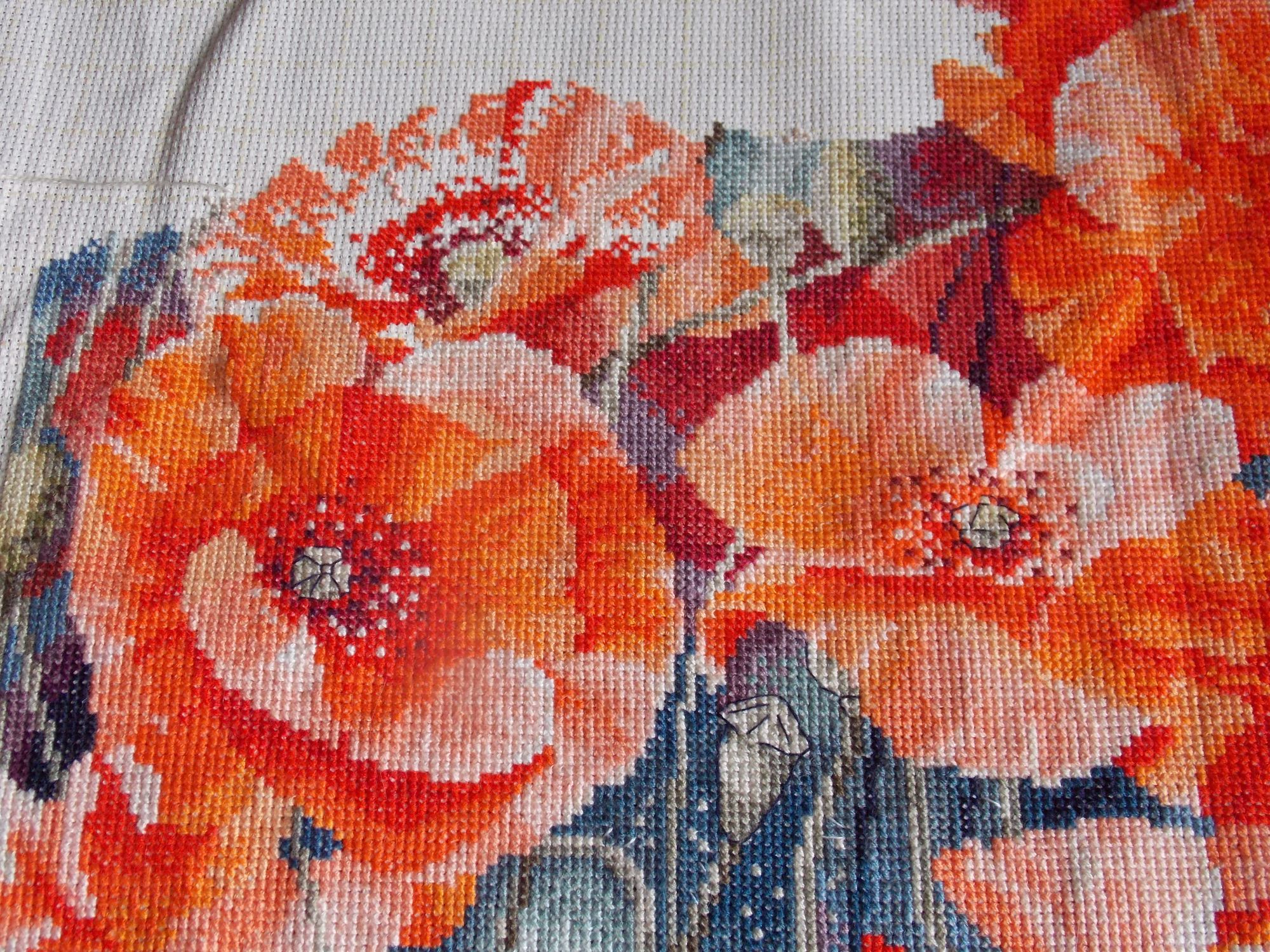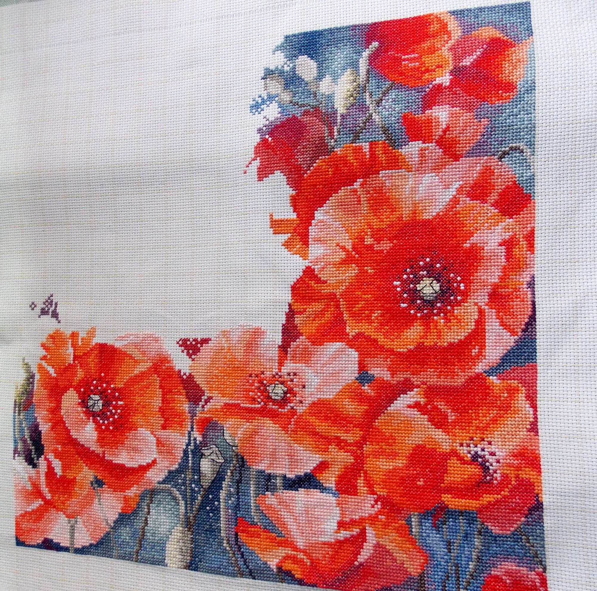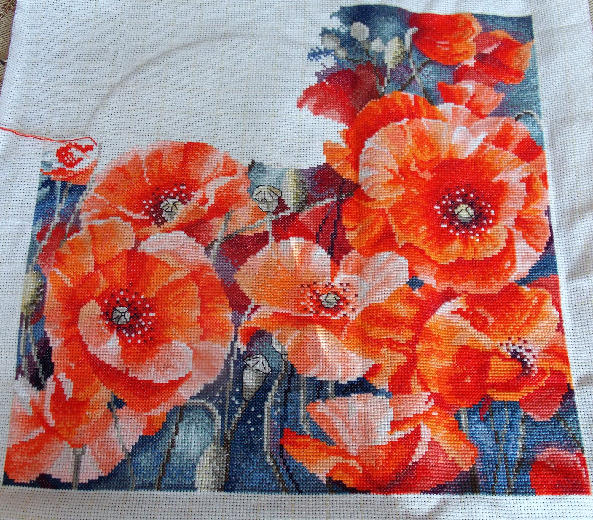 8 ноября 2019 7 часов назад, махно сказал(а): Ах, эти страстные, трепетные маки!!! Мариша, под твоим чутким руководством, эта прекрасная, воздушная компания легко и изящно дотанцевала практически до финиша!!! Ну точно, Галочка! Дотанцевала! Не очень лёгкий участок остался, но я его тоже скоренько прикончу! Это ж я хотела начать эти маки сверху, и начала даже, но там так всё светило, сквозь эти синие оттенки, что я решила поменять канву на бежевую, и второй раз начала уже снизу. Под рукой была только такая канва, с разметкой. Теперь всё смотрю, не просвечивает ли эта разметка? 2 часа назад, Juliay сказал(а): Мариночка, ну и скорость у тебя!!! Маки просто шикарные, а с твоими комментариями, я со своим отсутствием воображения, каждый раз смотрю на них по разному! Красота и страсть однозначно!!! Спасибо. Юля! Это у меня было на 5 число, так что в понедельник ожидайте окончания процесса! Lorans, Killwale, Egelia и 4 других сказали спасибо Поделиться сообщением Ссылка на сообщение
