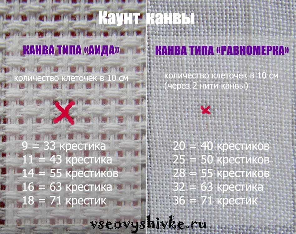 18 декабря 2019 Только что, Egelia сказал(а): Я окончательно запуталась Как я для себя понимаю. 14, 16,18 - это каунты канвы. Не помню цифры в сантиметрах. Чем больше число, тем мельче клеточки. А если брать равномерку, то там же не клеточки считаем, а ниточки. И в равномерке каунт обозначается другим числом, так как там есть варианты выбора как вышивать. Через одну или две нитки, соответственно и размер будет разным тогда. Чтобы каунты равномерки и канвы соотнести, надо поделить на два каунт равномерки. Например, очень распространенная ткань линда 27 соответствует (примерно) 14 канве. 25-ая равномерка будет чуть мельче 14 канвы, но не существенно. Ну и по аналогии: 32-ая равномерка это 16 канва. 36-ая (это, как правило льняные ткани) - 18-ая. Но это все работает, если вышивать через две нитки равномерки, тогда будет такое соответствие. Еще есть 20 каунт, но это уже только у равномерки, мне кажется. Про канву не слышала такую. ОльгаТольна, nata-g, Egelia и 4 других сказали спасибо Поделиться сообщением Ссылка на сообщение