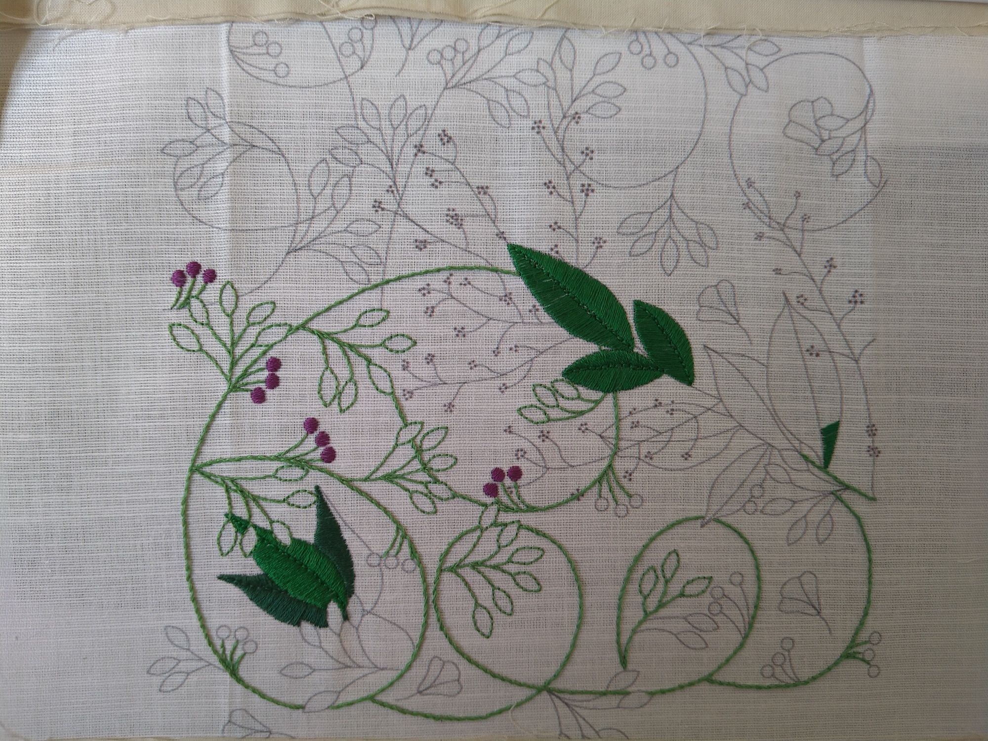 22 августа 2020 С прошлых выходных у меня лежит законченный процесс, который не получается сфотографировать: то свет плохой, то фотограф устамши. В этот раз тоже не то чтобы хорошо получилось снять, но так уже хочется галочку поставить напротив этого сюжета и со свободной головой заниматься другими. Итак, готов мой первый опыт свободной вышивки и я не знаю, можно ли её гладить и стирать. Надеюсь, что можно, потому что пока ткань была натянута, всё выглядело чинно и благородно, а теперь появились всякие ямочки и неровности. Пока я погладила только незашитые участки вокруг вышивки и отправила до поры до времени в рулон. Я продолжаю набираться опыта в новой технике, начала второй набор из этой серии, Hedgerow Berries. Он по размеру такой же, как и предыдущий, однако вышивать здесь нужно значительно больше. Пока получается так: Lucia-del-Umago, Дикая белочка, росомашка и 2 других сказали спасибо Поделиться сообщением Ссылка на сообщение