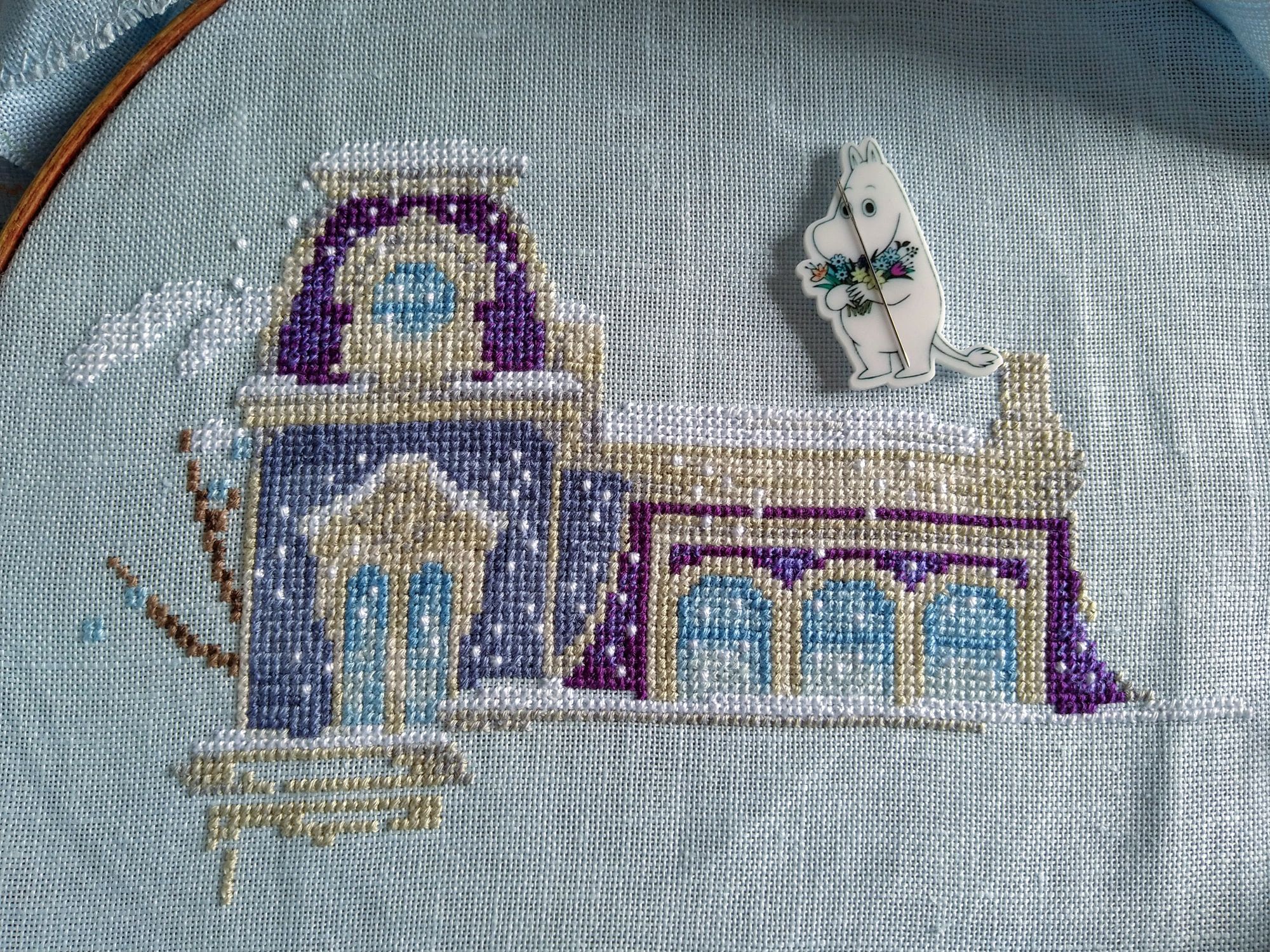 8 февраля 2021 Всем привет с заснеженных просторов! Да, с заснеженных, и мне самой удивительно это писать, потому что нормального снегопада у нас в регионе можно ждать годами. И это обидно, потому что я очень люблю зиму и снег. Но вот второй день у нас уже штормовое предупреждение, снег сыплет и сыплет, трамваи не ходят, поезда ходят едва-едва, а пешеходных дорожек в спальных районов просто нет: на выходных никто не расчищал снег и дорогу нужно буквально протаптывать заново. Полагаю что всё это великолепие и хаос в одном флаконе на следующей неделе уже растает, а пока дышим морозным воздухом Сейчас ещё очень вышивальная погода, когда надо бы сесть у окошка с котиком и тихо-мирно штопать, но нет, я человек упёртый и ответственный, мне надо сквозь пургу пёхать на работу. А пока что покажу, что вышила на выходных. У зайки DMC растут ушки: В городе Кострома выросло знатное дерево и даже поставлен забор: И я только когда вышила это приличных размеров (примерно полторы тысячи стежов) дерево, поняла, что работа-то масштабная. Я её до сих пор не такой объёмной воспринимала. И новый процесс под погодные условия, начала я таки Зимний дом Марии Бровко. Покупать к нему ничего не пришлось, были уже заранее заготовлены нитки и основа чудесного морозно-голубого цвета, которую я в следующий раз надеюсь показать при дневном свете. Так что выпадет в следующем году у нас снег или нет, но на этой вышивке у меня всегда будет правильная погода И для начала я вышила окошки в мансарде: Вот такие продвижения. Я сейчас увлеклась каналом HobbyArt и подумываю тоже принять участие в игре с кубиком. Особых залежей процессов у меня нет, но этот момент случайности увлекает. Не знаю, буду ли участвовать открыто в группе, с альбомом, или просто сама для себя составлю список и буду смотреть Олины видео и вышивать по её кубику, посмотрим. Мои пасхальные наборы всё равно ещё не приехали... Lucia-del-Umago сказал(а) спасибо Поделиться сообщением Ссылка на сообщение
