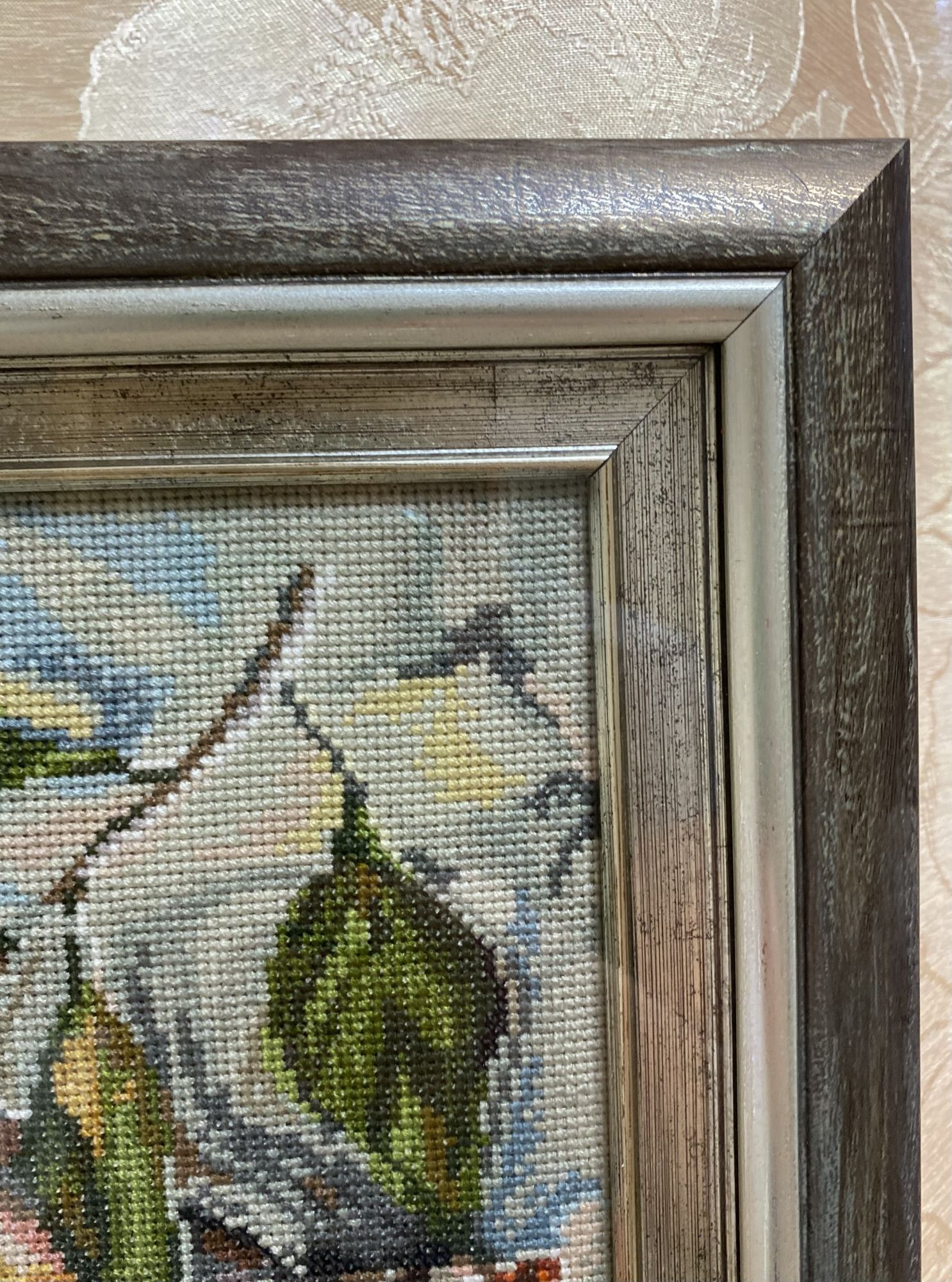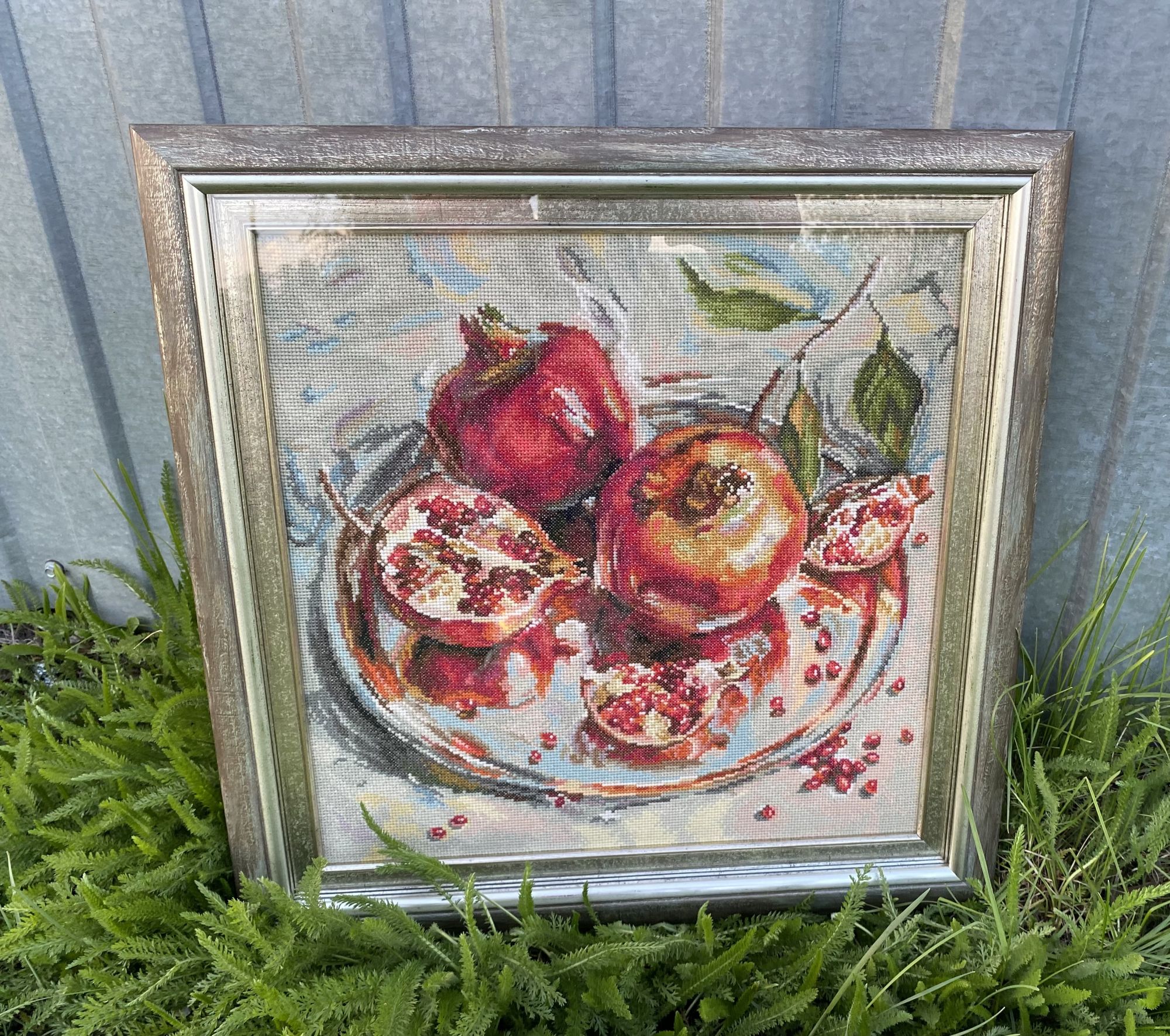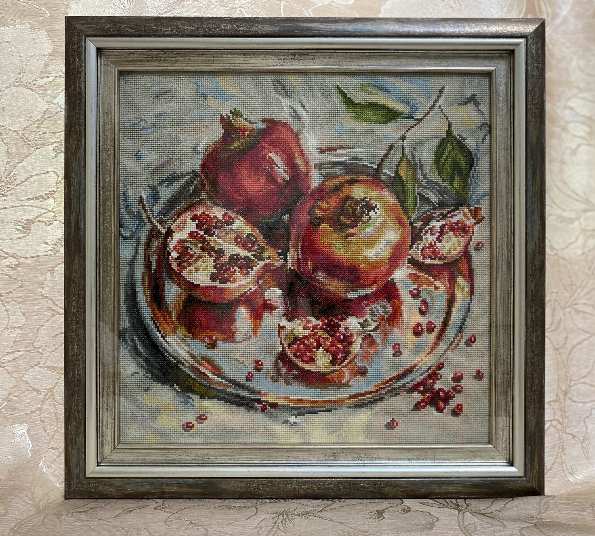 1 мая 2022 44 минуты назад, kreolka сказал(а): Девочки, я это сделала! Спасибо всем за поддержку Вчера проснулась в 4:30, и до 12 дня дошивала, постирала- погладила , после обеда отдала на оформление , к вечеру Гранаты были уже у меня в готовом виде Мне оочень нравится результат , хочется смотреть на них снова и снова)) Оформление подбирали из того что есть в наличии, не широкого ассортимента, но мне повезло и пазл сложился, как мне кажется) ( оформление обошлось в 1700! , но учитывая что город небольшой , и ассортимент из старого привоза). Двойной пластиковый багет, стекло обычное,от паспарту отказалась, но после , дома, думала, может и нужно оно было, для более атмосферного восприятия сюжета.. У меня много радостных эмоций по поводу того, что все получилось в срок и удачно! Сегодня буду вручать имениннице)) Красота! Поздравляю с успешным завершением и оформлением! Получилось очень гармонично ЛАДОМИРА и kreolka сказали спасибо Поделиться сообщением Ссылка на сообщение
