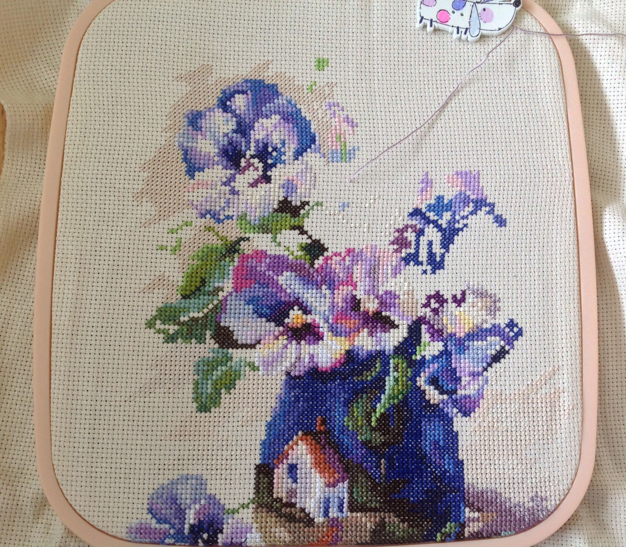 25 июля 2023 Анютины глазки продолжение работа яркая, цветная с частой сменой ниток, но стала уставать) а дело меж тем близится к финишу, но ещё придётся знатно здесь поднапрячься) хотя, частная смена ниток здесь оправданна, и логична, в некоторых случаях я вижу, что дизайнер старался сделать схему простой для вышивальщиц, несмотря на смену цвета. Подобный букет у свободных дизайнеров был бы гораздо сложнее. Надеюсь, дошить до конца лета, как бы грустно это не звучало конец лета Сибирская Кошка, Ксен40, Мультифрукт и 14 других сказали спасибо Поделиться сообщением Ссылка на сообщение
