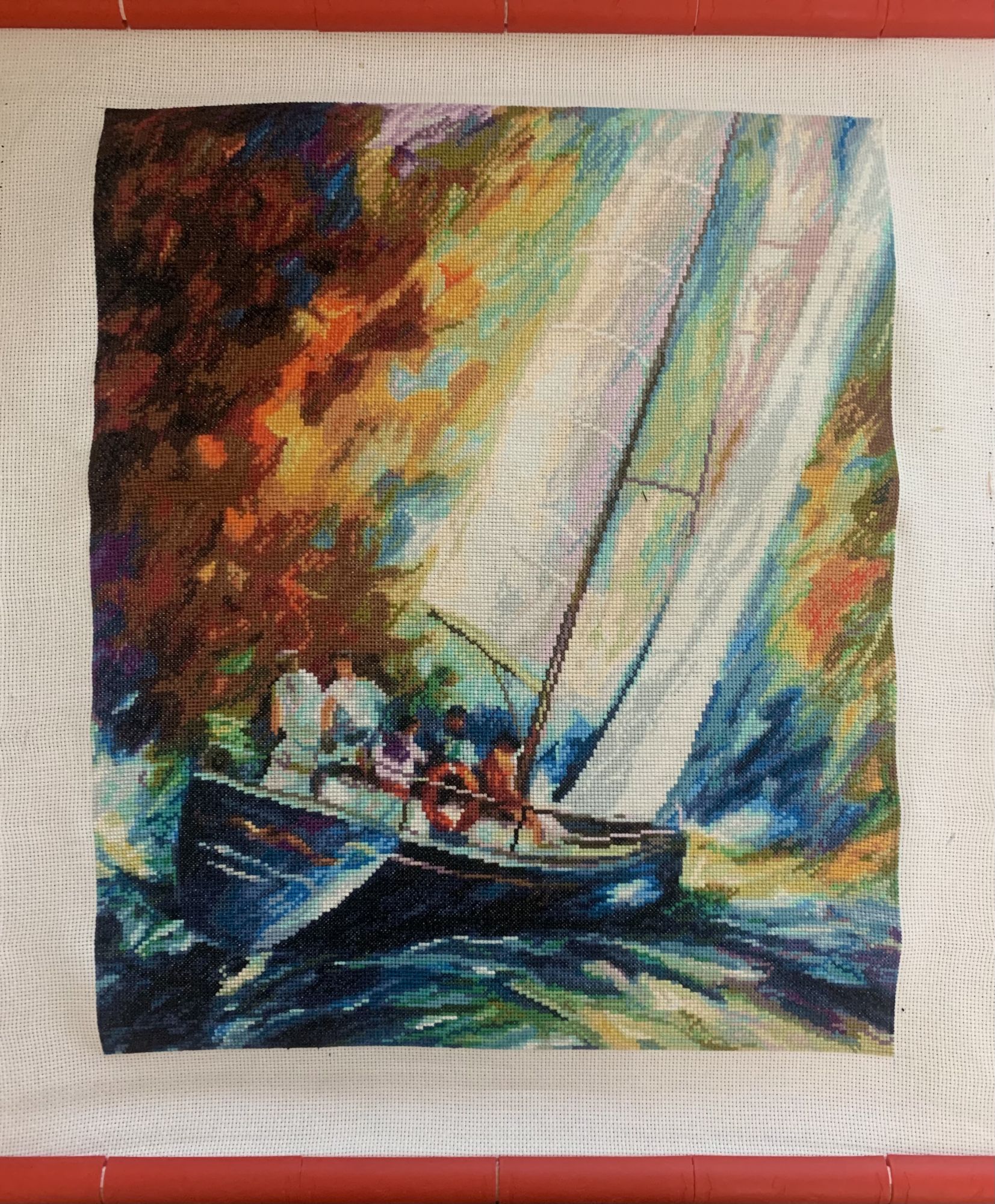 18 декабря 2023 18 часов назад, снежик сказал(а): Поздравляю с финишем! Очень красиво и стильно получилось! Насколько тяжело шилось? Спасибо большое! По-разному шилось, но впечатления остались положительные. В самом начале привыкала к короткой нарезке и частой смене нити. К тому же я начала с левого верхнего угла, а там все такое темное черно-коричневое. Помню как дочь поинтересовалась: «Что ты такое вышиваешь? Депрессию?». Собственно через неделю «депрессивный эпизод» поднадоел и меня стало бросать по канве, кусь там, кусь сям. Самый сложный момент - яхтсмены: 3-4 крестика и смена нити, но лодка и волны давали возможность от них отдохнуть. Качество ниток понравилось очень! Ну только парочка светлых оттенков в парусах вели себя так себе, все остальные - великолепные! В узлы не завязывались, в крестики укладывались ровно, мягкие, через канву проходили бесшумно, бесподобная цветовая гамма. 2/3 работы вышивала с помощью саги, и 1/3 по бумажной схеме. Удивительно, но по бумаге работа шла быстрее. Pushistiy_hvostik, alenazo, Tatiana Ch. и 9 других сказали спасибо Поделиться сообщением Ссылка на сообщение