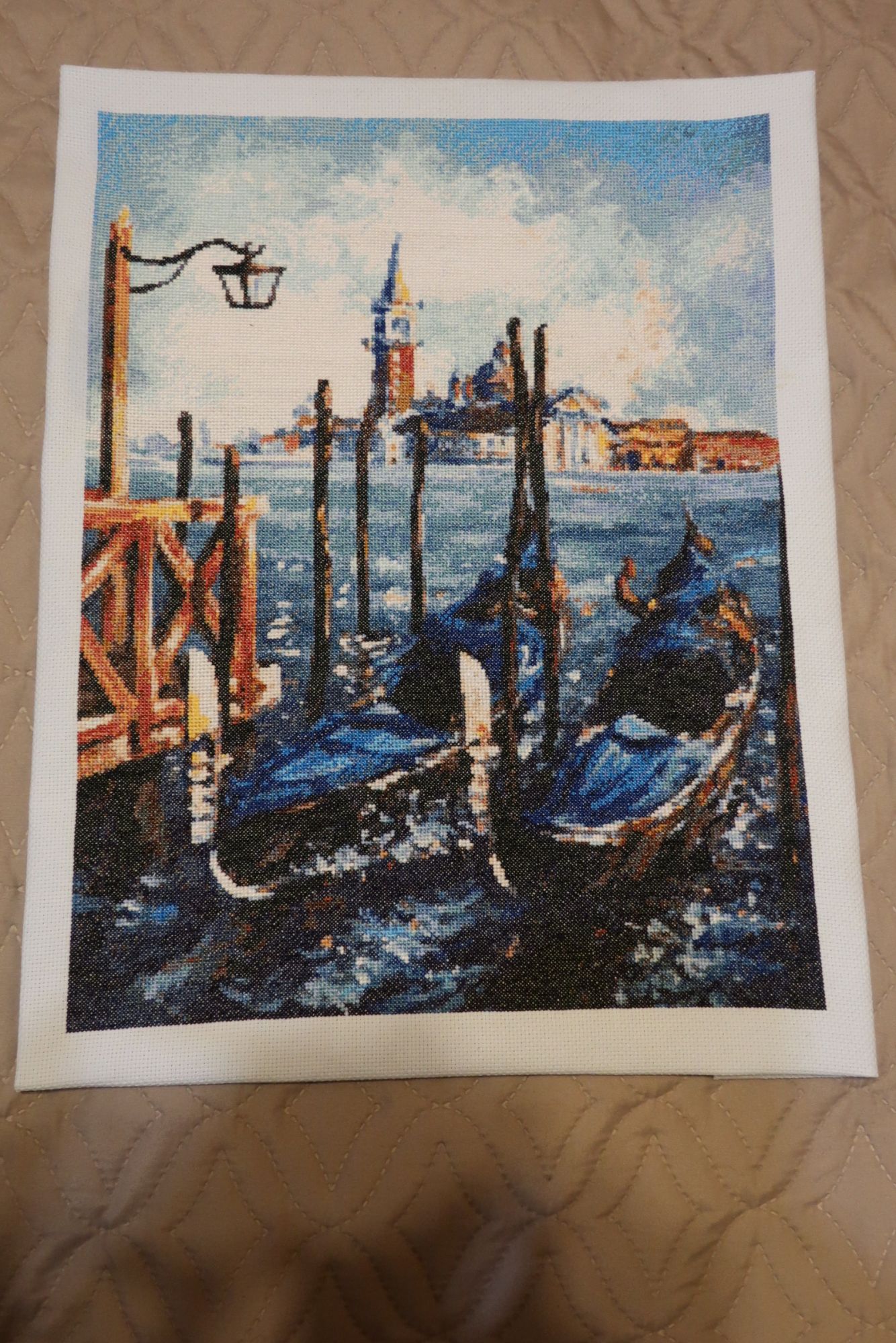 21 ноября 2019 Итак, как говорится, подытожим. Kustom Krafts, Гондолы в Венеции. 36х48см. 37 цветов. Мои пятьдесят оттенков синего: никогда не думала, что с таким диким удовольствием буду шить синим цветом. Уже писала где-то, что когда на работе показала обложку набора и сказала про пятьдесят оттенков, одна из коллег удивлённо спросила: "А здесь разве не три цвета всего?" Я повеселилась)) На книжке со схемой написано "По мотивам произведений Danny Wild", но, скажу вам честно, сколько бы ни искала, ни художника, ни картины я найти не смогла. Хотя ракурс, преданный на картине, является одним из самых популярных в Венеции. Этот набор тот самый внеплановый, из живой очереди, который зашёл "просто спросить" и остался. Я его купила, положила в шкаф, но думала о нем постоянно, представляла, как шью эти синие волны. В итоге решила, что надо внепланово шить. Мой первый КК. Видела в схеме, читала и слышала о сложности схем данного производителя, о зубодробительных одиночках, о прогонистости схемы. Почему-то не испугалась. Было ли сложно? Да. Было ли интересно? Да. Хотелось ли бросить? Нет. И это не для красного словца. Тянуло к вышивке каждый день, хотелось шить, шить и шить. Но шилось долго, потому что наперекор жгучему желанию выступило отсутствие возможностей. Начала в ноябре 2018. Планировала управиться месяцев за 6-7. И сначала все шло очень неплохо. Но так случилось, что с февраля по май из - за напрягов на работе и частых поездок (рабочих и личных) не бралась за гондолы вообще. Да и позже были перерывы. Но это уже не важно. Главное - сделан последний крестик. И мои гондолы уже качаются на волнах)) Итак, дамы и господа, представляю вашему вниманию "Гондолы в Венеции" Люблю в них ВСЕ! Надеюсь, и вас они не оставят равнодушными)) махно, Tata44, оля мама матвея и 17 других сказали спасибо Поделиться сообщением Ссылка на сообщение