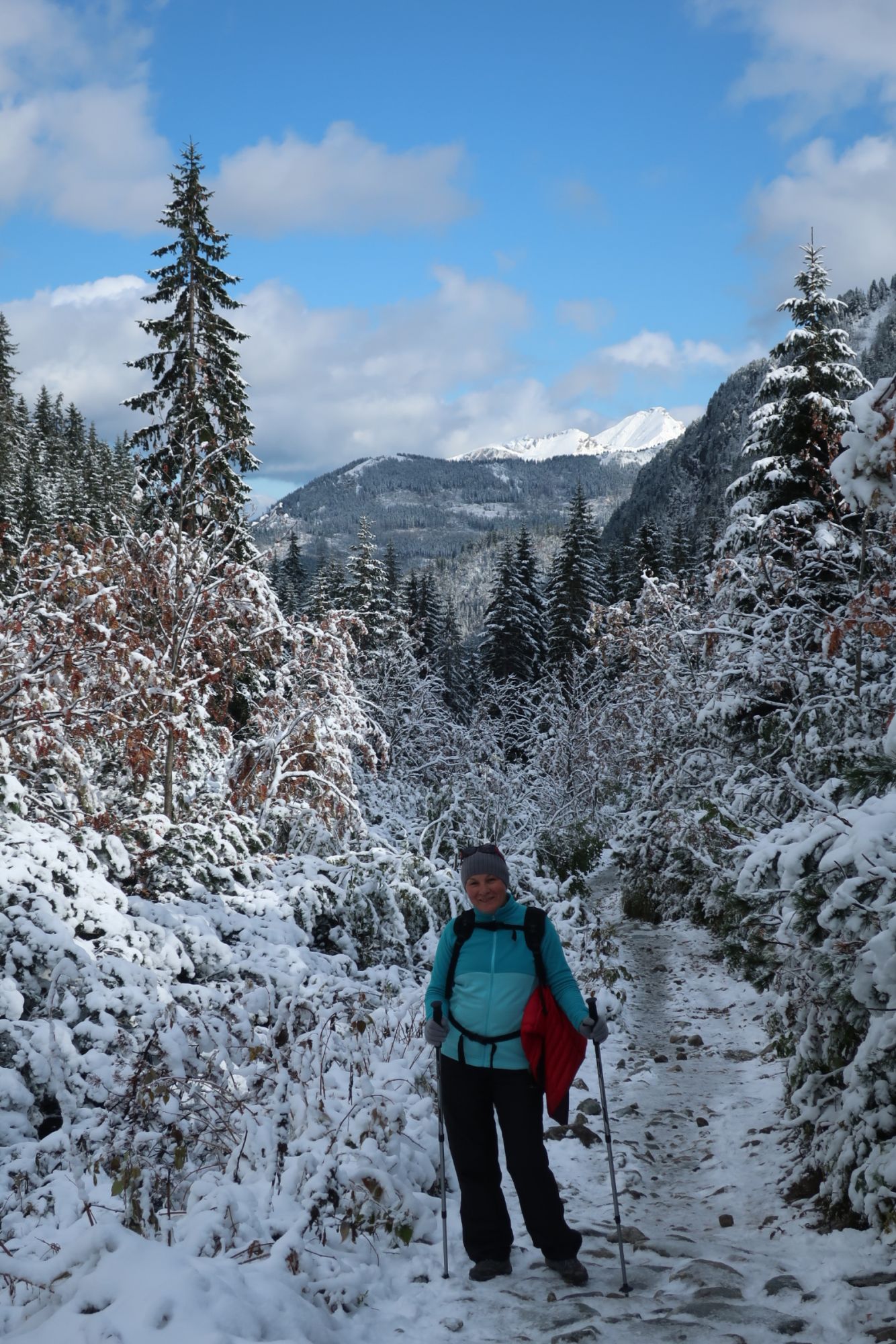11 октября 2019 Эпиграф: "Можно ли съесть слона? Можно, если поделить его на кусочки". Часть первая. Солнце било в окна ярким светом. Небо ярко голубело меж редких белых облаков. От непогоды предыдущих дней не осталось и следа. Правда, температура воздуха была в районе плюс двух-трех градусов. Но по сравнению с мировой революцией с предыдущими днями это была уже мелочь. Как говорится: нет плохой погоды, есть неправильно подобранная одежда. Мы с мужем ещё несколько дней назад договорились, куда пойдём в первый же погожий день. Ноги после терм и "равнинной" прогулки предыдущего дня настороженно помалкивали, словно ожидая какого-то подвоха. Место, из которого они растут, во время завтрака нетерпеливо ерзало по стулу, словно понимая, что его ждут новые приключения. Я шёпотом пообещала, что все будет, даже не подозревая, насколько правдиво будет моё обещание... Нам предстоял один из интереснейших и живописнейших маршрутов. Наш путь лежал Вы ещё не научились читать по-польски? Мы пошли в долину пяти озёр. Начало маршрута нам было уже знакомо. 2 км по широкой асфальтированной дороге, к Морскому Оку, а дальше - поворот по указателю. Недалеко от входа нам встретилась вот такая красавица. Абсолютно не боясь кучковавшихся на дороге в нескольких метрах от неё людей, она спокойно и размеренно жевала травку. Потолпившись вместе со всеми желающими сделать фото (а чем мы хуже?), двинулись дальше. Дорога была знакома, но все как-то незримо изменилось. Красно-жёлтое разноцветье куда-то пропало. Ночью в Сочи просто в Татрах выпал снег. Мы шли по дороге и только и успевали крутить головами. Виды завораживали. Если вы вспомните или ещё раз посмотрите фото Морского ока, то в тот день часть гор была закрыта облаками, которые никак не хотели разбегаться. Сегодня же мы могли любоваться вершинами на фоне голубого неба. Так, вертя головой направо и налево, мы незаметно дошли до указателя. Вы все ещё не ждёте никакого подвоха? Вас так же, как и меня, "купило" слово "долина"? Ну-ну... и мы пошли в долину)). Дорога шла вверх. А что вы хотели? Мы в горах)) радовало то, что первоначальный резкий подъём закончился, дорожка поднималась вверх, но без напряга. Чем дальше в лес мы углублялись, тем больше нас сводили с ума виды. Вместо 2 часов, написанных на указателе, мы, конечно же потратили гораздо больше, потому что постоянно останавливались для того, чтобы сделать очередной снимок. Это была самая живописная дорога за все время нашего отпуска. Можно, я завалю вас фото? Настроение было прекрасным! Несмотря на явное "около нуля", я уже давно сняла куртку: от активного движения было жарко)) Когда долго идёшь практически в одиночестве, в окружении природы, а тишину нарушает лишь шум реки, мысли так и пляшут в твоей голове, пока какая-нибудь не остановит свой шальной танец и не пригласит тебя потанцевать вместе с ней, в смысле позволит тебе её подумать)) В этот раз, кроме восторга, в голове плотно засела мысль о том, как мы мешаем себе жить и радоваться жизни, ставя сами себе постоянные ограничения из "нельзя" и "я не могу себе это позволить", попадаясь на стереотипы, непонятно кем и когда установленные, говоря о том, что мне уже *** лет... вот раньше...., а вот теперь... Я вспоминала нашу тетушку и тех пожилых людей, которых встречала на маршрутах, и в очередной раз восхищалась их умением жить, а не "доживать". Я дума