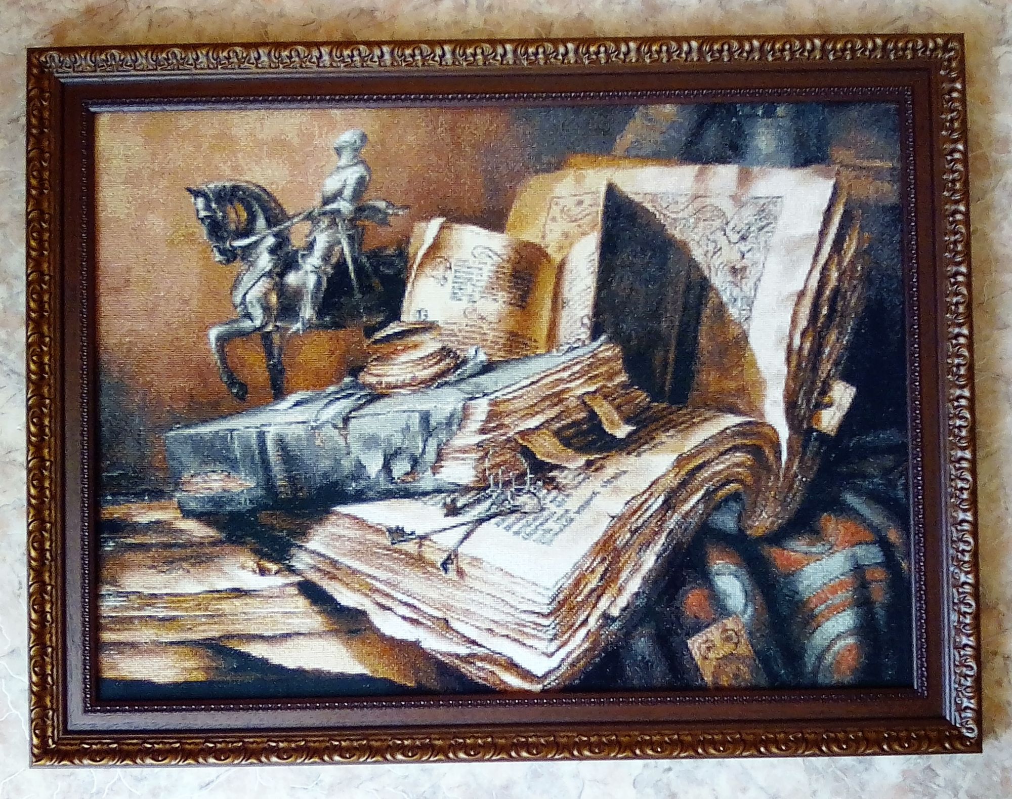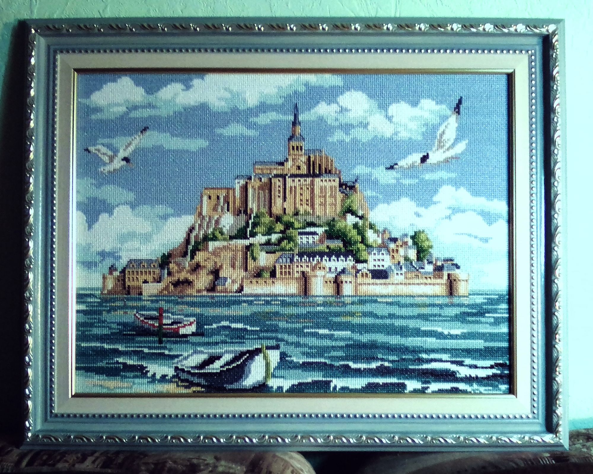 25 октября 2019 Всем здравствуйте! К счастью, я все-таки успела оформить к конкурсу те работы, что достойны внимания: 1. "Сен-Мишель" (неизвестны ни дизайнер, ни фирма) вышивала сначала в предвкушении, а потом по горячим впечатлениям от посещения этого аббатства. Схему с указанием цветов нашла в сети. Было очень сложно различать и сопоставлять с ключом цвета камней замка. Пришлось ориентироваться по найденной в сети обложке набора "Рисование по номерам". Много чертыхалась и "ломала глаза", поскольку различия были явственны только при ярком дневном свете. Подсветила при фотографировании с двух сторон лампами, чтобы были заметны блестки люрикса на голубой канве. Работа получилась солнечная, сияющая (действительность более мрачная - потемневшие серые грозные каменные твердыни на продуваемом ветрами скальном массиве) 2. "Старинные истории" (схема Елены Рамановой по картине ростовского художника Сергея Федорова) - на данный момент моя самая-самая важная работа. Темнеет переплет подобьем лат. Как полукружье конского копыта, На нем печать – лицо иного быта. Но он, как прежде, гулок и крылат... ...Померкла тушь и киноварь завяла, И потускнела зыбкая строка. Но руку обжигает сквозь века Прохладный трепет крепкого сафьяна. И горбится, и дышит, как Атлант, На гнутой полке древний фолиант. (из венка сонетов "Похвала Книге" Михаила Фильштейна) Её я вышивала более 10 месяцев, осилила 36 листов формата А4, сломала более 40 иголок, полностью истратила более 20 моточков мулине. Оформила в деревянный резной багет цвета горького шоколада под музейное стекло. К сожалению, ни одно фото не передает теплой глубины работы. Но можно бесконечно смотреть на неё и думать, думать, думать... olgavit, Путешественница, Galagenka и 152 других сказали спасибо Поделиться сообщением Ссылка на сообщение