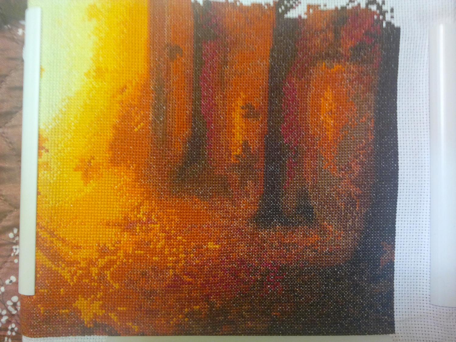 28 сентября 2015 После отправки осеннего сюрприза, я налегла на свою вышивку. Цвета самые осенние: оттенки от коричневого до красного. С удовольствием после работы беру иголочку и, незаметно для самой себя, отшила половину картины! Татуся, marysolga, Maury и 7 других сказали спасибо Поделиться сообщением Ссылка на сообщение