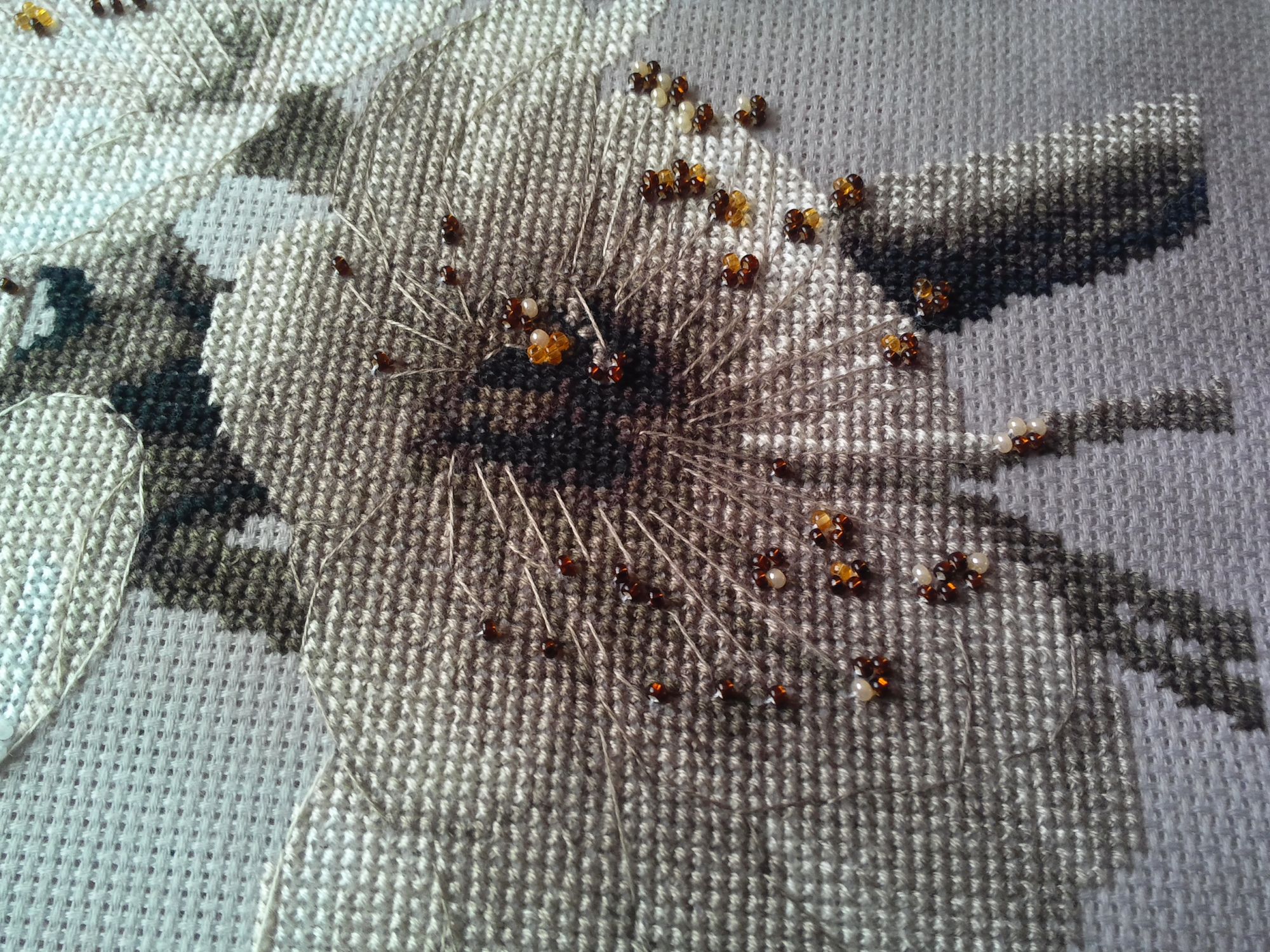 26 августа 2017 Распустился еще один очаровательный цветок! Все-таки как мне нравится эта вышивка! Получаю от нее аж экстаз! Надеюсь муж не прочитает. Цветок получился более темный, чем все остальные, а смотрится гармонично! Следующий показ будет окончательным! Наверно, уже в сентябре! На улице похолодало, солнышко спряталось за тучки, а у меня цветы распускаются на пяльцах! Хороша все-таки жизнь! JanaTX, Чивава, titania и 9 других сказали спасибо Поделиться сообщением Ссылка на сообщение