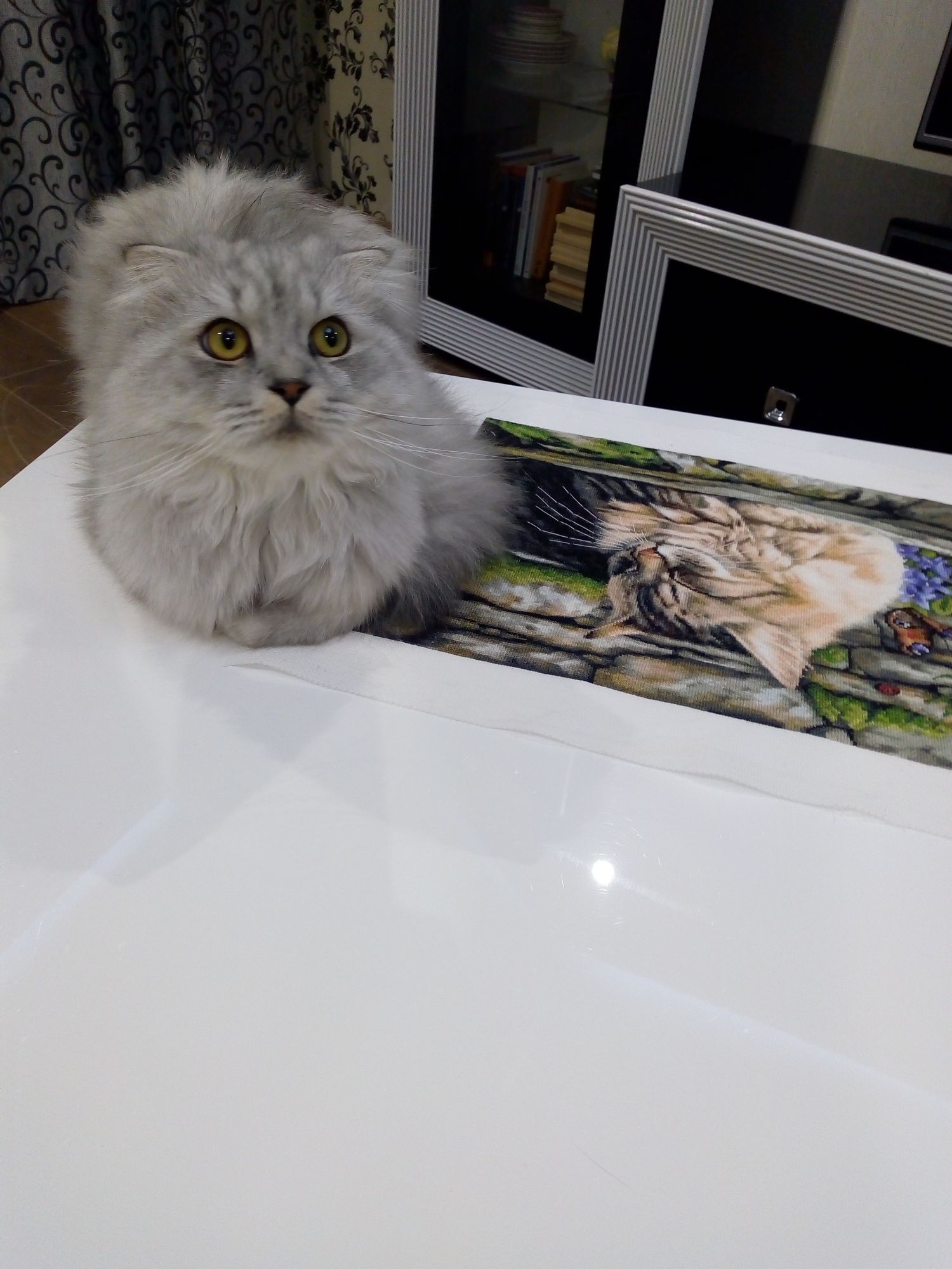 28 января 2019 Девочки, я с показом: довышивала свою кошечку. В душе образовалась какая-то пустота, не хочется начинать ничего вышивать. Наверно, надо сделать передых! Смотрю на кошку, от вышивки таким спокойствием и умиротворением отдает, что даже Вася задремал около вышивки в такой же позе, как на картине. Пушистая, titania, Marusya1978 и 12 других сказали спасибо Поделиться сообщением Ссылка на сообщение