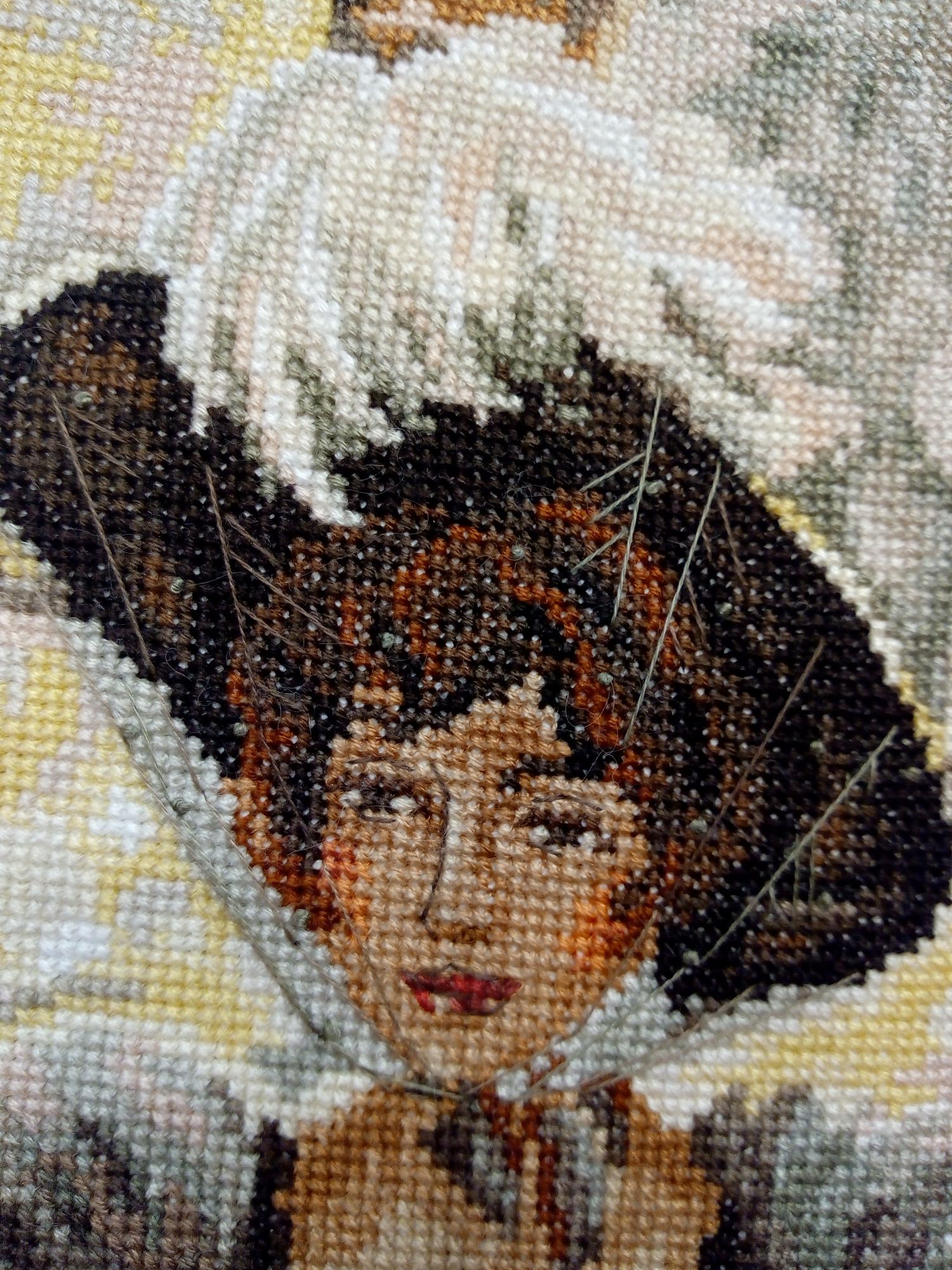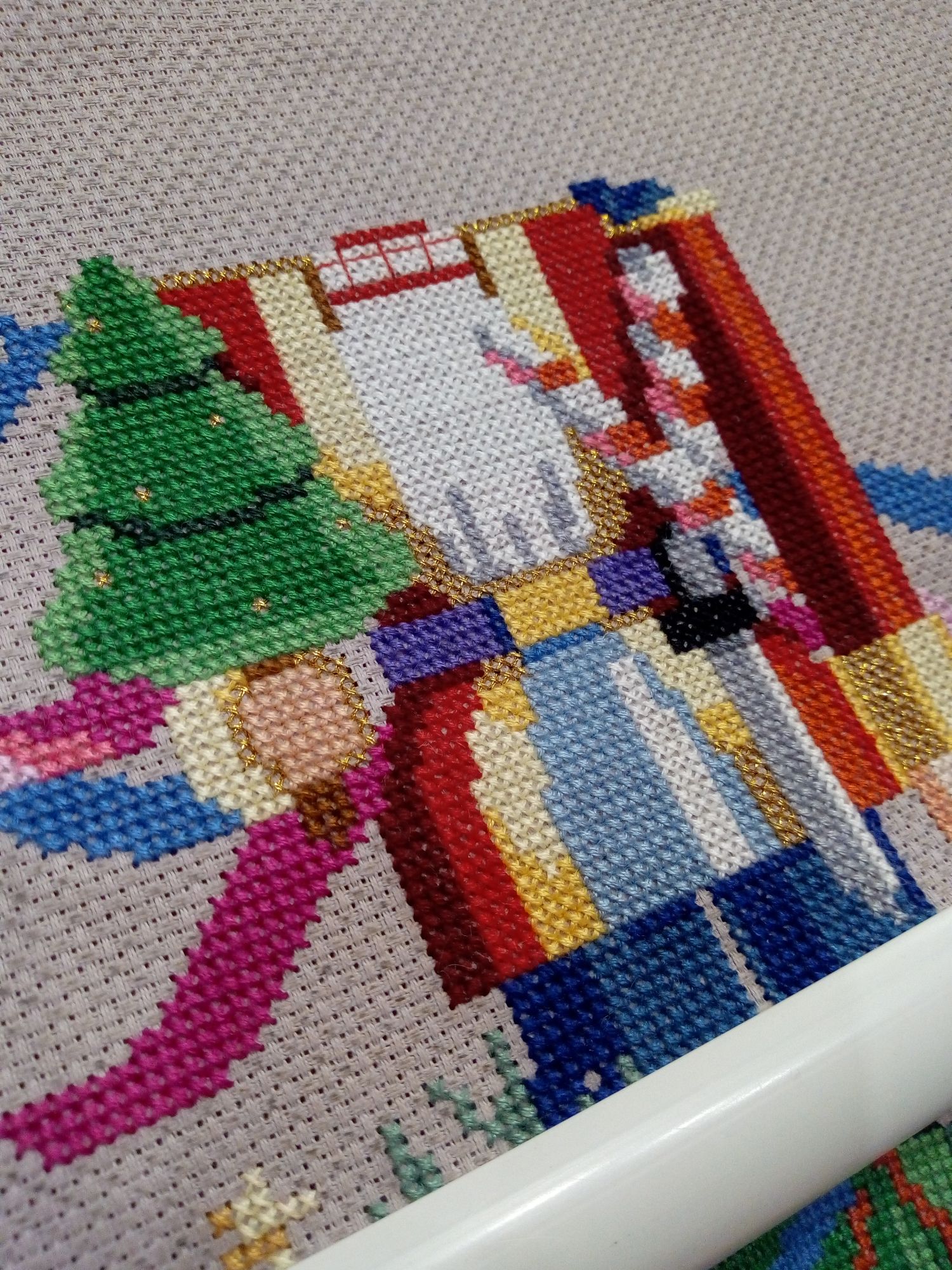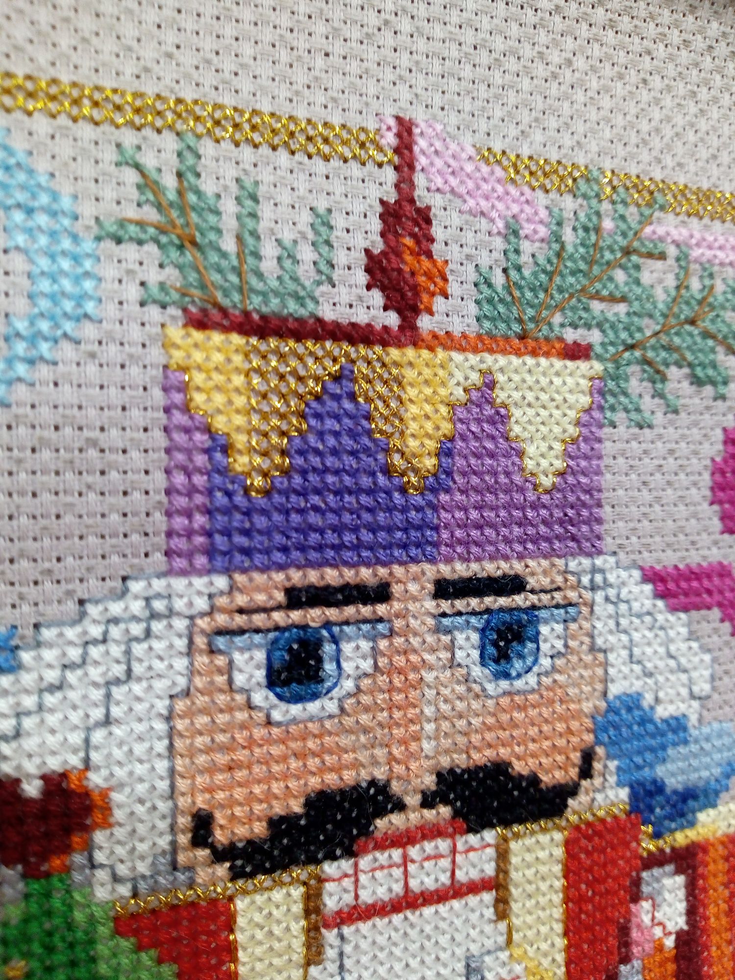 20 декабря 2019 Продолжаю вышивать сапожок со Щелкунчиком. Уже переставила рамку. Некоторые участки закрыты ей, которые вышила, но фотографии сделала без учёта их. Потом увидите полностью. Цветовая гамма ниток очень нравится, можно сказать: взрыв красок, много золотого крейника, старалась уловить его блеск, но получилось не очень хорошо. Ещё будет бэк на бороде, но сделаю его, когда лицо отошью. И ещё в планах на этот год была вышивка: Вечерняя прогулка. Она у меня перейдёт на следующий год, но до середины вышивки я всё таки дошла. Какая она красавица получилась! На вуали делала французики, так здорово, классно смотрятся! На перьях шляпы ведь вообще нет бэка, а смотришь на картину и видишь, что это перья на шляпе. Очень нравится картина. Как только отошью сапожок, начну активно вышивать прогулку. Путешественница, Чивава, Bogdan и 8 других сказали спасибо Поделиться сообщением Ссылка на сообщение