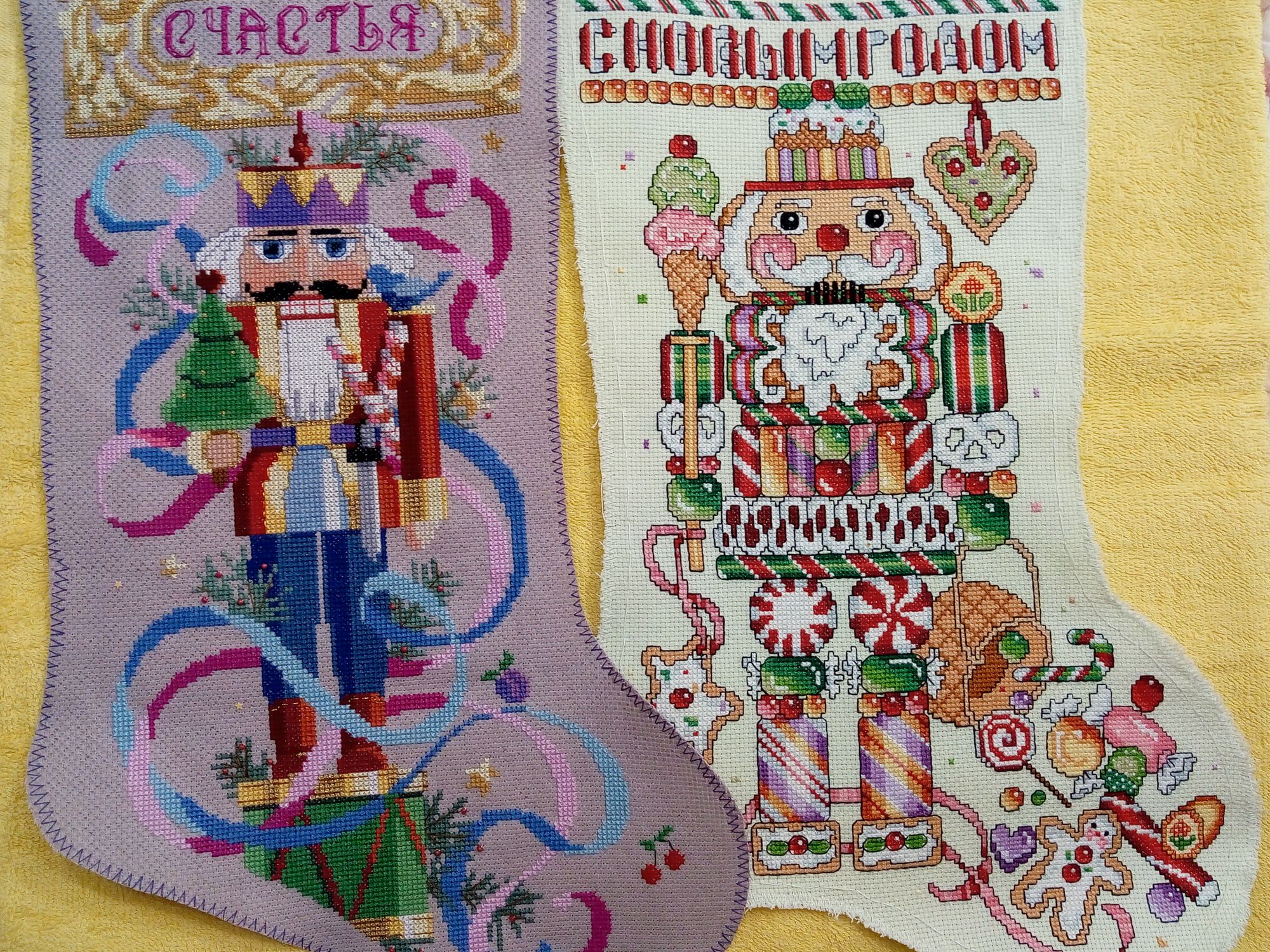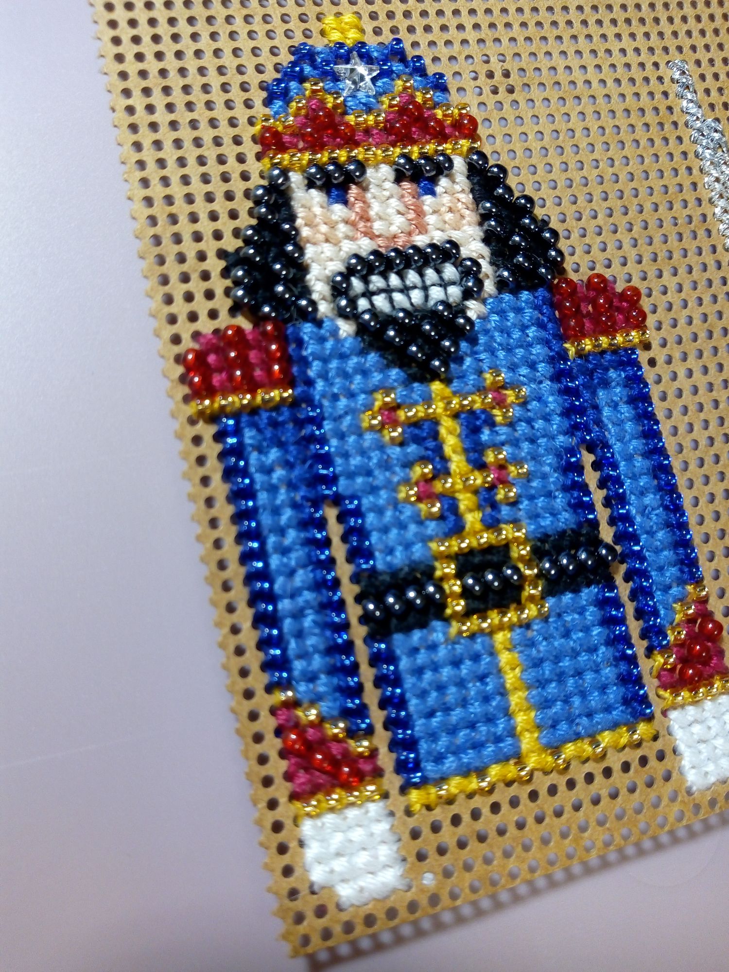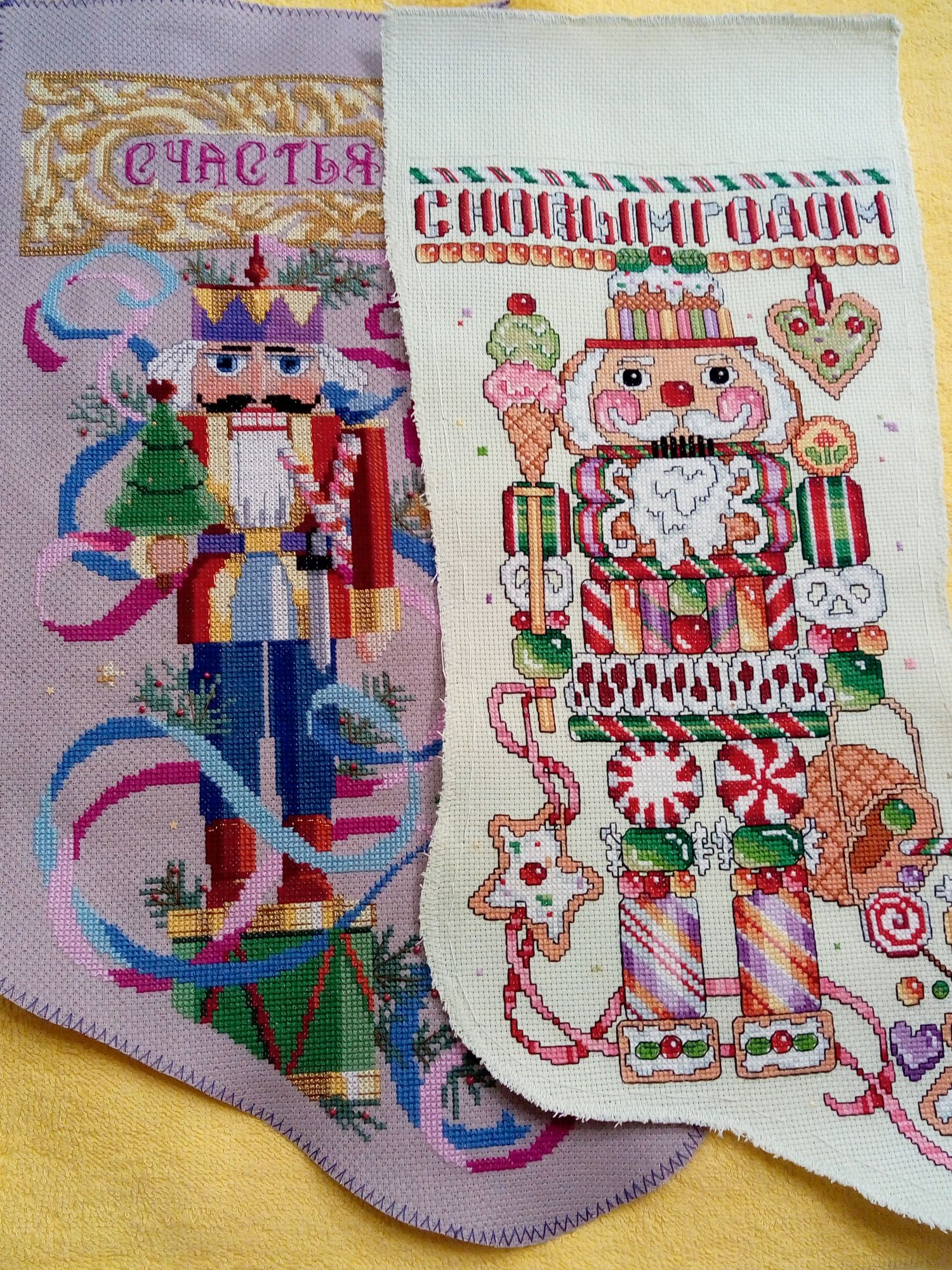 13 января 2020 Вот и созрела до первого отчёта в новом 2020 году. Предыдущим годом в вышивании я могу гордиться: и вышила много, хвосты позаканчивала и оформила работы достойно. Начну своё повествование со Щелкунчика. Люблю я сказку, поэтому новый процесс был от Милл Хилл "Щелкунчик". Вдруг так захотелось вышить, что в субботу села за него, а сегодня ночью закончила. Фотографии правда сделала только что. Как мне нравиться Милл Хилл! Игрушки получаются самыми новогодними, бисер блестит и сверкает! Про задник игрушки ничего было не написано в наборе, наверно его и не должно быть, но я его сделала из золотистого материала, который покупала в Леонардо, не помню, как называется. Теперь Щелкунчик пусть и немного времени, но провисит на ёлке. Фоток сделала много, хочется уловить блеск бисера. У меча обратную сторону сделала из перфорированной бумаги, иначе меч бы толстым получился, некрасивым. Вот такая игрушечка у меня появилась на старый новый год! Ещё стала вышивать свою Вечернюю прогулку от РТО. Дошла до края вышивки, угла. Пока видно только месиво акварельных мазков, всё интересное: экипаж, дамы, кавалер - сверху. Над вышивкой покорпела, только ниточку с разными оттенками меняла. И самое интересное на сегодня, это мой подарок с сайта 123stitch.com схемы сапожков с Щелкунчиками. Смотрю тем них и не знаю, какой первый начать. Нравятся все, а выбор такой трудный. Схемы чёрно-белые, как я люблю, значки понятливые, разработки разных фирм, но размер сапожков будет одинаковый. Ходили с мужем в кинотеатр на фильм "Холоп". Девочки, обязательно сходите посмотрите. Чудесный фильм! Настроение поднимется! Это теперь мой один из интересных фильмов в последнее время. sunny981, вишенка аллая, АриЯ и 11 других сказали спасибо Поделиться сообщением Ссылка на сообщение