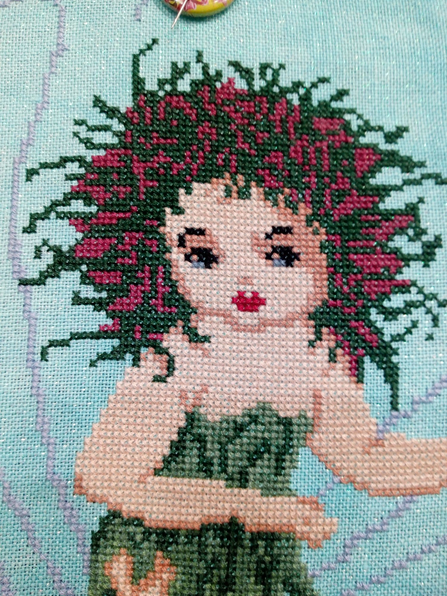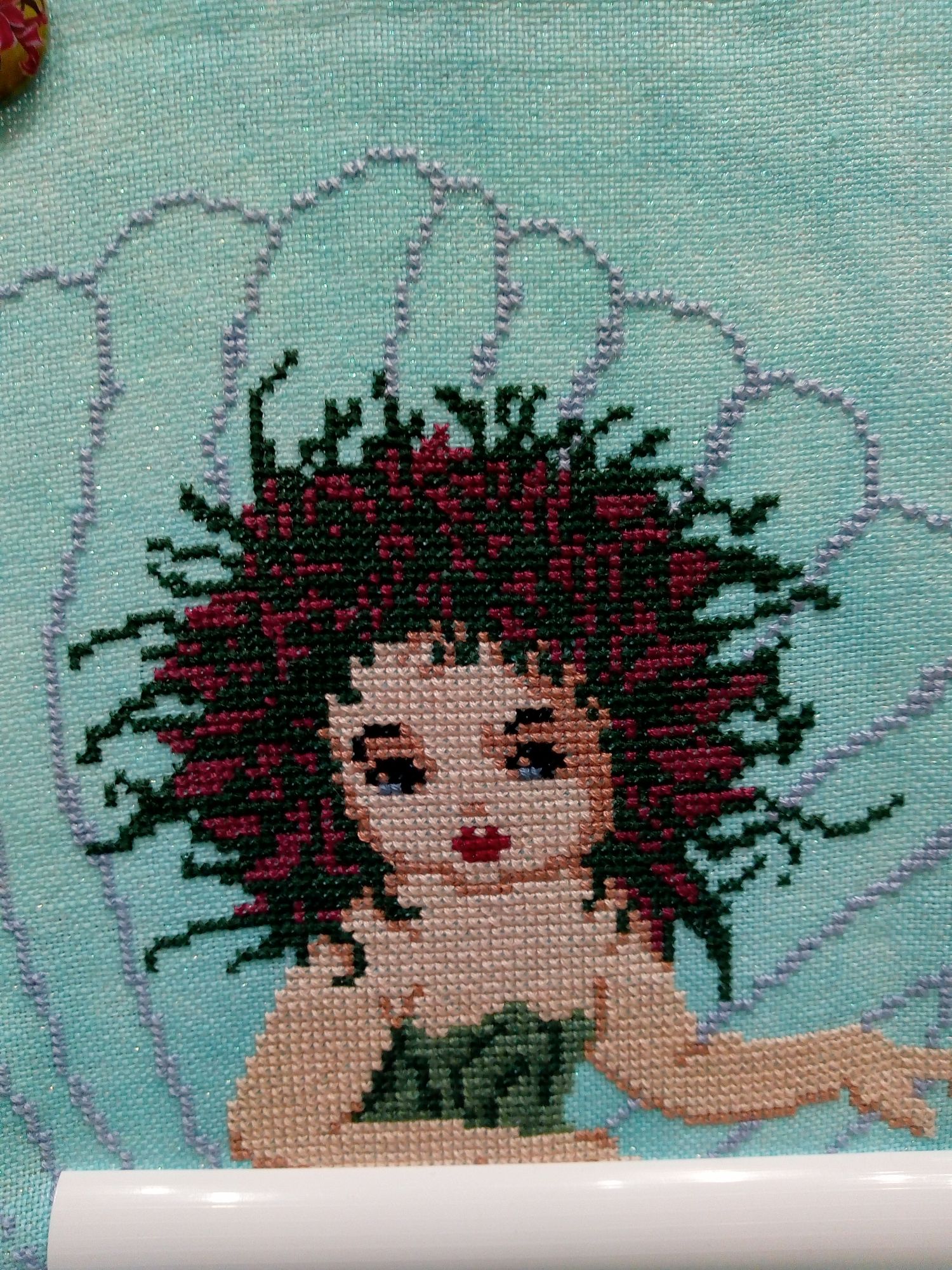 8 мая 2020 Распускаются листочки, Солнцу радуются почки. Май пришел, веселый май — Пальтецо скорей снимай! Всем-всем рада, покажу некоторые процессы, о которых не забыла и даже заметно их продвинула. Начну с Жемчужинки. Я определилась с цветом ниток 3803 и довышивала ей волосы, потом оформила контур ракушки. Вот так получилось. Девочки, я понимаю, что эта вышивка некий такой примитив, поэтому черты лица и тела грубовато смотрятся, но всё равно Жемчужинка мила и непосредственна. А вот потом достала я крейник и в одну ниточку стала вышивать раковину. Боже: ткань блестит, крейник блестит, солнце сияет, меня ослепляет, ниточка путается. Еле довышивала низ раковины. Крейника осталось мало, на верх уже не хватит, поэтому работу отложила пока. Закажу крейник в интернет магазине. Сделала ещё видео, на нём видно, как блестит отшитый участок. VID-20200508-WA0002.mp4 Затем взяла вышить норму у кота Риолис. До чего его нудно и просто шить, что себя пересиливала. Но дошла до нижнего левого угла, вышила узор, а потом и кота до низу отшила. Ещё хочу показать, как мой внук скучает без детского садика. Для воспитателей детишки сделали вот такой флэшмоб. Каждый оформил букву алфавита и вместе составили предложение. Мой Петечка во втором ряду сверху с буквой Ю. Вот такое общение сейчас происходит между детьми, новые реалии жизни. Чивава, Palex, titania и 7 других сказали спасибо Поделиться сообщением Ссылка на сообщение