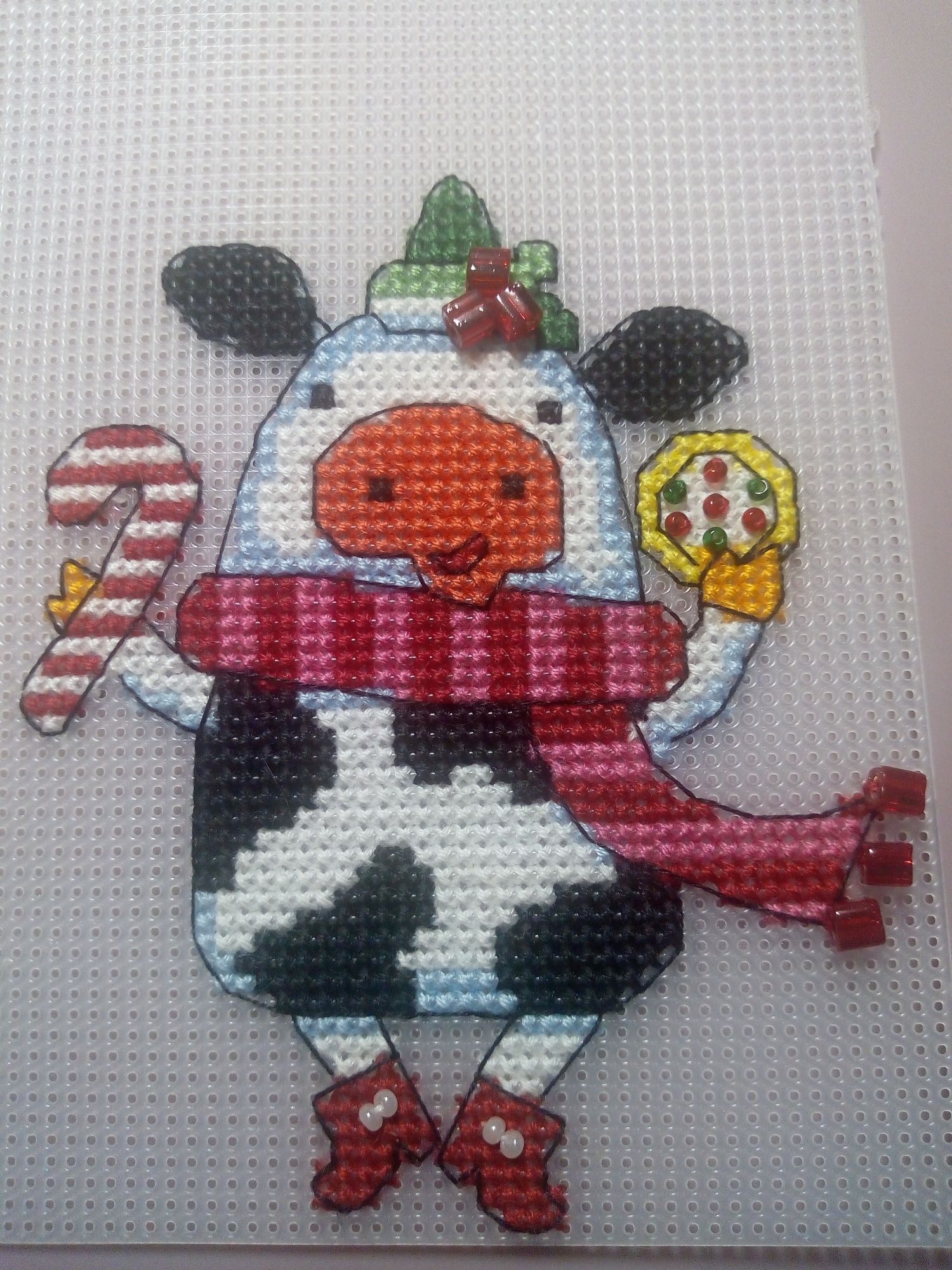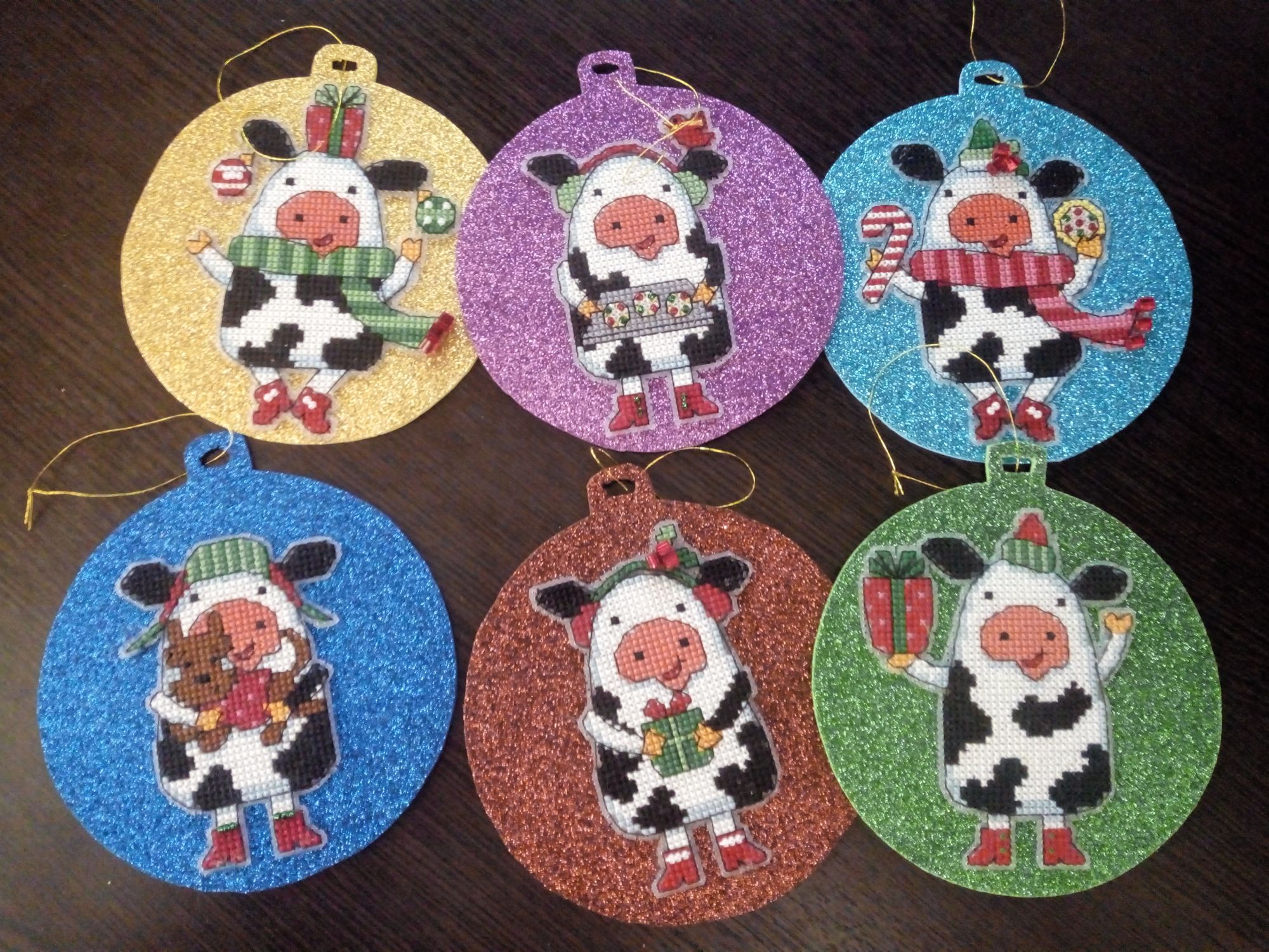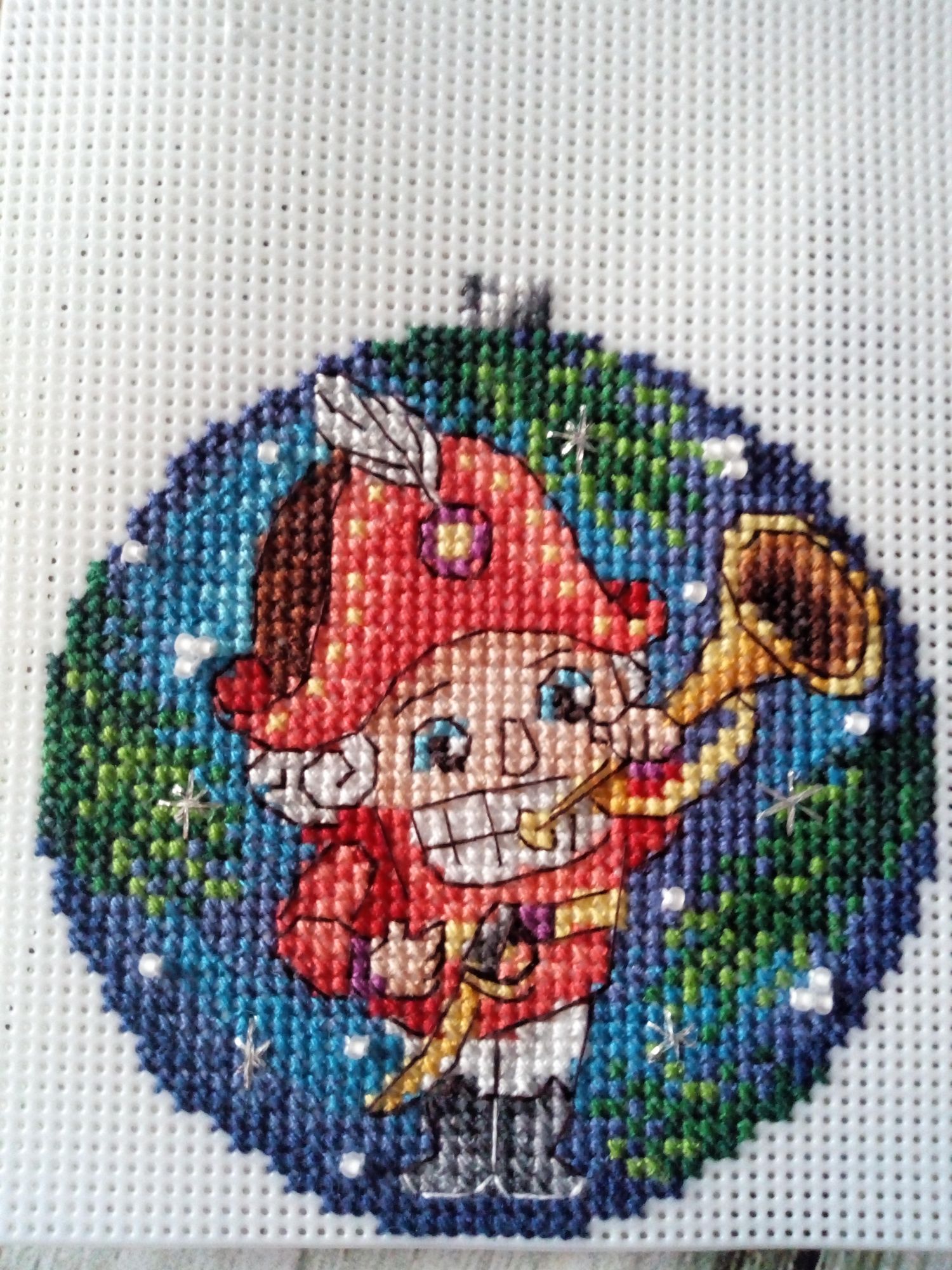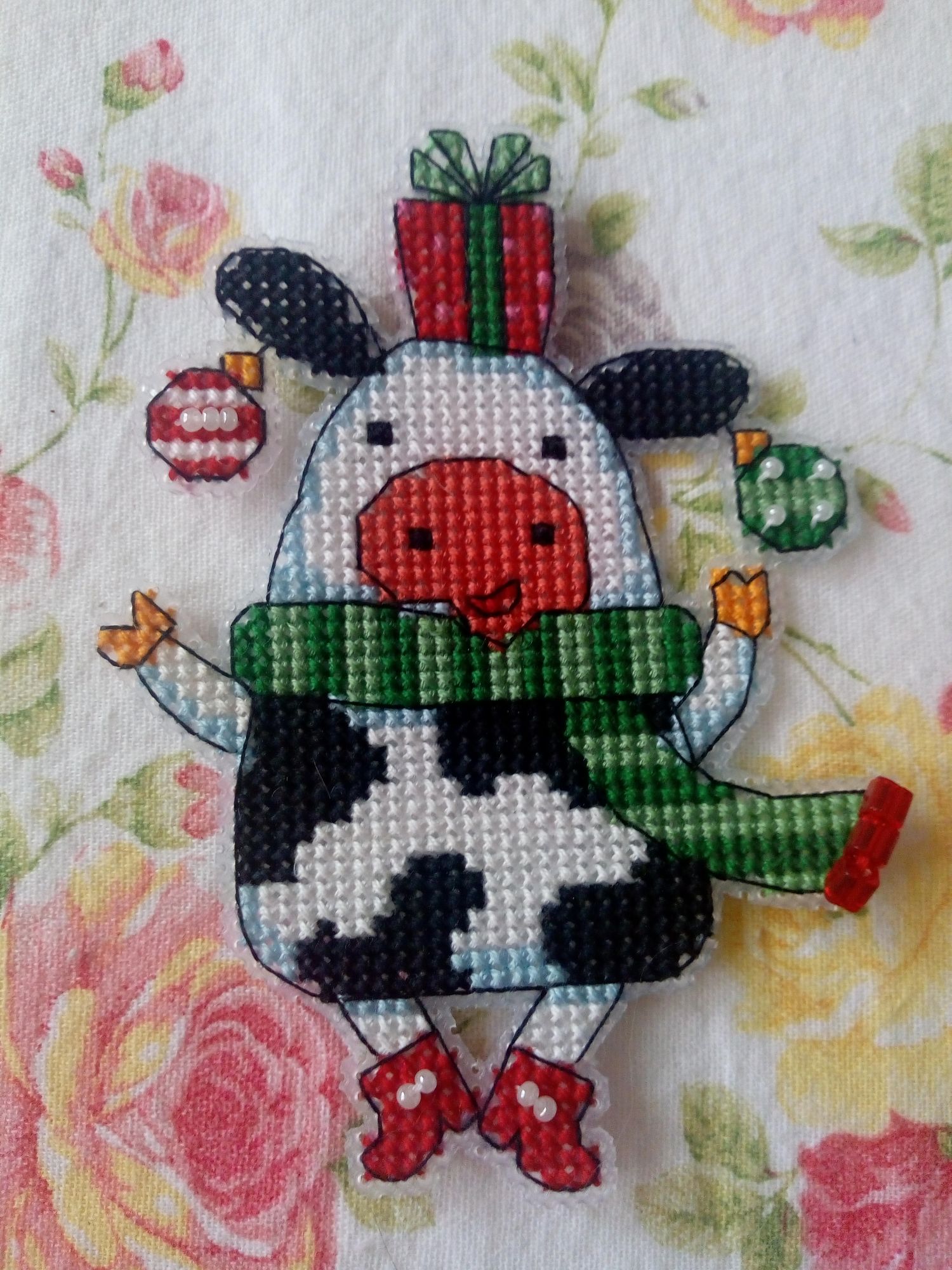 18 января 2021 Всем здравствуйте! Раз меня так долго здесь не было, решила подвести итоги старого года и показать, что мне удалось уже вышить в наступившем новом году. Начну, пожалуй, с новогодних игрушек и финишей. 1. Я полностью вышила всех коровок. Они все разные, со своим индивидуальным новогодним нарядом, со своими пятнышками, только ушки у всех черные. Можно зеленить гаечку. Пять коровок вышила в 2020 г., а на голубом фоне - в новом году. 2. С большими трудностями вышила и оформила Щелкунчика от Ирины Наниашвили. Сборка меня заставила попсиховать, даже впереди чёлку у Щелкунчика забыла вышить. Но мне он все равно нравится. В магазине буду искать маленький грецкий орех, деточку, чтобы он поместился в рот Щелкунчика. Можно зеленить гаечку. 3. Ещё одну игрушку со Щелкунчиком завершила в старом году, полноценно украшал ёлку своим присутствием. Игрушка двухсторонняя, но обратную сторону игрушки с красивой надписью было не видно, а жалко. Вокруг шарика приклеила синельную проволоку, она украсила игрушку, а во внутрь добавила немного синтепуха. Можно зеленить гаечку. 4. И ещё одну игрушку начала вышивать от Ирины Наниашвили. Это девочка Мари. Вышила пока немного, трудностей нет ( это же не сборка). Елку уже разобрала, поэтому красоваться на ёлке Мари будет только в конце года. Вот такая новогодне-рукодельная ёлочка у меня стояла в этот год. А это коровка. Она у меня на прищепке. Узнали её? На этом новогодне- игрушечная часть закончилась. Приступаю описывать вторую часть вышитого и даже оформленного. titania, Гало4ка, Ксен40 и 10 других сказали спасибо Поделиться сообщением Ссылка на сообщение