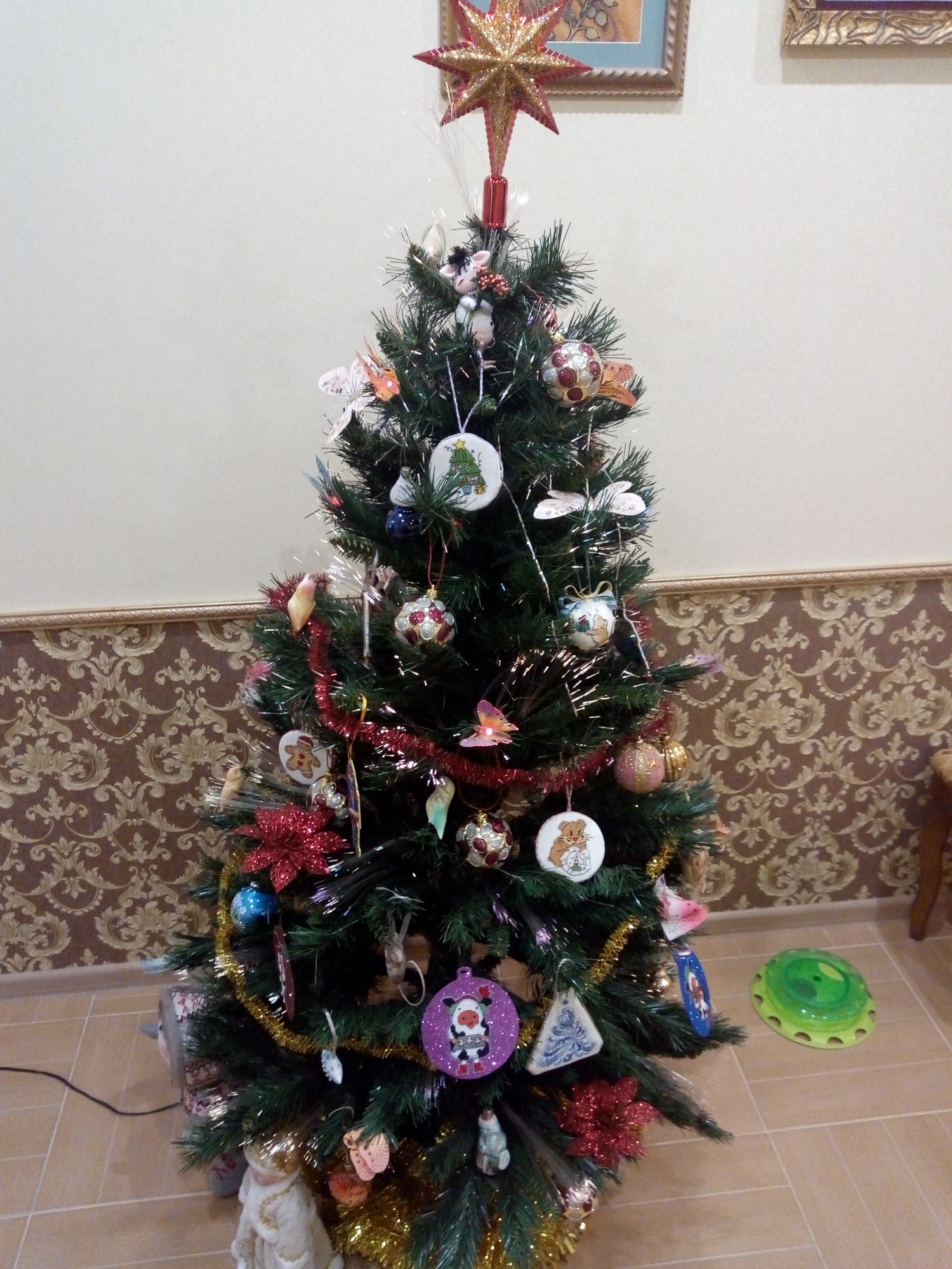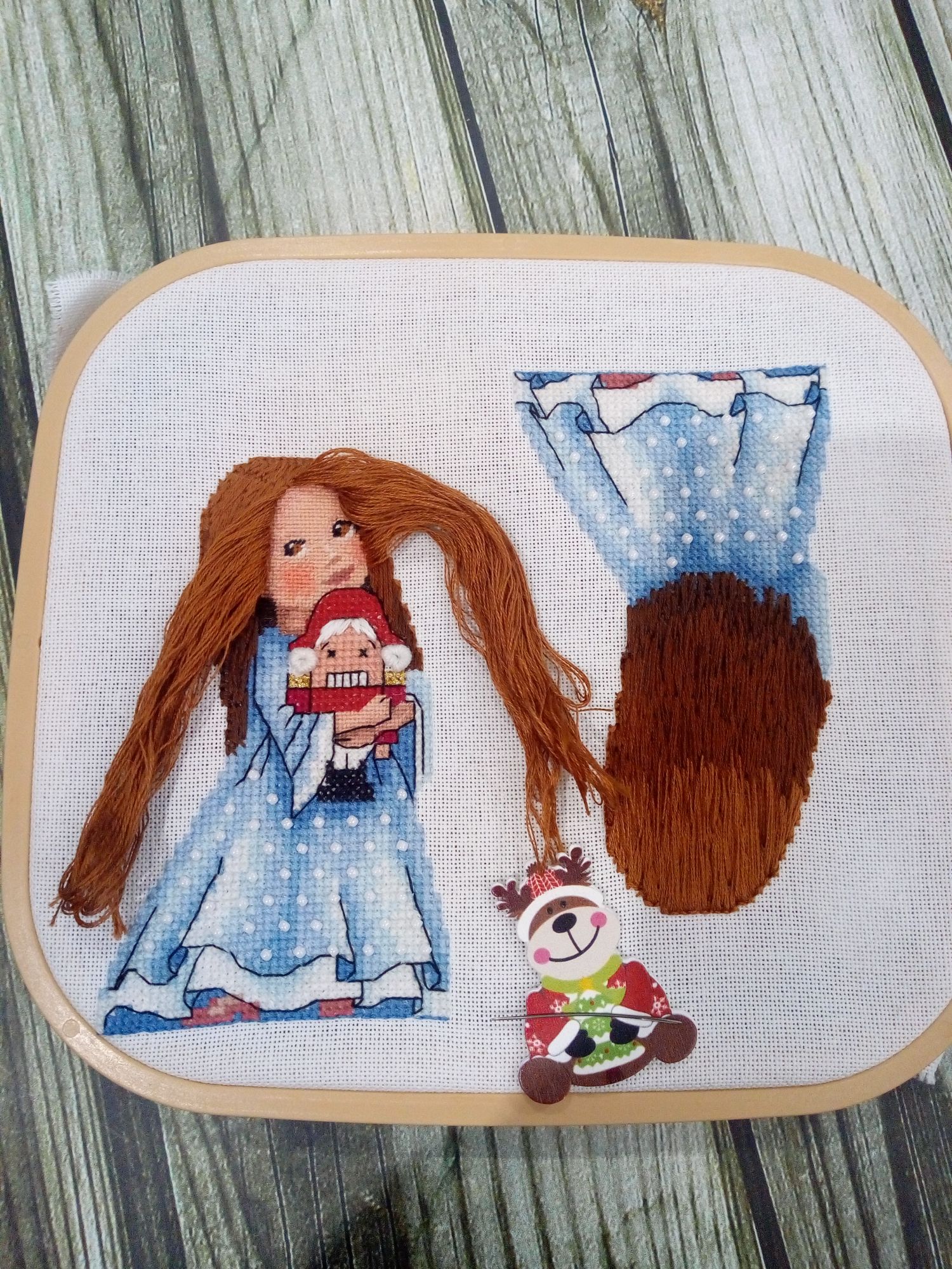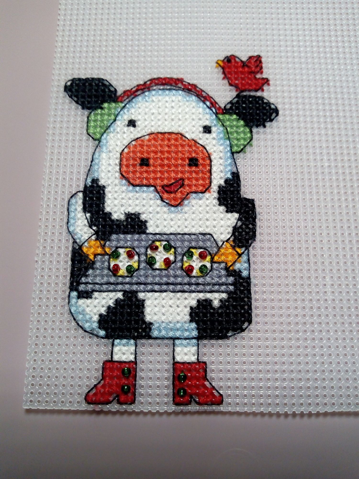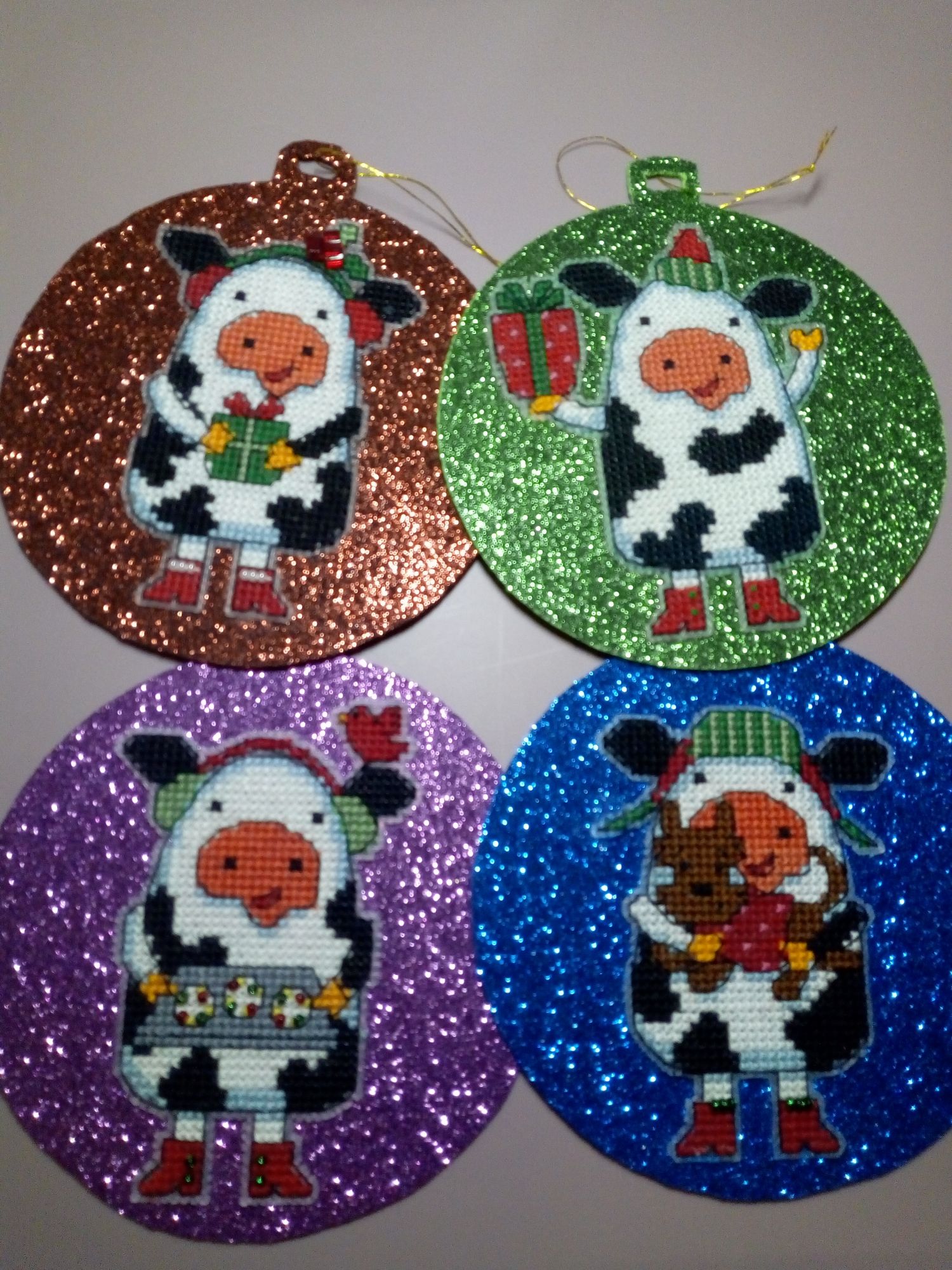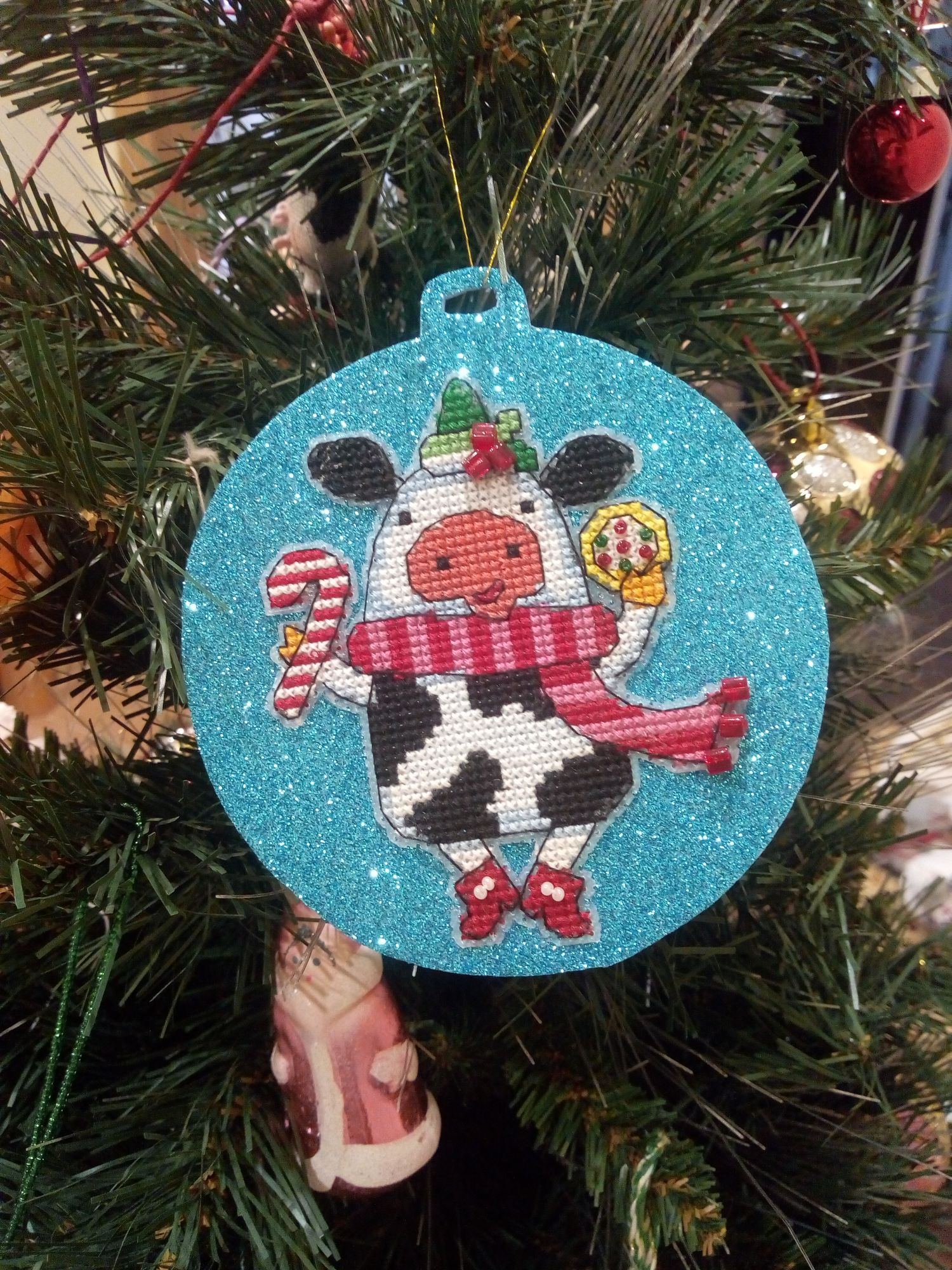 18 января 2021 Всем здравствуйте! Раз меня так долго здесь не было, решила подвести итоги старого года и показать, что мне удалось уже вышить в наступившем новом году. Начну, пожалуй, с новогодних игрушек и финишей. 1. Я полностью вышила всех коровок. Они все разные, со своим индивидуальным новогодним нарядом, со своими пятнышками, только ушки у всех черные. Можно зеленить гаечку. Пять коровок вышила в 2020 г., а на голубом фоне - в новом году. 2. С большими трудностями вышила и оформила Щелкунчика от Ирины Наниашвили. Сборка меня заставила попсиховать, даже впереди чёлку у Щелкунчика забыла вышить. Но мне он все равно нравится. В магазине буду искать маленький грецкий орех, деточку, чтобы он поместился в рот Щелкунчика. Можно зеленить гаечку. 3. Ещё одну игрушку со Щелкунчиком завершила в старом году, полноценно украшал ёлку своим присутствием. Игрушка двухсторонняя, но обратную сторону игрушки с красивой надписью было не видно, а жалко. Вокруг шарика приклеила синельную проволоку, она украсила игрушку, а во внутрь добавила немного синтепуха. Можно зеленить гаечку. 4. И ещё одну игрушку начала вышивать от Ирины Наниашвили. Это девочка Мари. Вышила пока немного, трудностей нет ( это же не сборка). Елку уже разобрала, поэтому красоваться на ёлке Мари будет только в конце года. Вот такая новогодне-рукодельная ёлочка у меня стояла в этот год. А это коровка. Она у меня на прищепке. Узнали её? На этом новогодне- игрушечная часть закончилась. Приступаю описывать вторую часть вышитого и даже оформленного. titania, Гало4ка, Ксен40 и 10 других сказали спасибо Поделиться сообщением Ссылка на сообщение