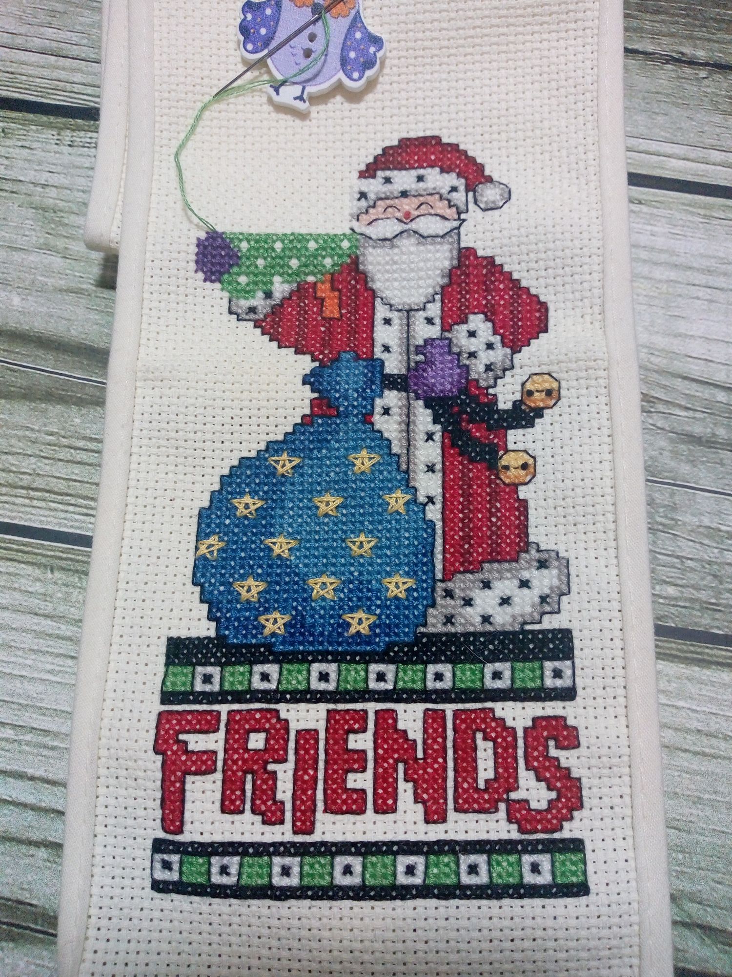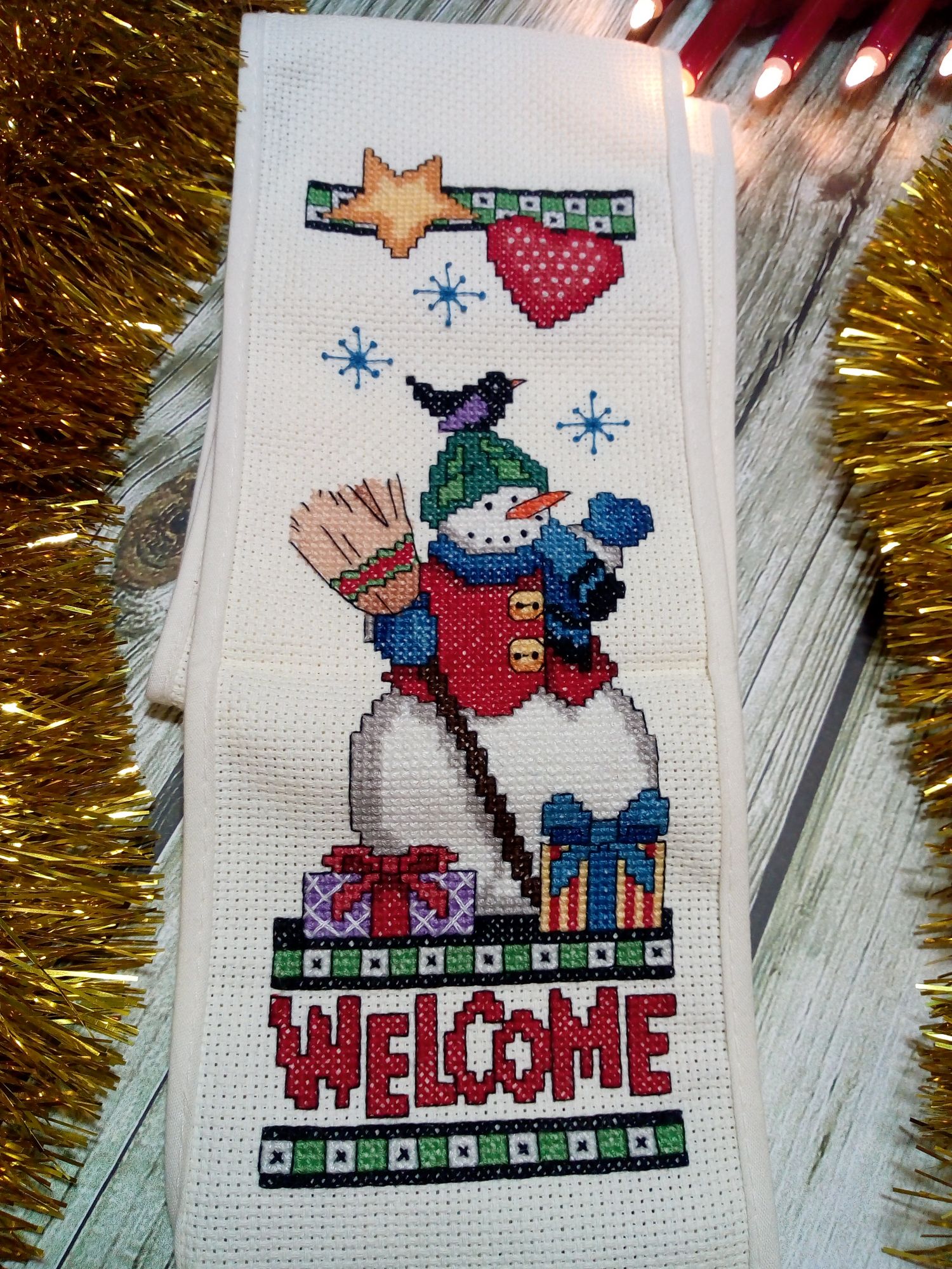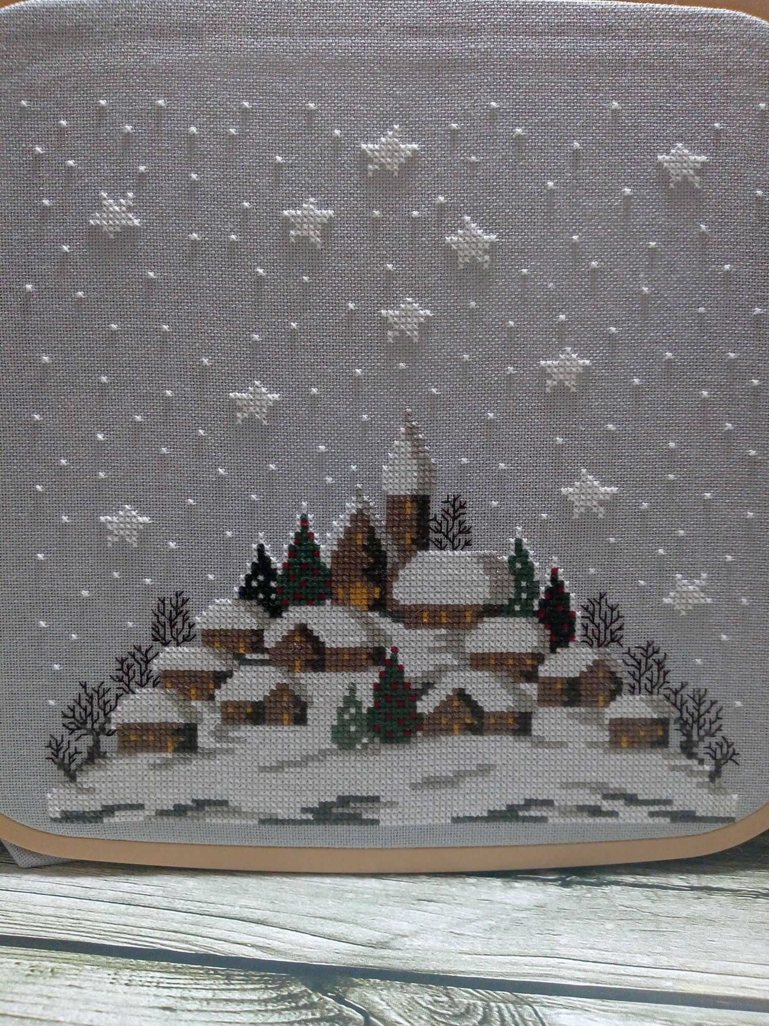 18 января 2021 Продолжаю повествование. 1. Ренато Паролин "Снежные домики". Долго я смотрела на эту картину, любовалась настоящей зимой и решилась. Ткань Мурано серого цвета. Вышивка похожа на большой сугроб, на котором разместилась деревенька, украшенная новогодними ёлками. В каждом доме горит свет, всё встречают новый год. На улице падает снег, на небе сверкают звёзды. Вышито 75%. Иду к финишу. 2. Сэмплер от Мадам Шантильи "Рождество". В своей вышивальной истории всего вышила один сэмплер, тоже новогодний, оформила в баннер, но в новогодней игре его подарила. Это второй. Тщательно подошла к выбору. Начала вышивать сверху. Ткань равномерка, в разводах, покупала в ВК группа "На траве". 3. Набор от dimensions "Святое Рождество". Как мне нравится его вышивать, каждый крестик вызывает восторг, наверно, от большой любви к этому набору. 1/4 часть работы уже готова. Вышила медведя, волка, белочку и енота. 4. И снова набор от dimensions новогодний бант для украшения двери. Тоже в восторге от вышивки, хотя и много бэка, он квадратичный, но меня не смущает. Снеговик вышился чудесный, а ворона на голове какая мимишная получилась. 5. А этот набор от Лукас вышила и оформила в прихватку. Набор небольшой, простой, даже детский, я бы сказала. Зато с коровкой. Это меня и подкупило. Пришлось довышивать небо и травку, чтобы оформить прихватку в лоскутной технике. Опробовала впервые. Подобрала остатки от тканей, выкроила, как написано в инструкции было и собрала. Прихватку уже украшает кухню, хотя год быка-коровы ещё не наступил. А ещё хочу похвастаться подарком от Светланы Алой Вишенки. Посылка пришла нежданно-негаданно. А там всего столько много всего разного пришло. Один набор от Риолис чего стоит. Полюбуйтесь! А это самодельная открытка! Красотень! Светуля, спасибо! Новогоднее настроение подняла заранее! Каникулы были насыщенными: ездили к друзьям на дачу, отметили мужу день рождения, познакомились с мамой девушки сына. Крутилась, вертелась! Желаю в Новом году всем добра, счастья и здоровья! Путешественница, ЛАДОМИРА, Гало4ка и 9 других сказали спасибо Поделиться сообщением Ссылка на сообщение
