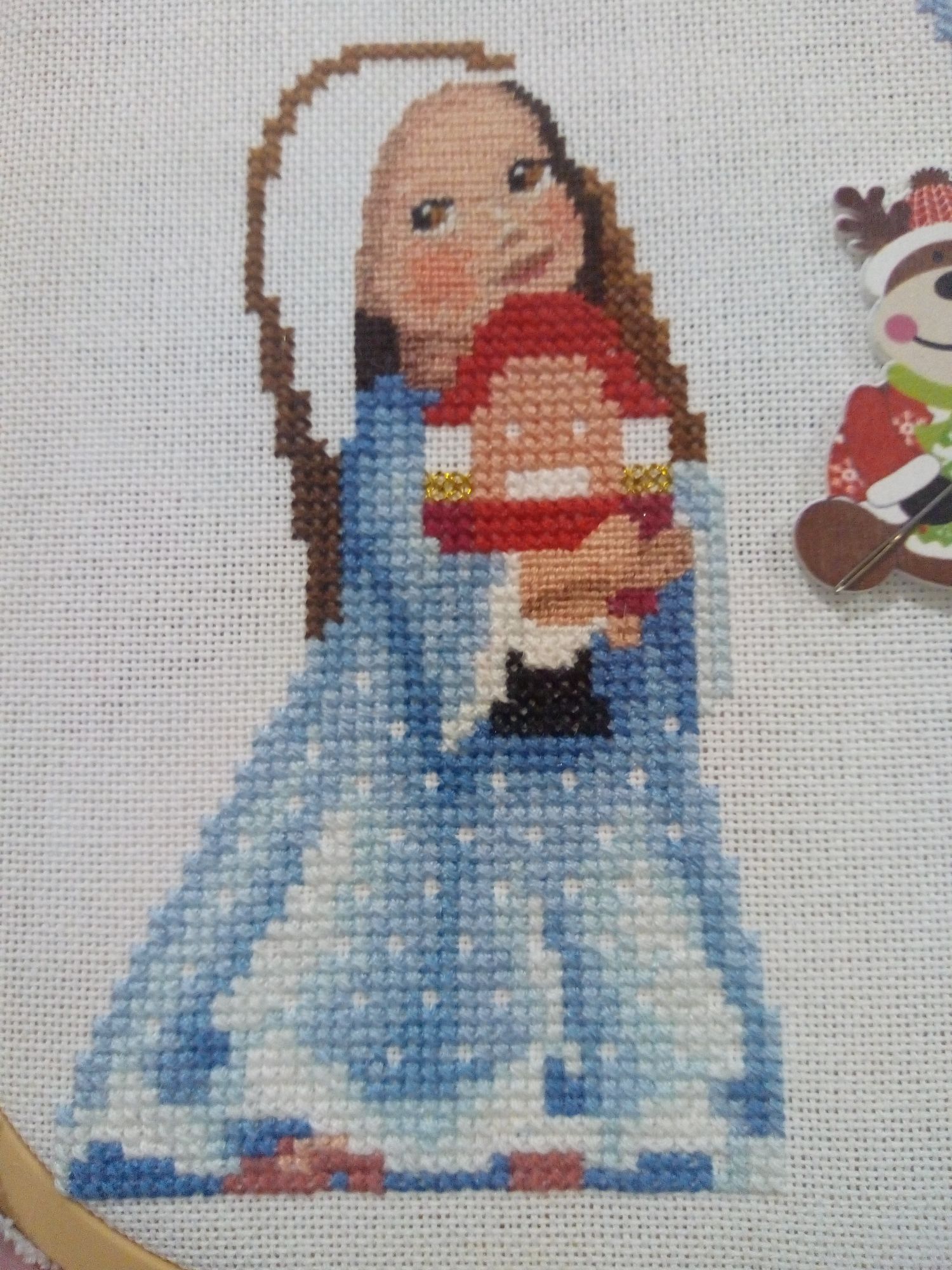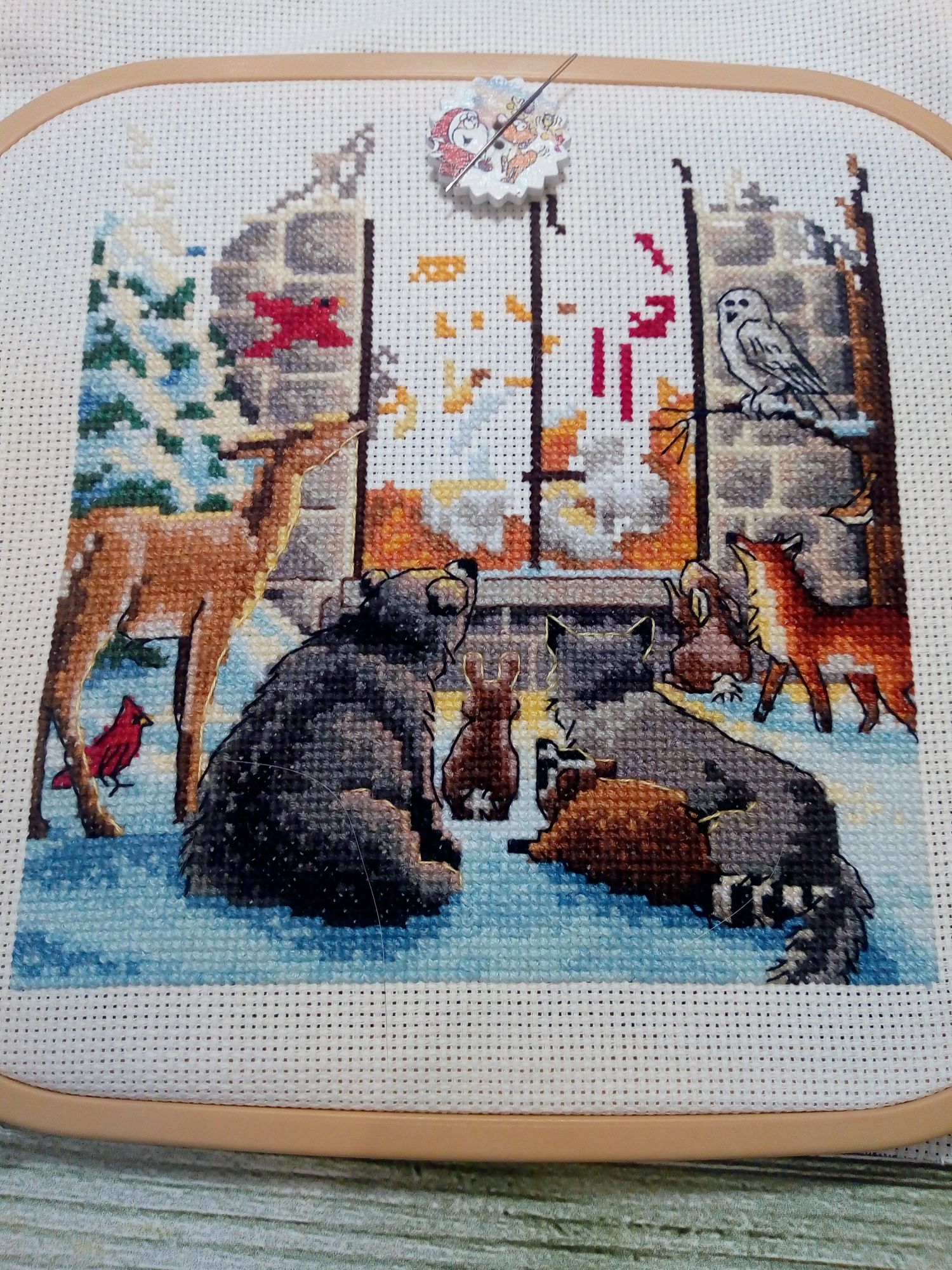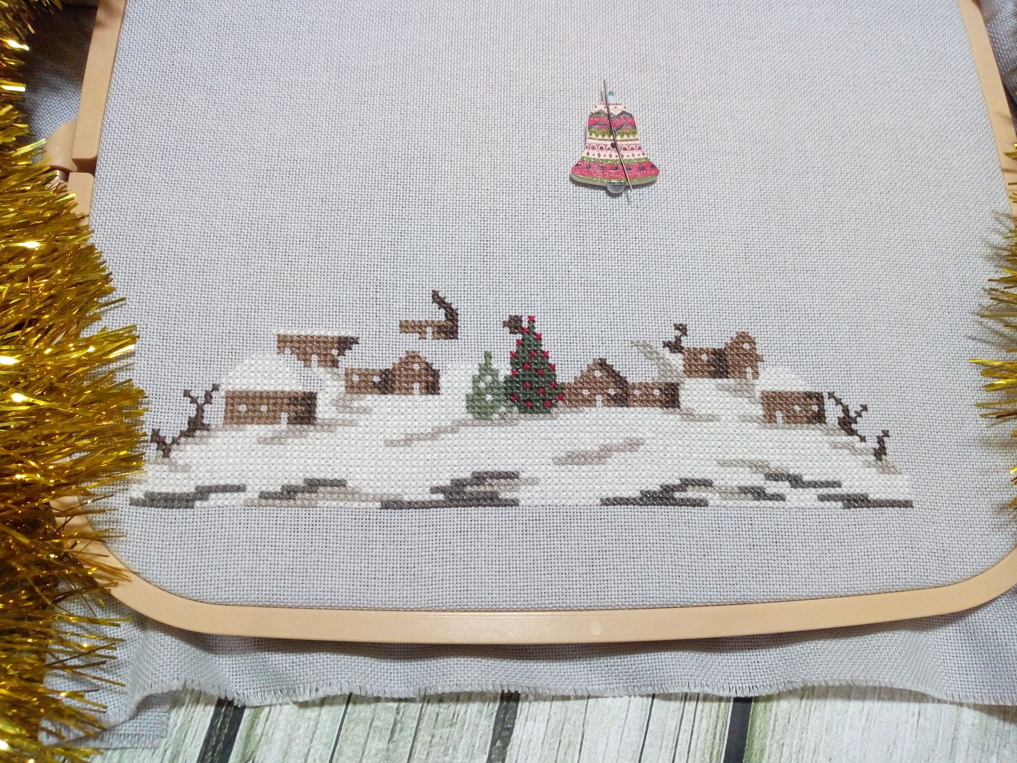 18 января 2021 Продолжаю повествование. 1. Ренато Паролин "Снежные домики". Долго я смотрела на эту картину, любовалась настоящей зимой и решилась. Ткань Мурано серого цвета. Вышивка похожа на большой сугроб, на котором разместилась деревенька, украшенная новогодними ёлками. В каждом доме горит свет, всё встречают новый год. На улице падает снег, на небе сверкают звёзды. Вышито 75%. Иду к финишу. 2. Сэмплер от Мадам Шантильи "Рождество". В своей вышивальной истории всего вышила один сэмплер, тоже новогодний, оформила в баннер, но в новогодней игре его подарила. Это второй. Тщательно подошла к выбору. Начала вышивать сверху. Ткань равномерка, в разводах, покупала в ВК группа "На траве". 3. Набор от dimensions "Святое Рождество". Как мне нравится его вышивать, каждый крестик вызывает восторг, наверно, от большой любви к этому набору. 1/4 часть работы уже готова. Вышила медведя, волка, белочку и енота. 4. И снова набор от dimensions новогодний бант для украшения двери. Тоже в восторге от вышивки, хотя и много бэка, он квадратичный, но меня не смущает. Снеговик вышился чудесный, а ворона на голове какая мимишная получилась. 5. А этот набор от Лукас вышила и оформила в прихватку. Набор небольшой, простой, даже детский, я бы сказала. Зато с коровкой. Это меня и подкупило. Пришлось довышивать небо и травку, чтобы оформить прихватку в лоскутной технике. Опробовала впервые. Подобрала остатки от тканей, выкроила, как написано в инструкции было и собрала. Прихватку уже украшает кухню, хотя год быка-коровы ещё не наступил. А ещё хочу похвастаться подарком от Светланы Алой Вишенки. Посылка пришла нежданно-негаданно. А там всего столько много всего разного пришло. Один набор от Риолис чего стоит. Полюбуйтесь! А это самодельная открытка! Красотень! Светуля, спасибо! Новогоднее настроение подняла заранее! Каникулы были насыщенными: ездили к друзьям на дачу, отметили мужу день рождения, познакомились с мамой девушки сына. Крутилась, вертелась! Желаю в Новом году всем добра, счастья и здоровья! Путешественница, ЛАДОМИРА, Гало4ка и 9 других сказали спасибо Поделиться сообщением Ссылка на сообщение