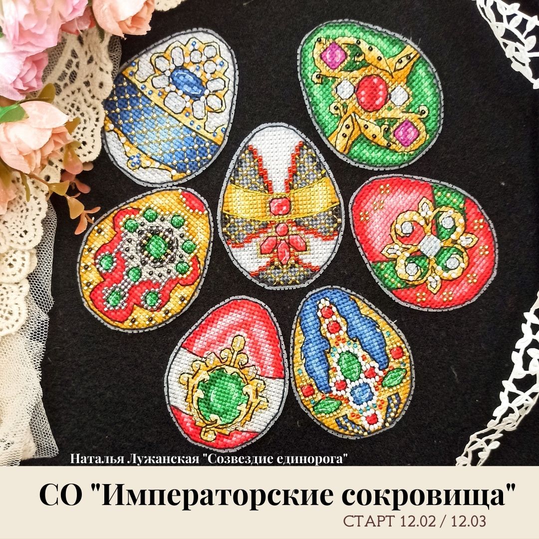 5 марта 2021 А сейчас покажу и расскажу про свои вышивки. Даже есть финиши и старты. С них, пожалуй, и начну. Закончила вышивать снежные домики от Ренато Паролин. Думала по-быстренькому довышиваю. Но теперь поняла, почему не встречала в интернете отшивов этой прекрасной зимней деревушки. В ней 130 одиночных крестиков. Каждый крестик закрепляла отдельно, чтобы не было протяжек. Получилось офигительно красиво. На формуле рукоделия отдала домики и черного лебедя на оформление Айварсу Пожарскому. Вчера уже списались с ним списались, обговорили детали оформления. А вот фото работы. Следующим финишом стала игрушка Мари от Ирины Наниашвили. Новый год закончился, но я решила каждый месяц вышивать по одной игрушке. За год получиться 12 игрушек. Интересно у девочки было делать волосы. Осталось вышить мышиного короля. Продвинула набор от dimensions "Святое Рождество". Стараюсь делать сразу бэк, его много, он мелкий, на потом не оставляю. А вышивать набор очень нравиться, постоянно появляются новые герои. Сапожок со Щелкунчиками тоже подрастает. Начинаю вышивать и вижу, что каждый Щелкунчик индивидуален. Сейчас переставила пяльца и вышиваю следующего. Очень хорошо подрастает набор от Мережки. Так нравиться вышивать половик на санях. Такие половики раньше из обрезков ткани вязали. Даже я в детстве пробовала вязать, правда круглый половик. Юбку под ёлку медленно продвигаю. Нитки так и крутятся, перевиваются, но я терплю. Верхняя коробка идёт к завершению. Сэмплер от Мадам Шантильи тоже повышивала. Появились флажки на верёвочке. Больше бэка уже не будет в сэмплере. Следующий процесс, который идёт к завершению - это новогодний бант от dimensions. Я в прошлый раз показывала законченного снеговика, а сейчас уже вышила дел мороза. Тоже интересная вышивка, много деталей и элементов. Бэк делаю сразу. Не забываю и про косметичку от Риолис. Вышила на ней весь орнамент с птичкой, зашиваю черный фон. Его много, так что проковыряюсь с ним. Птичка похожа на канарейку. Пока вышивала, даже видео про канареек посмотрела. Цветных ниток осталось много, ещё бы одна косметичка ими вышилась бы. Но у меня есть и необычный старт. Впервые я вступила в СО в группе "Созвездие единорога" у дизайнера Натальи Лужанской. Вышиваю яйца к Пасхе Императорские сокровища. Как только их увидела, сразу в них влюбилась. Всего 7 яиц. Одно яйцо вышиваешь, тебе выдают следующую схему. Посмотрите какая красота получается. Мне осталось вышить ещё 3 яйца. Вот и всё Вам показала. Думаю, что Вам интересно было все посмотреть. Вася продолжает мне помогать вышивать. Ниточки его завораживают. Surik, Пушистая, ЛАДОМИРА и 8 других сказали спасибо Поделиться сообщением Ссылка на сообщение