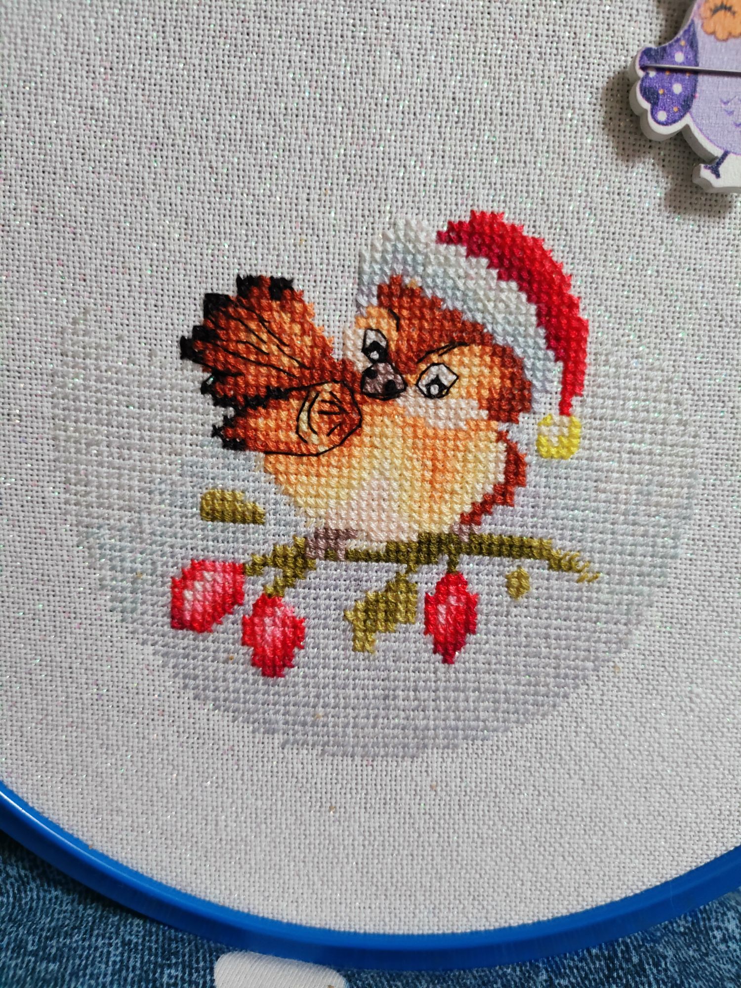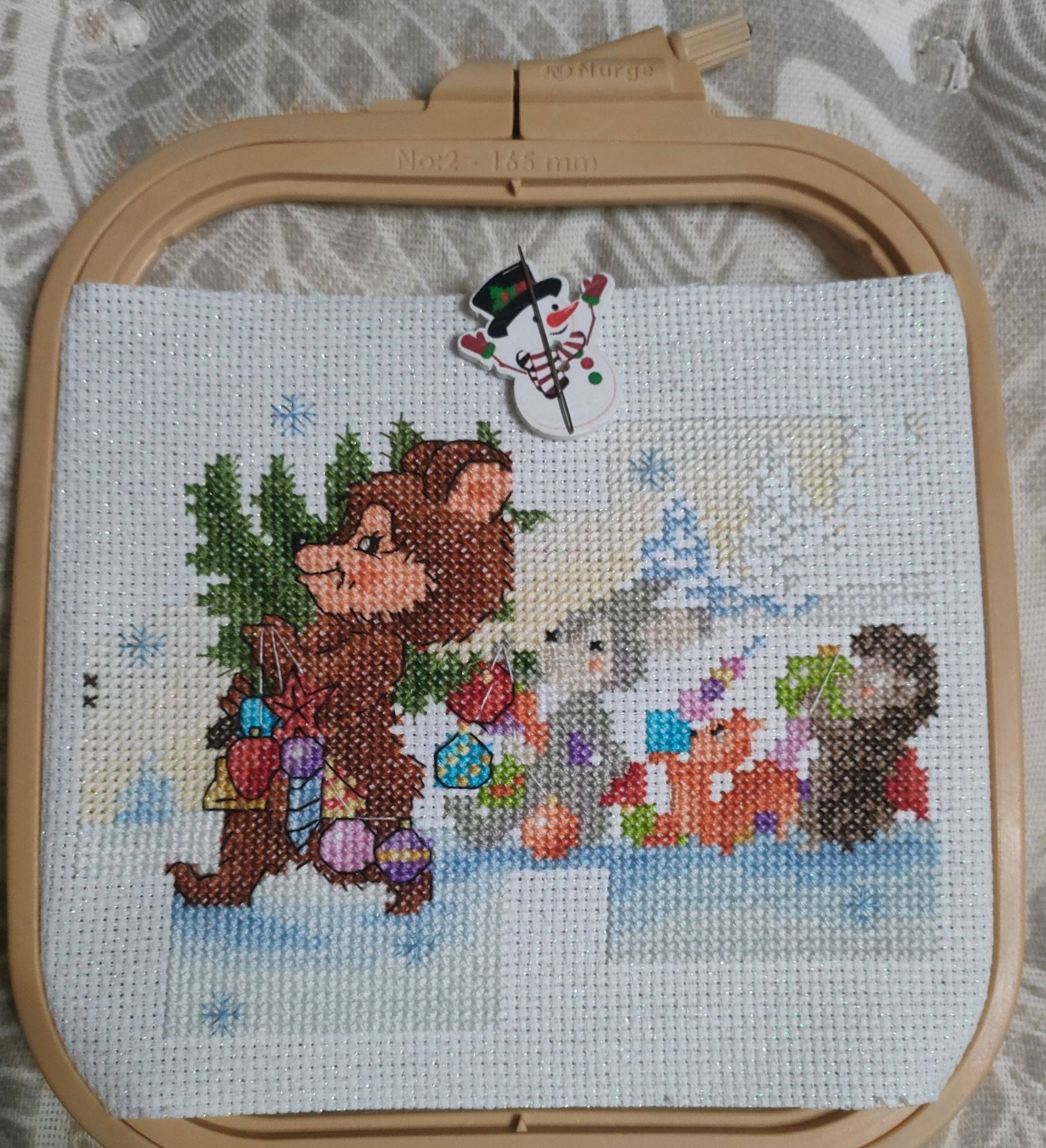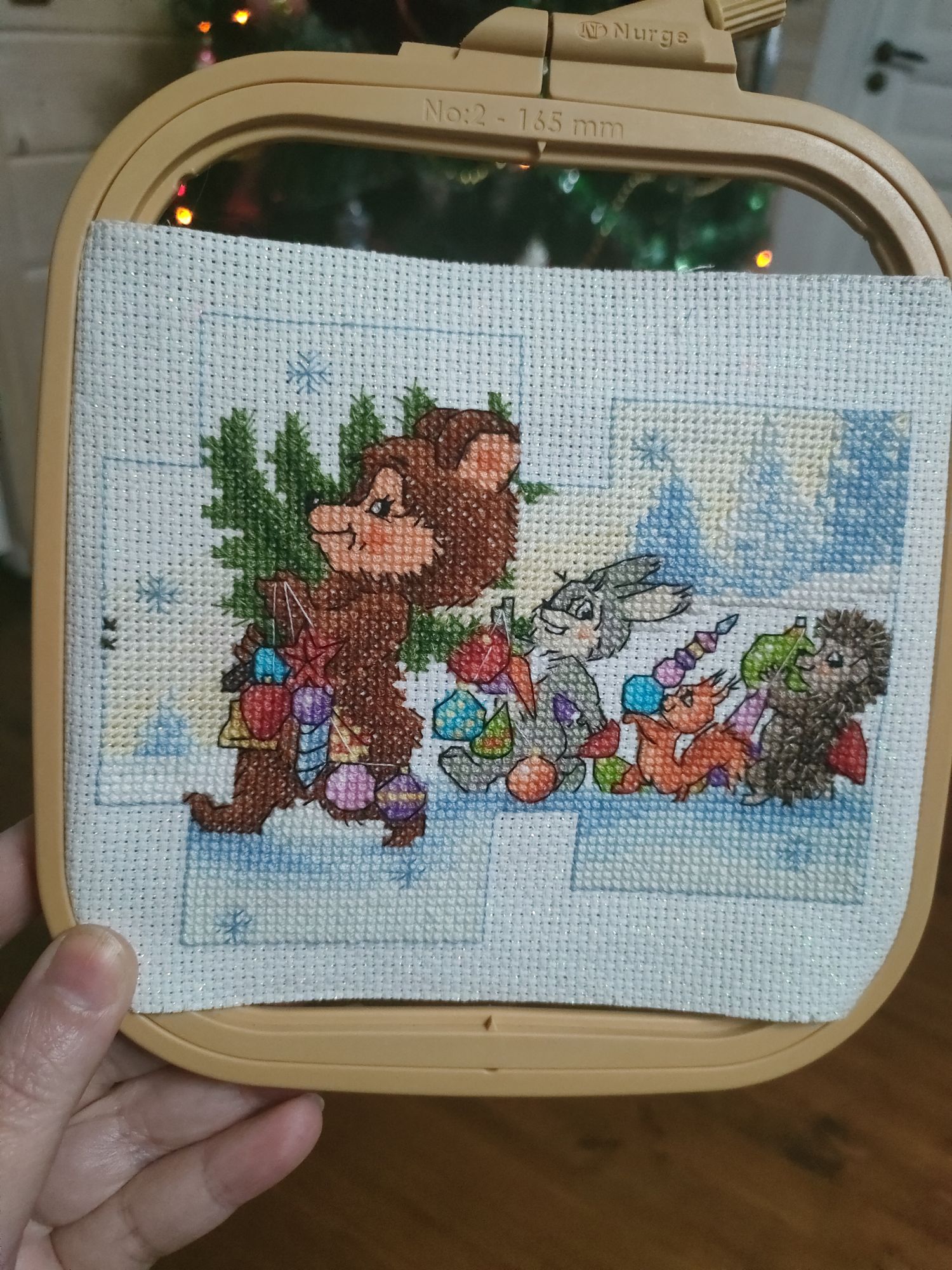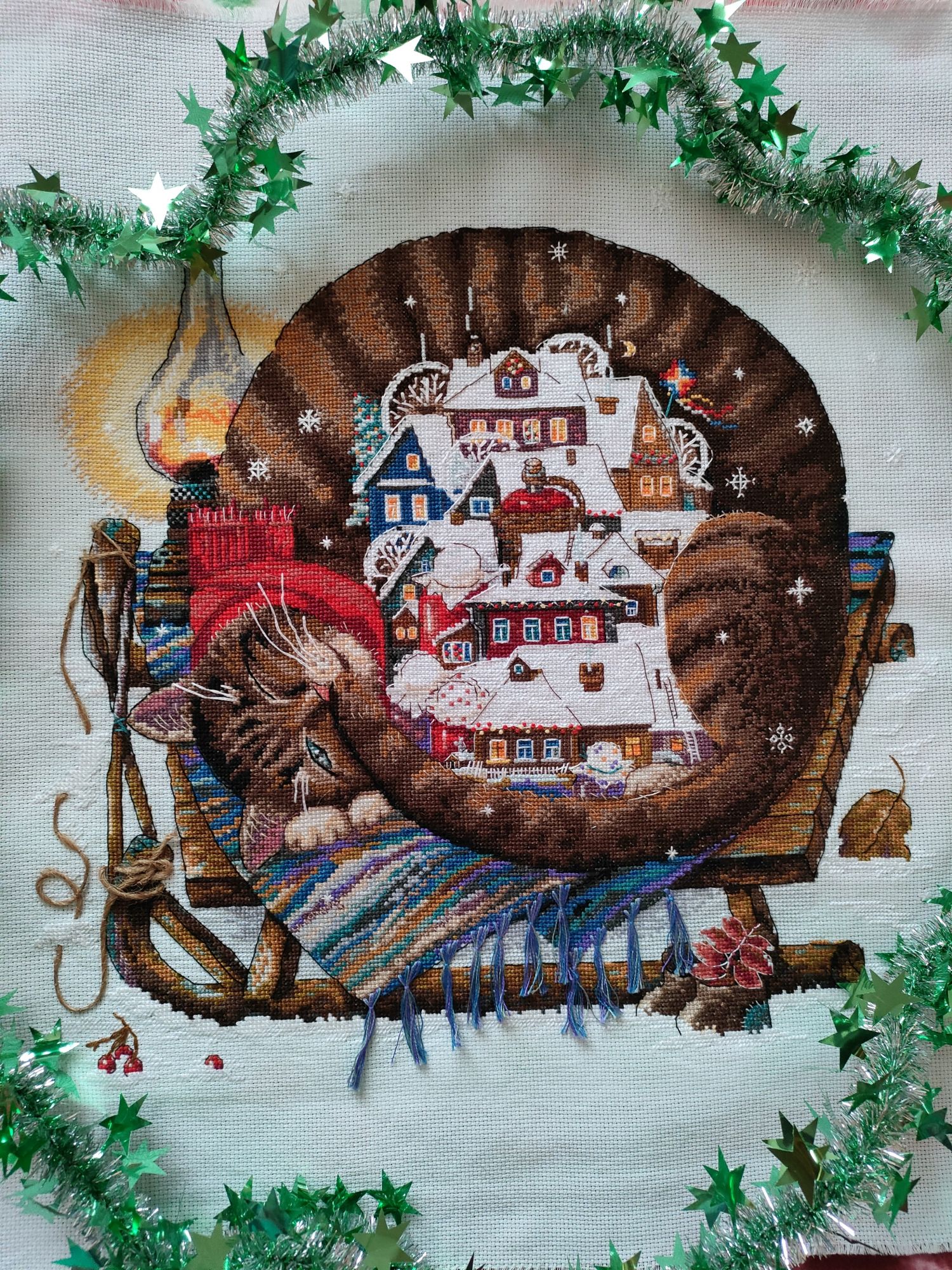 11 января 2023 Всем привет в Новом году! Новый год, а значит первый отчёт в этом году. Многие процессы были отшиты в прошлом году, были и старты , и финиши, поэтому у меня есть что Вам продемонстрировать. 1. Начну, пожалуй, с новогоднего топиария. Продвинула его немножко, зато весь вазон уже вышит. 2. Вышивала тарелку с птичкой, вышила веточки с ягодками остролиста и любовалась каждым крестиком. Очень хорошо проработан дизайн. 3. Хотела до нового года вышить игрушку -елочку, не успела. Но год зайца ещё не наступил, хочу сейчас повышивать и закончить ёлочку. 4. Выросла ещё одна кошечка у набора РТО "Подружки", у нее необычного цвета глаз: бирюза. Зато она получилась загадочной сладкой киской. 5. На многоцветке появилось румяное, наливное яблочко. Так и хочется откусить. А сейчас буду показывать финиши и зеленить гаечки. Люблю, когда процессы уменьшаются и появляется готовая красивая работа. 6. Завершена "Магия ночи". Процесс небольшой, но вышивался медленно и неудобно для меня. Против шерстяных ниток я ничего не имею, но с мулине, наверно, процесс смотрелся бы не хуже, по крайней мере бэкстич был бы аккуратнее. 7. Завершена процесс с игрушками от Марьи искусницы. Игрушки оформила, уже висят на ёлке, всех материалов хватило, ниточки остались. 8. Вышила белую кошку на подушку от Риолис. Теперь нужно купить 2 задника на подушки и сшить 2 наволочки с черным и белым котом. 9. Вышила и оформила бычка Романа. Ох и тяжело мне далась сборка бычка. Как вспомню, так вздрогну. Зато какой красавец-кавалер получился. Тоже ёлку украшает. 10. Завершила большой процесс от Мережки. Когда вышивку оформлю, будет подглядывать за мной одним глазиком котик и согревать своим теплом. Классно смотрится половик с кисточками и веревка для санок. А сейчас покажу новые процессы и сразу финиши. 11. Вышила набор Ольги Романовой со Щелкунчиком на деревянной основе. На обратную сторону приклеен фетр. Посмотрите какая шпага у него красуется сбоку. И вообще, Щелкунчик - красавец! 12. А ещё Светлане Вишенка аллой я на готовые часы вышила Маяк-лето по схеме Елены Ларцовой. Сюжет небольшой, но симпатичный. Я очень хочу, чтобы у Светланы исполнялись желания. Но в посылке повредился часовой механизм. Надеюсь, что Светик часики отремонтирует , и они будут украшать комнату. 13. По бесплатной подарочной схеме на Новый год вышила карнавальную маску. Это группа xstitch tower в Контакте, вдруг кто-то захочет вышить. Вышила на пластмассовой основе, на обратной стороне красный фетр, украсила маску красным биконусом и перьями. А вот что получилось у меня: Меня узнаёте? А ещё я начала вышивать 2 новых процесса, ещё не вышила, но гаечки можно завести. 14. Новогодние шарики от Натальи Лужанской. У меня куплены 4 схемы вот этих шариков. Начала вышивать шарик с названием "Искра веры". 15. И. Наниашвили схема "Мышиный король". У меня уже вышиты и оформлены Щелкунчик и Мари. Очередь до мыша дошла. У него такие забавные головы, совсем нестрашные. На этом заканчиваю повествование, но мой Дед Морозик передает Вам новогодний привет! И я тоже! Забава_, Alinia, Пушистая и 12 других сказали спасибо Поделиться сообщением Ссылка на сообщение