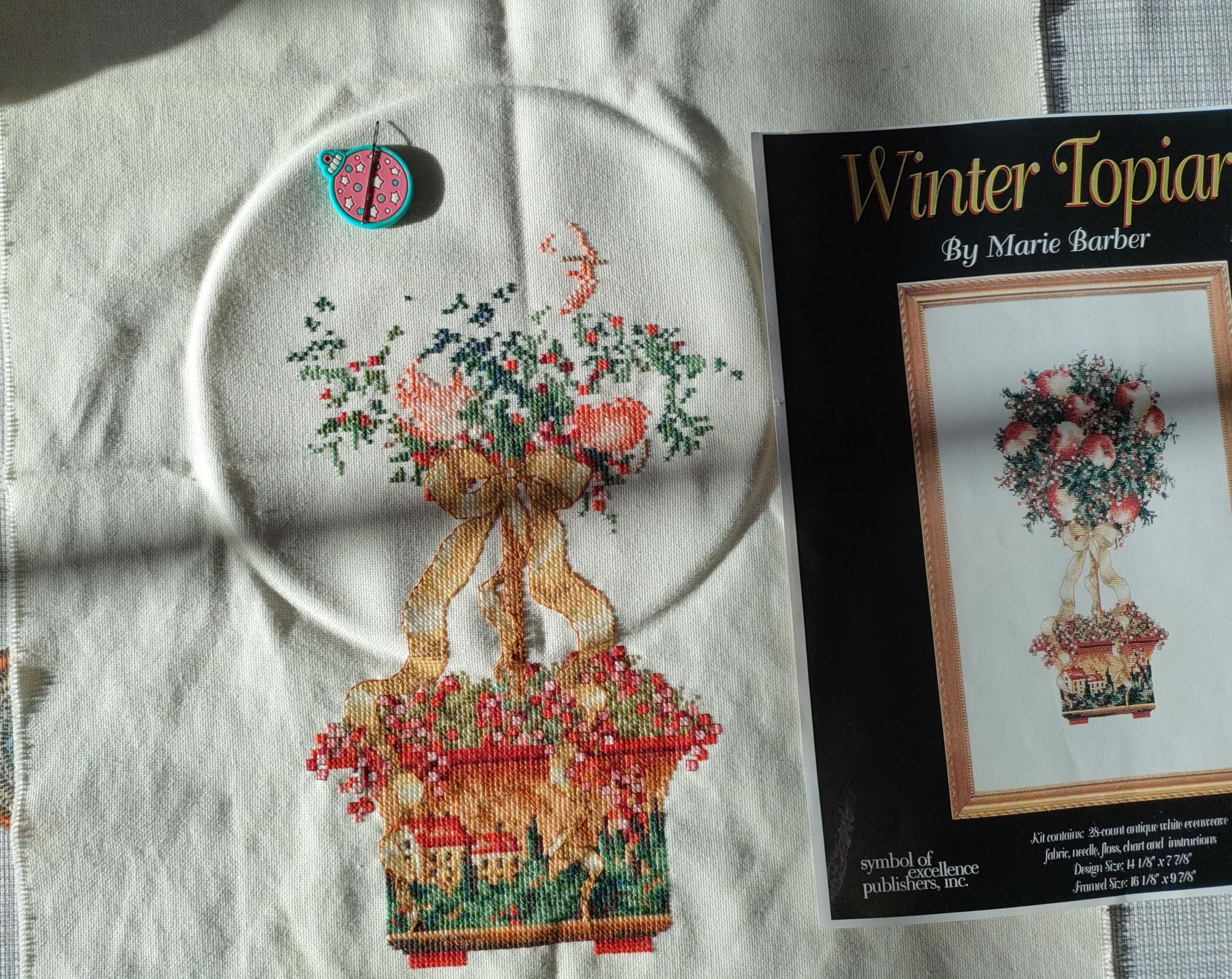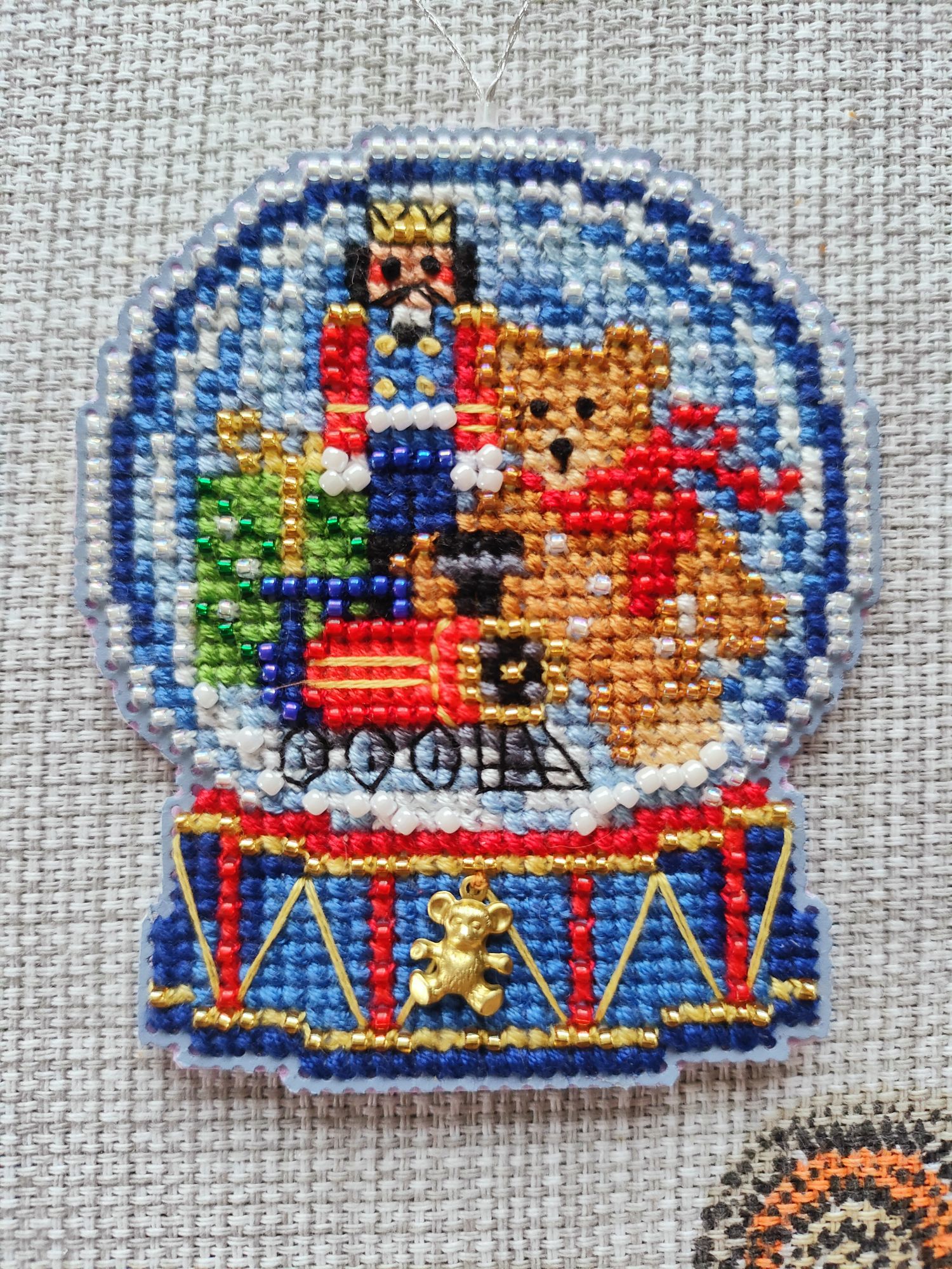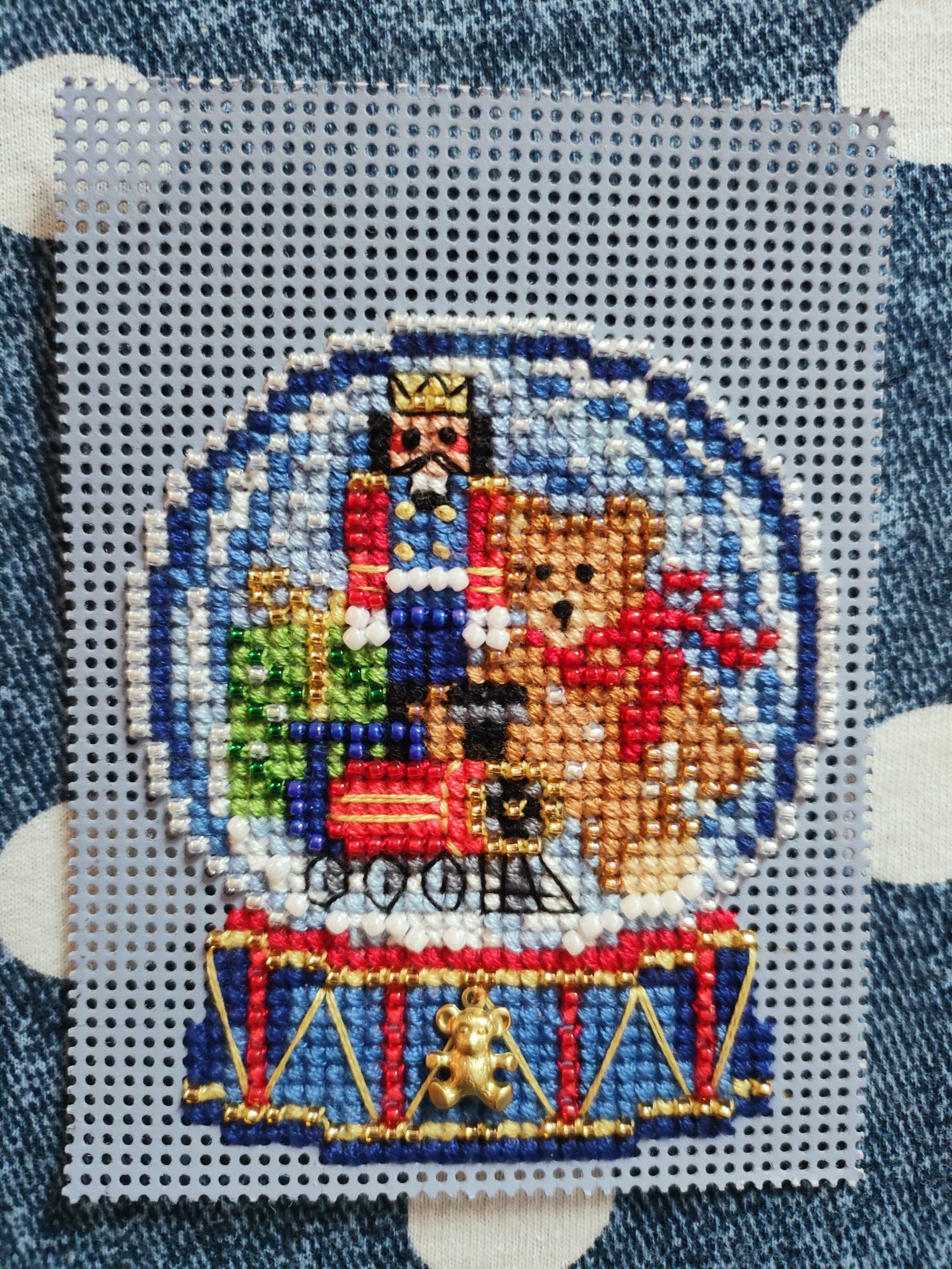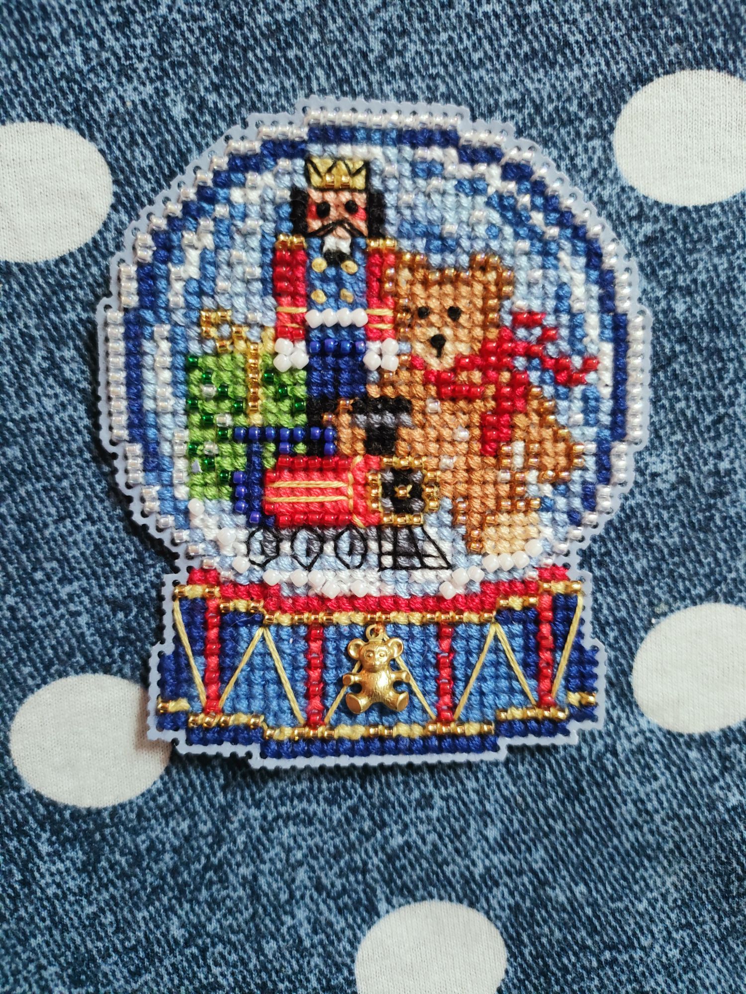 11 января 2023 Всем привет в Новом году! Новый год, а значит первый отчёт в этом году. Многие процессы были отшиты в прошлом году, были и старты , и финиши, поэтому у меня есть что Вам продемонстрировать. 1. Начну, пожалуй, с новогоднего топиария. Продвинула его немножко, зато весь вазон уже вышит. 2. Вышивала тарелку с птичкой, вышила веточки с ягодками остролиста и любовалась каждым крестиком. Очень хорошо проработан дизайн. 3. Хотела до нового года вышить игрушку -елочку, не успела. Но год зайца ещё не наступил, хочу сейчас повышивать и закончить ёлочку. 4. Выросла ещё одна кошечка у набора РТО "Подружки", у нее необычного цвета глаз: бирюза. Зато она получилась загадочной сладкой киской. 5. На многоцветке появилось румяное, наливное яблочко. Так и хочется откусить. А сейчас буду показывать финиши и зеленить гаечки. Люблю, когда процессы уменьшаются и появляется готовая красивая работа. 6. Завершена "Магия ночи". Процесс небольшой, но вышивался медленно и неудобно для меня. Против шерстяных ниток я ничего не имею, но с мулине, наверно, процесс смотрелся бы не хуже, по крайней мере бэкстич был бы аккуратнее. 7. Завершена процесс с игрушками от Марьи искусницы. Игрушки оформила, уже висят на ёлке, всех материалов хватило, ниточки остались. 8. Вышила белую кошку на подушку от Риолис. Теперь нужно купить 2 задника на подушки и сшить 2 наволочки с черным и белым котом. 9. Вышила и оформила бычка Романа. Ох и тяжело мне далась сборка бычка. Как вспомню, так вздрогну. Зато какой красавец-кавалер получился. Тоже ёлку украшает. 10. Завершила большой процесс от Мережки. Когда вышивку оформлю, будет подглядывать за мной одним глазиком котик и согревать своим теплом. Классно смотрится половик с кисточками и веревка для санок. А сейчас покажу новые процессы и сразу финиши. 11. Вышила набор Ольги Романовой со Щелкунчиком на деревянной основе. На обратную сторону приклеен фетр. Посмотрите какая шпага у него красуется сбоку. И вообще, Щелкунчик - красавец! 12. А ещё Светлане Вишенка аллой я на готовые часы вышила Маяк-лето по схеме Елены Ларцовой. Сюжет небольшой, но симпатичный. Я очень хочу, чтобы у Светланы исполнялись желания. Но в посылке повредился часовой механизм. Надеюсь, что Светик часики отремонтирует , и они будут украшать комнату. 13. По бесплатной подарочной схеме на Новый год вышила карнавальную маску. Это группа xstitch tower в Контакте, вдруг кто-то захочет вышить. Вышила на пластмассовой основе, на обратной стороне красный фетр, украсила маску красным биконусом и перьями. А вот что получилось у меня: Меня узнаёте? А ещё я начала вышивать 2 новых процесса, ещё не вышила, но гаечки можно завести. 14. Новогодние шарики от Натальи Лужанской. У меня куплены 4 схемы вот этих шариков. Начала вышивать шарик с названием "Искра веры". 15. И. Наниашвили схема "Мышиный король". У меня уже вышиты и оформлены Щелкунчик и Мари. Очередь до мыша дошла. У него такие забавные головы, совсем нестрашные. На этом заканчиваю повествование, но мой Дед Морозик передает Вам новогодний привет! И я тоже! Забава_, Alinia, Пушистая и 12 других сказали спасибо Поделиться сообщением Ссылка на сообщение