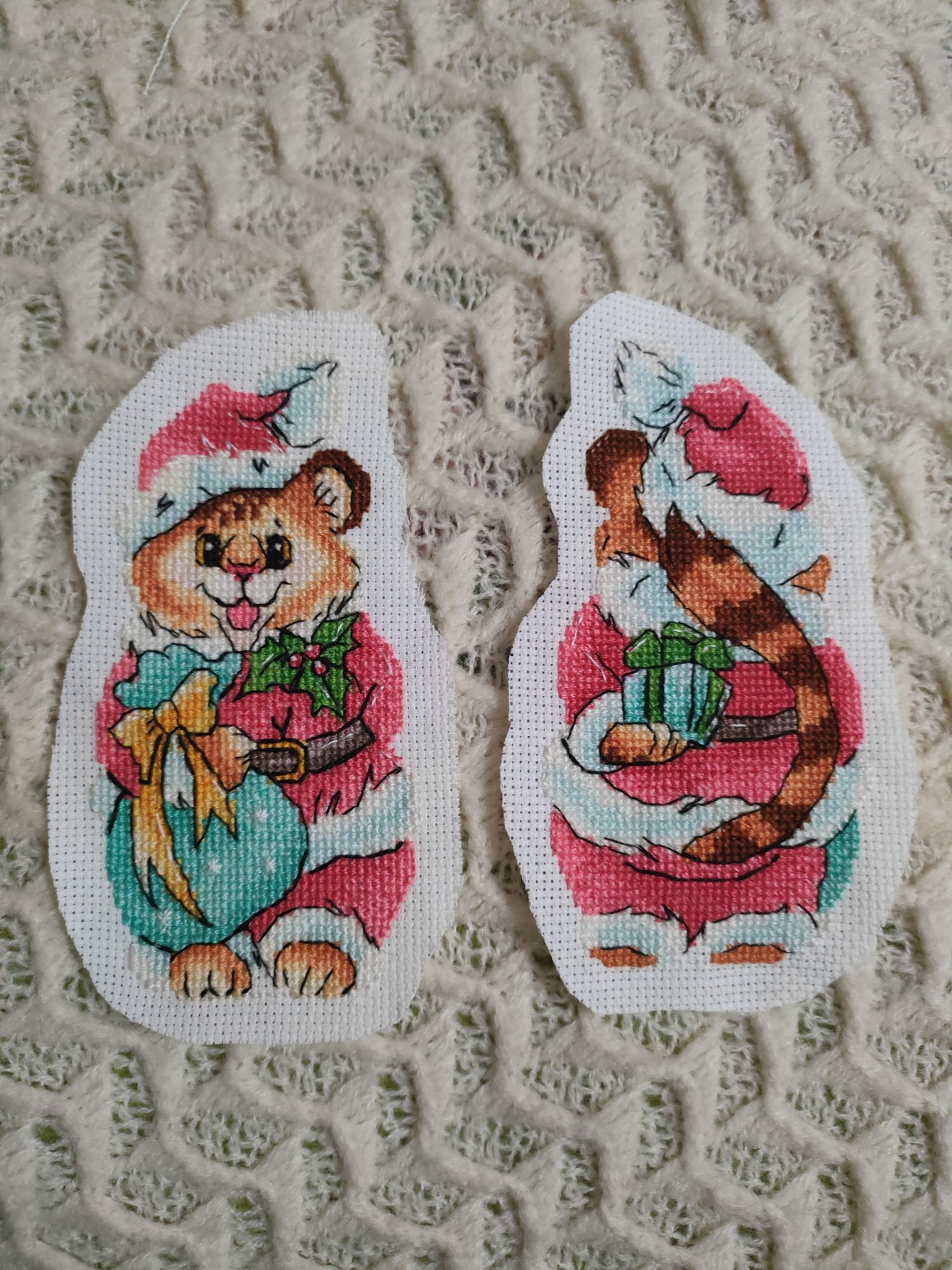 20 января Вот уже и Новый год наступил, и я решила, что пора сделать небольшой отчёт. 1. К новому году вышила синие шарики от Н.Лужанской. Красные шарики были уже вышиты, теперь красиво смотрятся все вместе на ёлке. Сразу старт и финиш. Начала шарики вышивать с "хрустальной искры". У шариков чудесные названия. Затем вышила "Искру силы". А это уже готов шарик "Искра защиты". И последний шарик из этой серии "Искра вьюги". А вот уже и все вместе шарики. . Гаечку сразу зеленим. 2. Завершила к новому году начатые два пинкипа от Марьи искусницы. . Гаечку зеленим. 3. Завершила процесс от Риолис "Вам подарочек" и сразу оформила в игрушки, чтобы ёлочку украшали. Гаечку зеленим. 4. С огромным удовольствием довышивала шарик "Зимняя ночь" от Марьи искусницы и сшила его. Зеленим гаечку. 5. Из новогоднего журнала "Время вышивать" за декабрь 2024г. вышила змею - символ 2025г. по китайскому календарю и оформила в пинкип ( сразу старт и финиш). . Гаечку зеленим. 6. Вышила от Русской сказки небольшой холст с царицей-змейкой, оформила в открытку и уже подарила её. . Гаечку сразу зеленим. 7. Немножко продвинула процесс сапожок со Щелкунчиком. 8. Старт и финиш небольшой миниатюрки "Зимние узоры" от группы "Суровое рукоделие" в ВК. Значок с оленем покупала специально для этого процесса на АлиЭкспресс. Ткань Аида темно-синяя 14 каунт. Гаечку зеленим. 9. Финишировала ещё с одной работой на зимнюю тему да ещё и с котиком от Татьяны Бобошко. Схема бесплатная. 10. Оформила листик календаря "31 декабря". Он у меня уже был вышит, но хочу показать его оформленным. 11. В день вышивальщицы купила схему Швецовой Анастасии с пряничным домиком. Старт. Всем приятного просмотра желаю я и мой Васенька. Ave, Путешественница, Marusya1978 и 11 других сказали спасибо Поделиться сообщением Ссылка на сообщение