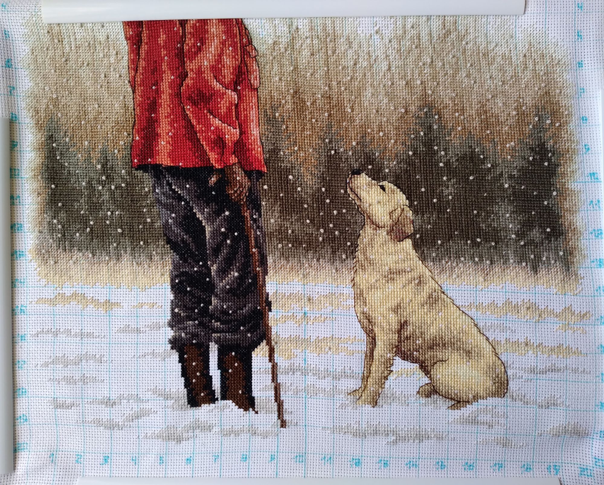 9 марта 2022 1 час назад, Tatiana2406 сказал(а): Девочки, здравствуйте! Стряхиваю пыль со своей темы, накопившуюся боле, чем за 2 месяца. Но на то были свои причины. Пока в и-нете мне долго сидеть нежелательно, постараюсь коротко и по делу. Завершила Дим "Лучший друг человека", за 2 месяца по крупинке, как курочка по зернышку, сделала то, что в других обстоятельствах сработала бы за 1-1,5 недели. И очень этому рада, так как даже удалось оформить и успеть реализовать скидочный купон в багетной. Доделала фрузелки (их там сотни), довышивала низ картины, отбэкала собаку, низ человека, траву на темном фоне леса и главное - сделала выкладные нити травы внизу, на снежной светлой части картины. Результатом осталась довольна. Все фото в гаечку, гаечку позеленить: И вот, что получилось в результате оформления: Я полностью удовлетворена. Нравится, правда пока нет места куда повесить, но это дело небольшого времени. И конечно же в реалии все ярче и красивее, чем на фото, паспарту потемнее, гармоничнее. А еще я немножечко продвинула свой процесс новогоднего флешмоба (Озорница"): Было: Стало (в гаечку): Девочки, я пока еще не хожу по гостям и бываю на форуме по чуть-чуть. Но если вы мне что-нибудь напишите, я конечно все-все прочитаю и если только "поспасибкаю", а не отвечу, как раньше, вы надеюсь это поймете. Всем здоровья! Уверена, что совсем скоро буду общаться по полной, очень соскучилась по форуму. Таня приветик...очень рада тебя видеть на форуме. Лучший друг оформился как нельзя лучше. Душевный сюжет в гармоничном оформлении . Здоровья тебе... АлёNка, Tatiana2406, Juliay и 3 других сказали спасибо Поделиться сообщением Ссылка на сообщение