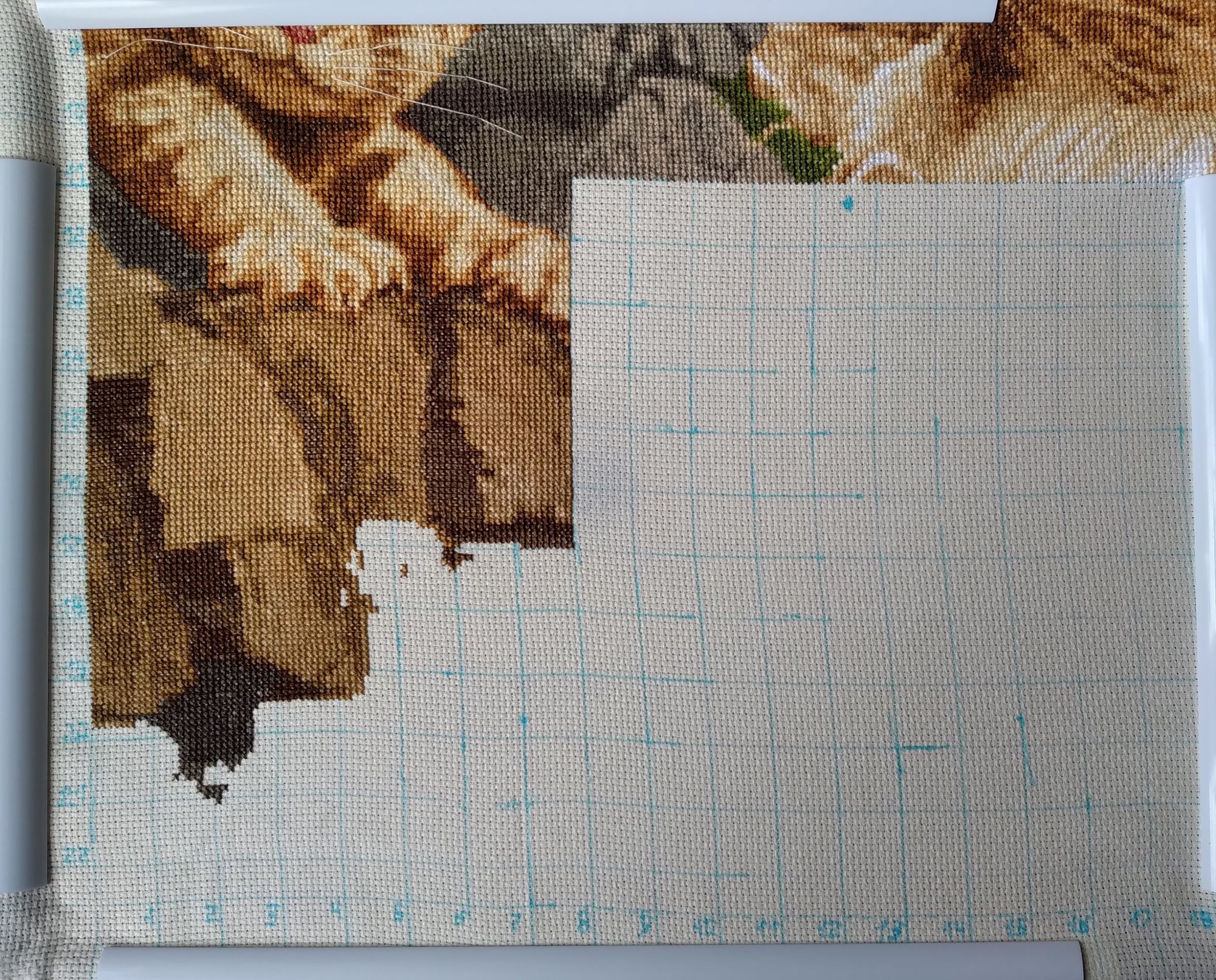 13 июля 2022 Девочки, Здравствуйте! Просто коротенький отчетик за 5 дней. Решила не накапливать продвижения, а выложить то, что пока есть, так как принцип "не откладывай на завтра, что-нибудь, да помешает" для меня актуален . Завершила я ударным для себя темпом 4-й лист озорницы, наколола дров немало . Это 2/3 работы. Рада, что получилось, вопреки жаре. Переставила пяльцы и уже реально пойду к личику, осталось до него немного серых бревен вышить. Было: Стало (в гаечку): Из-за жары пока схему Химеры не продолжала, только выделителей текста накупила, видимо придется выделять на схеме по цветам, чего я раньше никогда не делала. Жара спадет - возьмусь за нее, уж очень тянет. "Озорница" уже кажется "как бы вчерашний день", по крайней мере очень скучны (хотя и не так просты) участки, где дрова, бревна, фон. Но я ее хочу к осени "добить" и оформить, поэтому гоню пока идет. "Невышивальное" (да и вышивальное) у меня - просто преодоление жары, на это уходят все силы. Но каждый день по утрам, пока не напекло, выхаживаю деловым шагом свою норму - до метро и обратно, минимум час. "Не дождетесь"! Всем здоровья и радости лета! Lorans, Хозяйка смешных зверей, АлёNка и 11 других сказали спасибо Поделиться сообщением Ссылка на сообщение