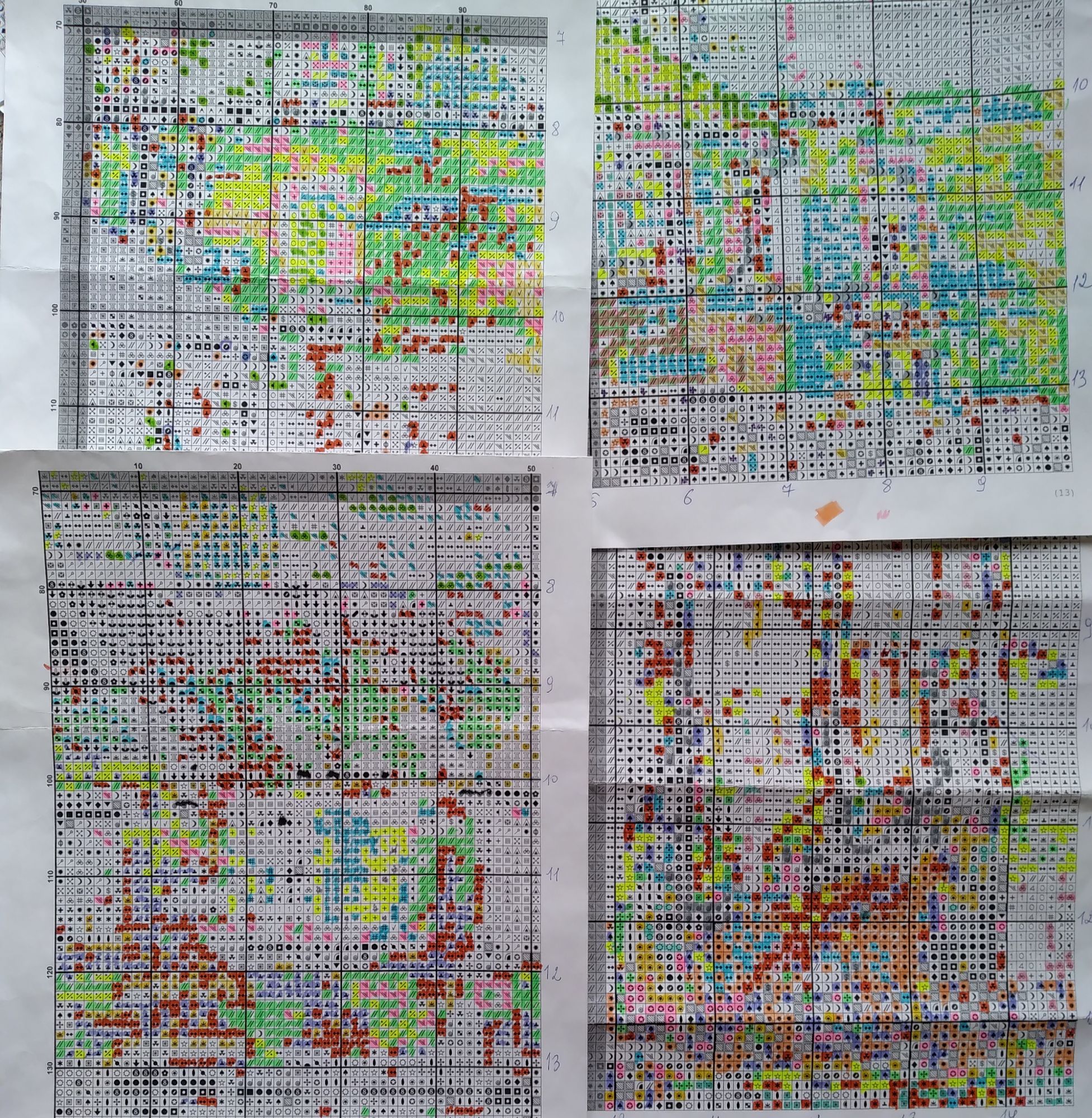 1 июня 2023 15 часов назад, Tatiana2406 сказал(а): Девочки, здравствуйте! Как и обещала, отчитываюсь в конце мая. Долго ничего не показывала. Но ведь у меня один же процесс, непростой, медленный, что там мелкие шажки показывать, решила сделать шаг покрупнее. К тому же кардинально изменились мои планы. Я уже писала об этом, но повторюсь для тех, кто не читал. С начала июня и по середину июля, а то и дольше, я буду за городом сидеть с внучкой. Поеду в эти выходные или на несколько дней попозже, но уже вот-вот. Очень мне хотелось в июне быть в Москве, полное крушение моих планов. Но внуки - святое, а планы, это только планы, их можно и переиграть. Сейчас я даже рада, что так получилось. Смена обстановки, но главное - тесное общение с близкими. Было очень много суеты в мае, "подтягивала" здоровье, решала много других вопросов, чтобы не подвести дочь и уехать со спокойной душой. Вышивала меньше, чем обычно. Вышивальная жизнь там конечно не будет такой комфортной, как дома. Но главное - общение на форуме будет скорее всего только через телефон, а это для меня - кошмар! Так что пишу пока полноценный отчетик с компьютера, а дальше скорее всего буду больше читать и спасибкать. ))) Итак, я вышила полностью еще 3 листа (6-й, 7-ой и 8-ой из 25-ти) городских зарисовок Химеры. Ох как непросто все это по цветам. Но не раздражаюсь, терпеливо прохожу мешанину цветов и массу одиночек. Потому что нравится. Оправданно все это. Не было бы таких старых стен, камней, такой дымки, если бы схема была попроще. Парковка для меня табу, вот я и накупила кучу маркеров и стала "сама себе сага", иначе никак. Раньше я никогда ничего не помечала и не вычеркивала в схемах, ну а теперь так . И умильная как бегемотик в "Ну погоди!", который с улыбкой делал фигуры в городках, я медленно и терпеливо по шажкам двигаюсь и двигаюсь. И "додвигалась" до очередной перестановки пялец. И вот результат: Было: Стало (все фото в гаечку): Поскольку с Химерой на даче особо не развернешься (хотя я ее думаю все-таки взять), я подумывала, что бы взять с собой еще, попроще. И тут на глаза мне попался кусок ткани от старых теневых штор . И я вспомнила про завалявшийся в закромах набор ЧИ . Подушечка возникла в моем воображении. Набор куплен давно, сгоряча, когда я мало чего видела, лежал забытый. А для подушечки как раз, яркий, эффектный. Швея я конечно "еще та" ))), но ведь сбацала как-то три вышитых подушечки. В жизни всегда есть место подвигу! Если же в итоге ткань не совсем подойдет (а я мыслю сделать квадрат, пока не знаю, как), прикуплю более подходящую. Пару недель назад была за городом у сына на выходные, захватила набор с собой. Там и начала. Не могу сказать, что отдыхалочка, но не Химера же! И каунт 14-й, глаза отдохнут. Завожу гаечку: Чудесная игла, 45-05, Вечерняя заря, 40х27, аида 14, счетный крест. Оказывается у меня мания такая - летом вышивать исключительно зиму! . Ведь все мои зимние пейзажи - Деревенская зима, зимнее сербское село (подушечка), Уходящая осень - вышиты летом, в сильнейшую жару. Погружали они меня в прохладу, работали как кондиционеры . Надеюсь и этот "сработает". Хотя кто знает, какое лето будет... ))) Ну вот и отчиталась. Теперь уж не знаю, когда что-то покажу (увы, с телефона). Но заходить на форум буду обязательно. Куда же я без вас? Пару недель назад наша Юлечка из Кавказских минвод выложила фото замечательного цветущего каштана. И в этот же день я 