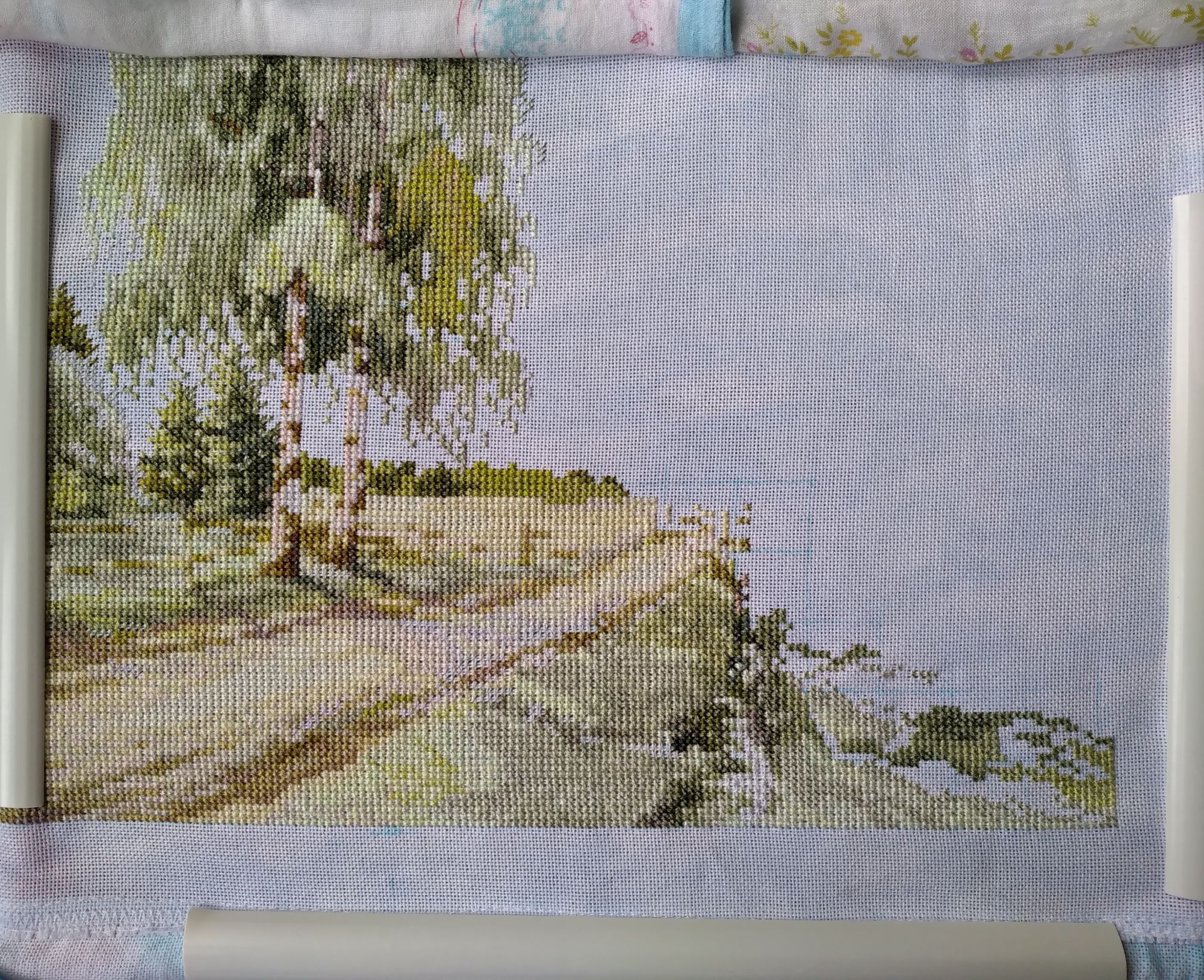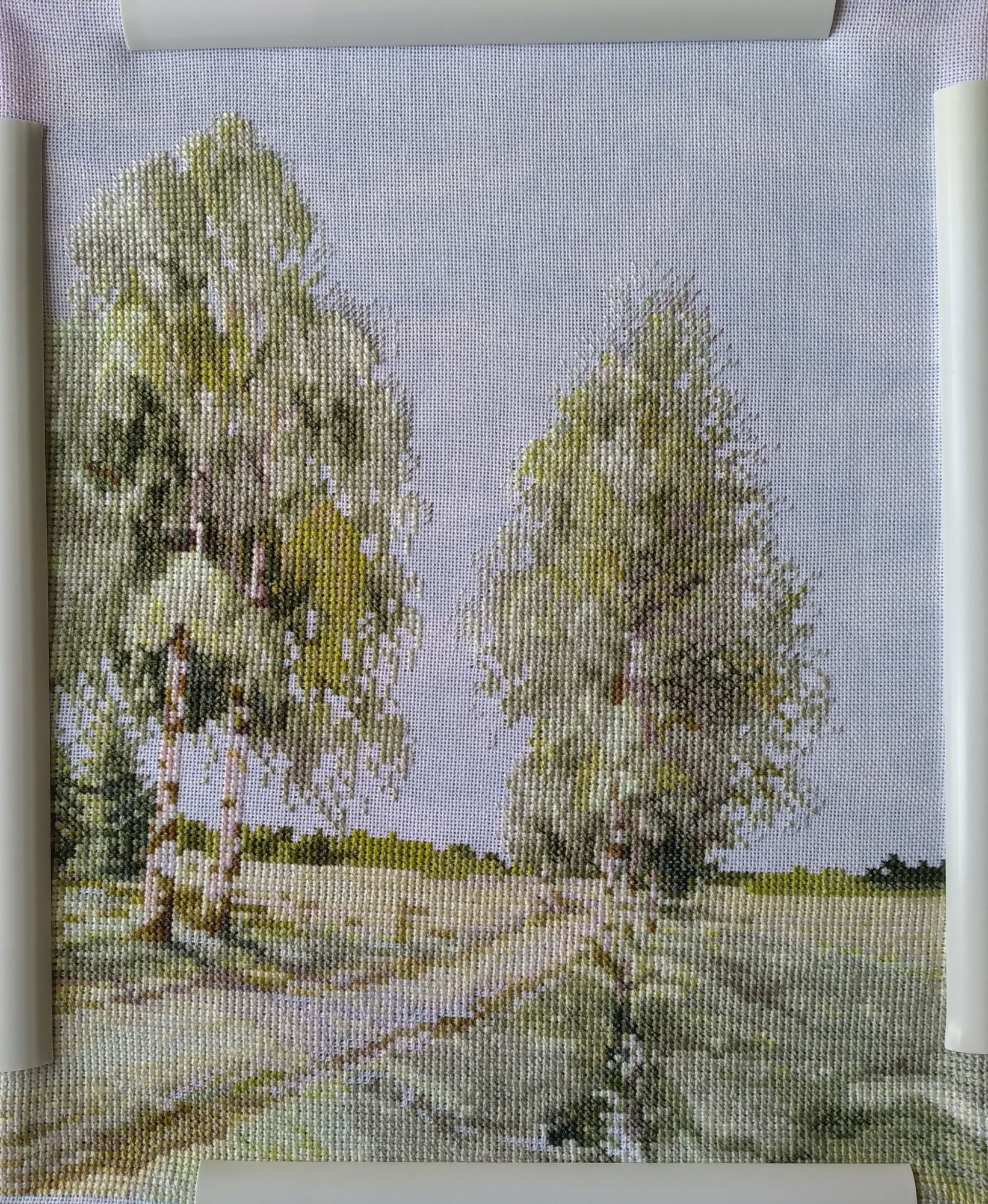 19 сентября 2024 Здравствуйте, девочки! В очередной раз стряхиваю пыль со своей странички. Накопилось вышивального, о чем и напишу. Главное - завершила я свой Проселок по схеме Волковой. Закрываю процесс. Это новая ступень для меня - авторская схема не по канве а по равномерке. Сам процесс летел как песня, до того мне нравилось вышивать такими цветами, да еще по такой равномерке. И вся эта песня летела до бэка. Бэк дался очень тяжело, он там и правда трудный. Но я, стиснув зубы, переделывая, перепарывая, все же в конце концов его победила. Сделала для себя по-максимуму, на лучшее я не способна. Особенно тяжело дался белый бэк, но это так всегда. Но результат мне понравился. Ненавязчиво получилось, и плетень, и дорога, и деревья оживились. И результат мне очень понравился. Акварельно, нежно. Правда фотографироваться картина не любит. "Хамелеонит". Зелень стремится отдавать в желтизну, небо приобретает грязноватый более темный, как бы предгрозовой оттенок. Но фотограф я еще тот , так что смотрите, как есть. Было: Стало (всё в гаечку, гаечку позеленить): Удивительно, что оттенок зелени отличается от фото на первью. Я грешила на нитки СХС, позавчера специально сходила в Леонардо и сравнила мои СХС с ДМС у них. Практически никакой разницы в зеленых цветах я не увидела, и это меня успокоило. Понять такую разницу не могу, буду грешить на освещение и камеру смартфона. Главное - нравится результат. На фото небо темновато, а в реалии оно светлее, нежнее и настоящее ясное летнее. На радостях вчера сходила с работой (прямо только что из-под утюга) в багетную, АртРама, я ее полюбила. Выбрала багет, отдала. Результат, конечно, покажу у себя. Параллельно продвинула бэк у миниатюрки "Перец". Его там полно, настоящие кружева. Но он для меня совсем нетрудным оказался, хотя и трудоемкий. Сделала большую часть, главное - нитями с золотым. Осталось немного. Было: Стало (в гаечку: И на радостях от завершения больших работ открываю новый процесс. В пару к перцу миниатюру "Горох". Заводим гаечку. Золотые ручки М-025, Горох, 15х15, аида 18, счетный крест У меня лежат готовые рамочки 15х15, которые мне декорировала в стиле декупаж моя ушедшая год назад подруга. Когда я увидела их в первый раз, совсем "не приняла", но виду конечно не подала. Теперь пересмотрела свое отношение к ним. Обязательно использую в память о подруге. Они выглядят так: Попробую применить их для пары Перец - Горох. Вышью, приложу, посмотрю. И вам покажу, интересно ваше мнение будет. Все-таки это деревенские овощи, может старый растрескавшийся камень (или дерево) к ним подойдет. Ну вот пока и все. Не вышивальная жизнь у меня без интересных событий. Все идет своим чередом, что тоже хорошо. Наше прекрасное теплое бабье лето идет к концу. Впереди настоящая осень. А она тоже прекрасна, недаром ее так любил Пушкин. Всем вам замечательных осенних дней. И вышиваем дальше! махно, Океан, 19199707770 и 17 других сказали спасибо Поделиться сообщением Ссылка на сообщение