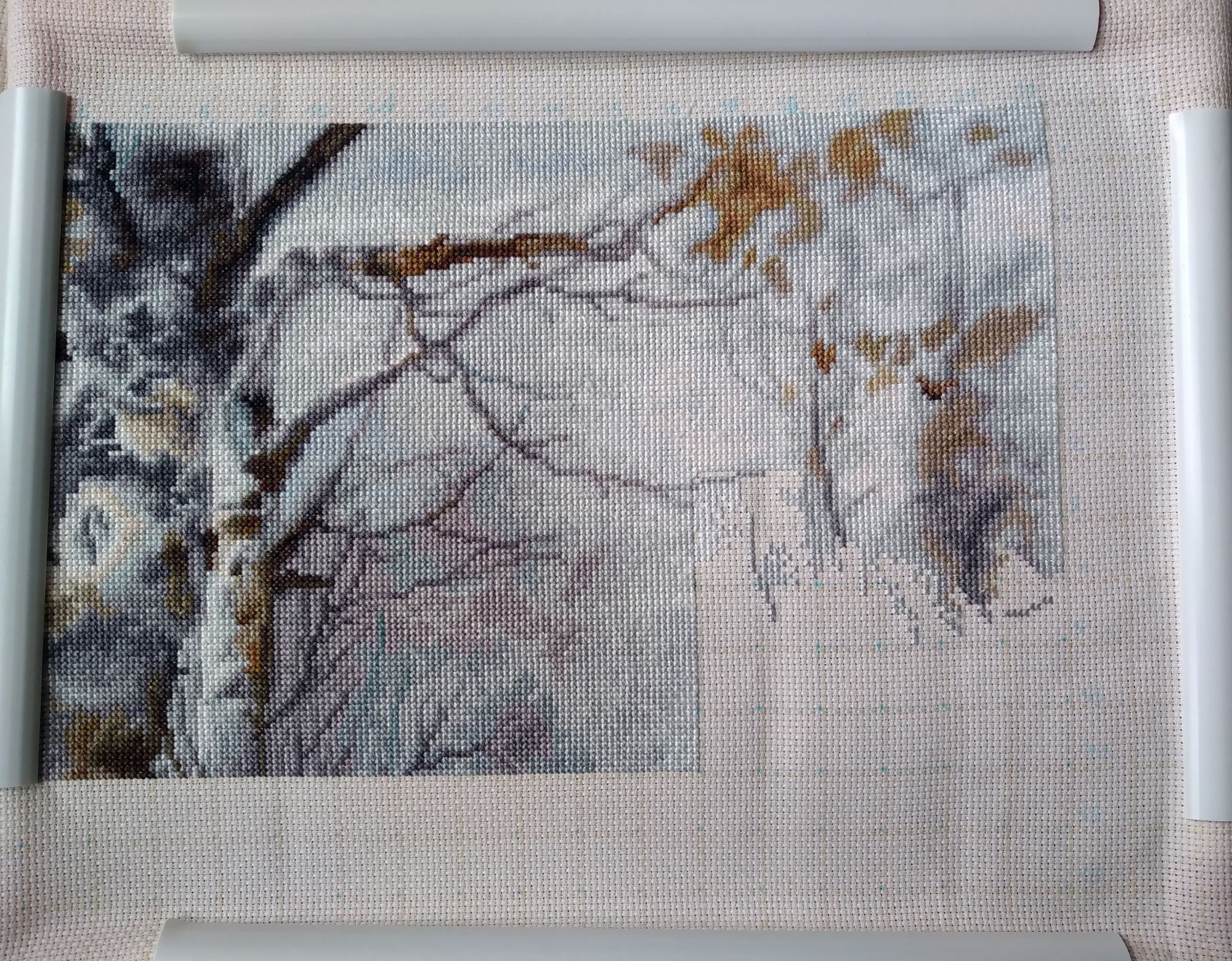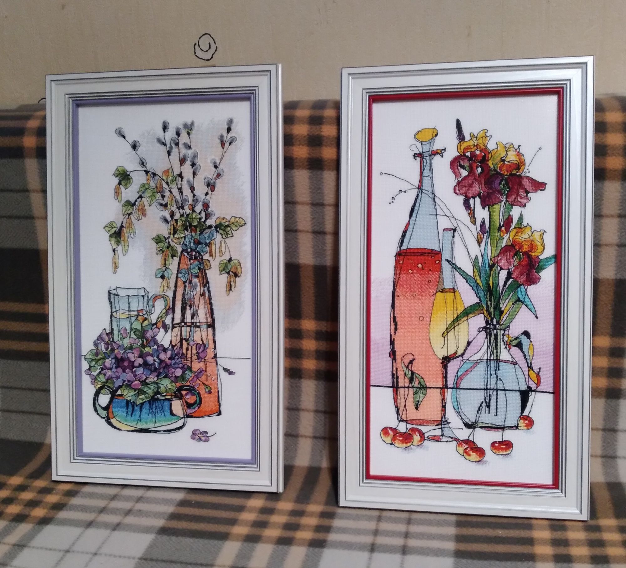 21 час назад Девочки мои дорогие, здравствуйте! С декабря прошлого года практически не вышивала и не выходила с отчетом в свою тему. Смываю с нее плесень и смахиваю паутину. Наконец-то набрала на отчетик. Потихоньку "Будулай возвращается" . Сначала о моем единственном начатом процессе - лукасовской зиме. Я завершила третий (из 9-ти) лист , и тем самым полностью оказался вышит верх, а это 1/3 часть работы. Кроме того, я вышила часть четвертого листа. Низ 3-го и часть 4-го листа вышивала после декабря, иногда, по чуть-чуть. И хоть немножечко, но продвинулась. Итак: Было: Стало (в гаечку): Мои дорогие Василисушки Наташа @Lorans, Лена @lenning, Галя @махно, Марина @Tata44, Марина @mag, Оля @Fascinata в свое время подарили мне на день рождения подарок. А день рождения у меня был аж в конце июня. Так сложились обстоятельства, что реализовать и показать этот подарок я могу только сейчас. В свое время я вышила для дочери, причем по ее выбору, 2 стеклянных дуэта. Они лежали у меня в рулончике, дочь все оттягивала с согласованием оформления до тех пор, пока совсем о них забыла. А они мне нравятся. И я решила их оформить просто для себя. Жаль такие композиции в шкафу держать, тем более я ничего за этот год не вышила. И сделала я это при спонсорской поддержке моих Василисушек. Это их подарок, и прекрасно, что он реализовался как чисто вышивальный и по-своему помог мне вернуться на форум, ощутить все эмоции процесса оформления и вида готовых работ. Огромное спасибо, мои дорогие подруги! Мой день рождения продолжился! Показываю то, что в итоге получилось. Как всегда много всяких фоток в разных вариантах, начиная с багетной. Вряд ли они понадобятся дочери, ее желание их иметь "перегорело" и она их забыла. Вешать мне некуда, но пусть пока порадуют меня дома. А потом скорее всего они уедут на дачу к сыну, может быть даже в мою комнатку. И я там буду ими любоваться. С невесткой мы уже этот вариант обговорили. А может, и дочери захочется к ним вернуться, как знать?... В любом случае у этого дуэта будет хорошая судьба. Ну вот и все о вышивальном. В конце июля - начале августа была 11 дней на реабилитации позвоночника в реабилитационном санатории Дугино (Смоленская область, под Вязьмой). Мне там понравилось. Морально-психологический положительный эффект налицо. Моей младшенькой внучке, Верочке, в субботу 25 октября будет годик. Шустрая, улыбчивая, голубоглазенькая и лицом очень похожа на сына. Как говорится, не успела оглянуться... и уже годик. Жизнь продолжается! Я постараюсь потихоньку возвращаться к хобби, пусть далеко не так, как раньше, по чуть-чуть, но вышивать. Трудные периоды имеют обыкновение заканчиваться. Поэтому свой отчет, как и раньше, я завершу словами: Вышиваем дальше! lenning, Фенечка З, BONA-чка и 16 других сказали спасибо Поделиться сообщением Ссылка на сообщение