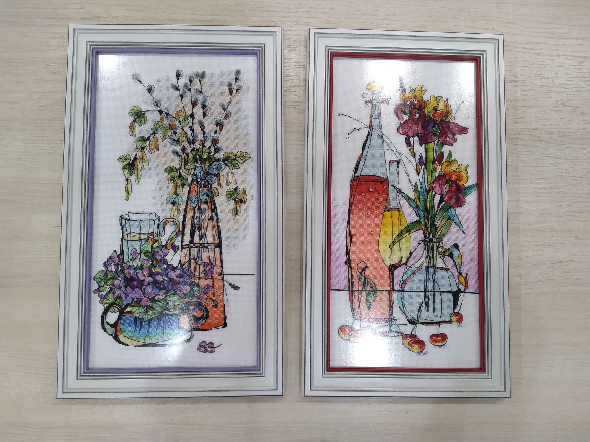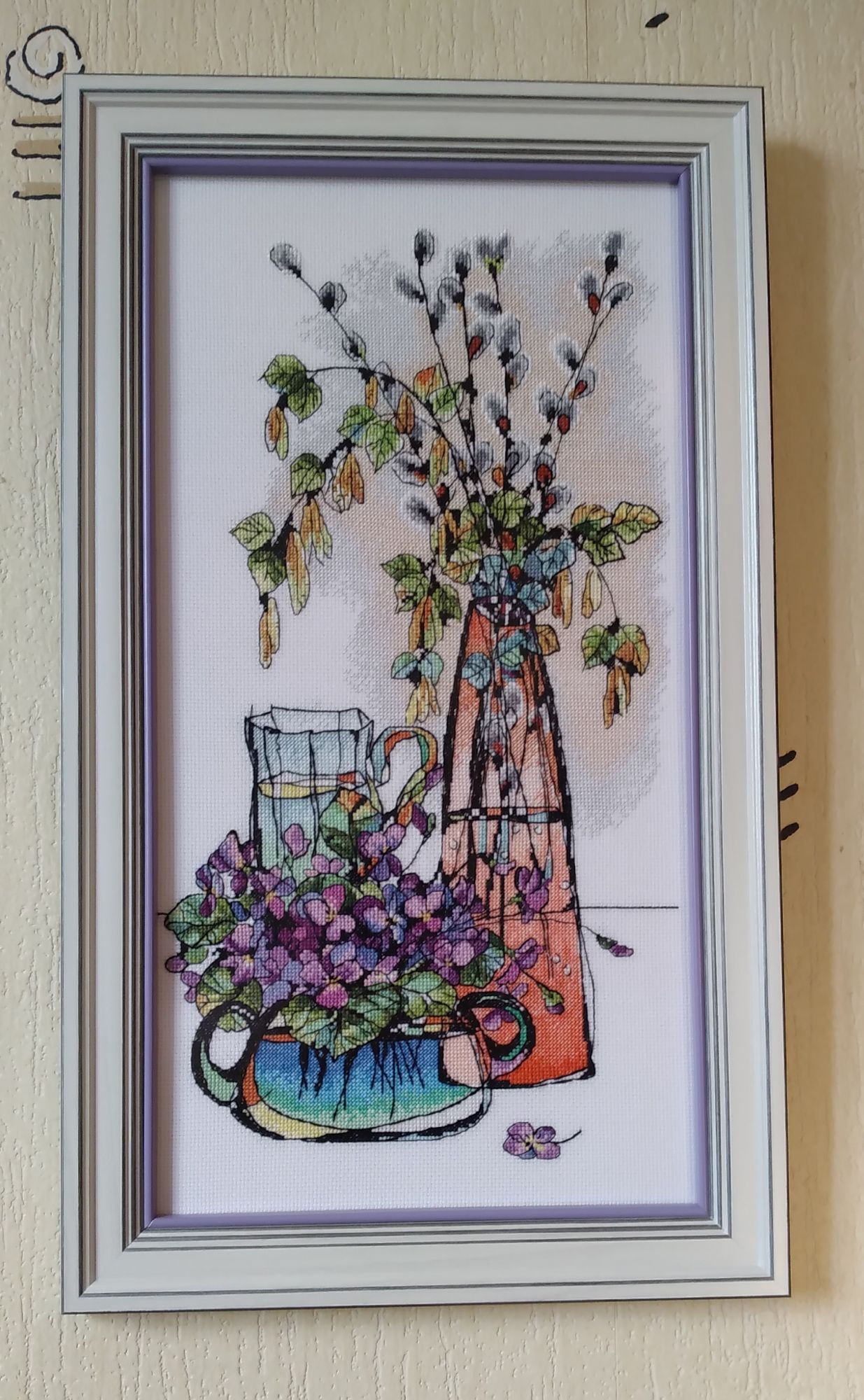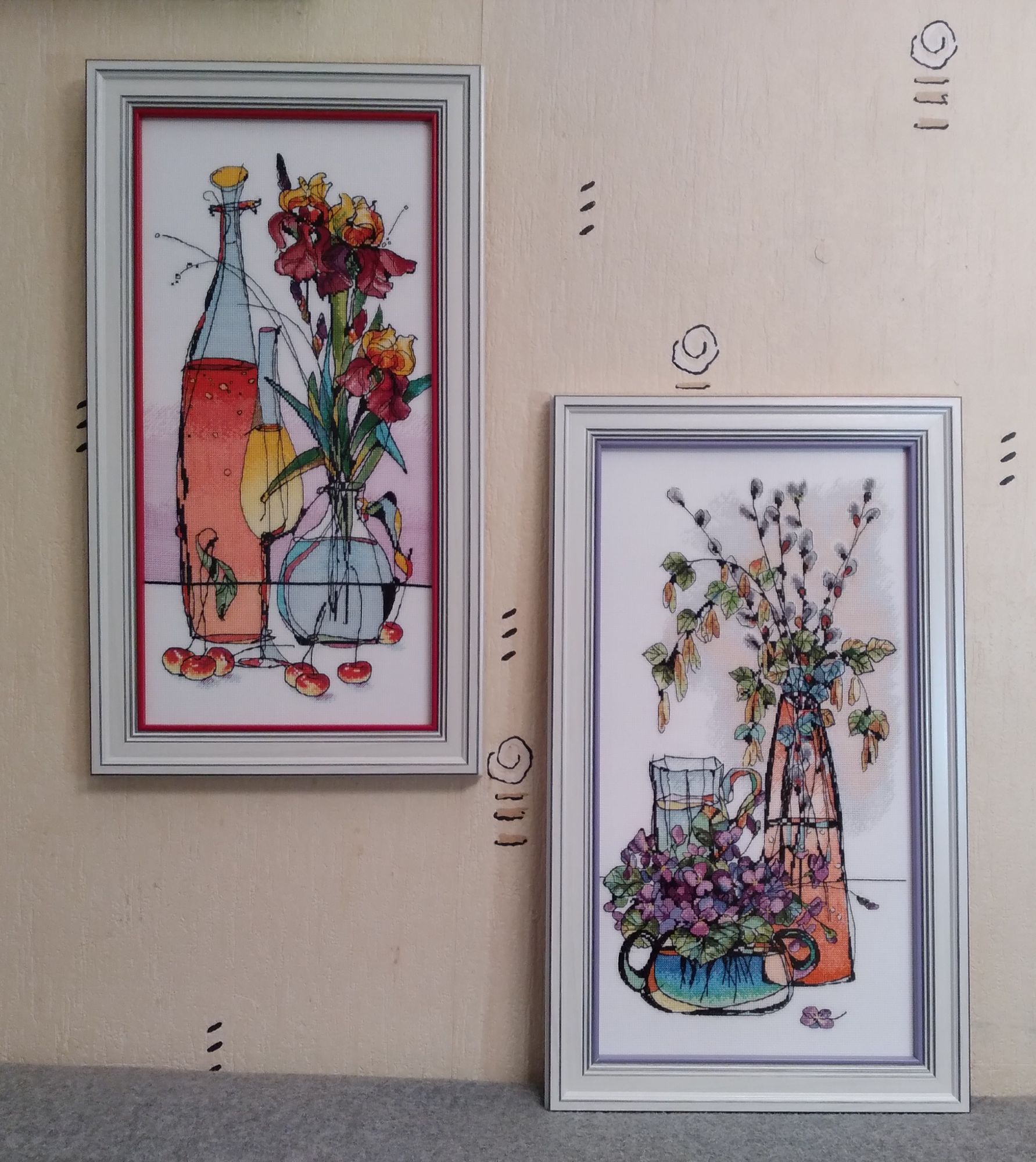 19 часов назад 1 час назад, Tatiana2406 сказал(а): Девочки мои дорогие, здравствуйте! С декабря прошлого года практически не вышивала и не выходила с отчетом в свою тему. Смываю с нее плесень и смахиваю паутину. Наконец-то набрала на отчетик. Потихоньку "Будулай возвращается" . Сначала о моем единственном начатом процессе - лукасовской зиме. Я завершила третий (из 9-ти) лист , и тем самым полностью оказался вышит верх, а это 1/3 часть работы. Кроме того, я вышила часть четвертого листа. Низ 3-го и часть 4-го листа вышивала после декабря, иногда, по чуть-чуть. И хоть немножечко, но продвинулась. Итак: Было: Стало (в гаечку): Мои дорогие Василисушки Наташа @Lorans, Лена @lenning, Галя @махно, Марина @Tata44, Марина @mag, Оля @Fascinata в свое время подарили мне на день рождения подарок. А день рождения у меня был аж в конце июня. Так сложились обстоятельства, что реализовать и показать этот подарок я могу только сейчас. В свое время я вышила для дочери, причем по ее выбору, 2 стеклянных дуэта. Они лежали у меня в рулончике, дочь все оттягивала с согласованием оформления до тех пор, пока совсем о них забыла. А они мне нравятся. И я решила их оформить просто для себя. Жаль такие композиции в шкафу держать, тем более я ничего за этот год не вышила. И сделала я это при спонсорской поддержке моих Василисушек. Это их подарок, и прекрасно, что он реализовался как чисто вышивальный и по-своему помог мне вернуться на форум, ощутить все эмоции процесса оформления и вида готовых работ. Огромное спасибо, мои дорогие подруги! Мой день рождения продолжился! Показываю то, что в итоге получилось. Как всегда много всяких фоток в разных вариантах, начиная с багетной. Вряд ли они понадобятся дочери, ее желание их иметь "перегорело" и она их забыла. Вешать мне некуда, но пусть пока порадуют меня дома. А потом скорее всего они уедут на дачу к сыну, может быть даже в мою комнатку. И я там буду ими любоваться. С невесткой мы уже этот вариант обговорили. А может, и дочери захочется к ним вернуться, как знать?... В любом случае у этого дуэта будет хорошая судьба. Ну вот и все о вышивальном. В конце июля - начале августа была 11 дней на реабилитации позвоночника в реабилитационном санатории Дугино (Смоленская область, под Вязьмой). Мне там понравилось. Морально-психологический положительный эффект налицо. Моей младшенькой внучке, Верочке, в субботу 25 октября будет годик. Шустрая, улыбчивая, голубоглазенькая и лицом очень похожа на сына. Как говорится, не успела оглянуться... и уже годик. Жизнь продолжается! Я постараюсь потихоньку возвращаться к хобби, пусть далеко не так, как раньше, по чуть-чуть, но вышивать. Трудные периоды имеют обыкновение заканчиваться. Поэтому свой отчет, как и раньше, я завершу словами: Вышиваем дальше! Танечка, с возвращением! Надеюсь, спина даст тебе вышивать. Стеклянные фантазии мне и так очень нравились,а в оформлении еще краше. Украсят любой интерьер. Гармонично ,современно, интересно.... Березки тоже сейчас начали продвигаться и это радует....так держать! nata2017, Lorans, махно и 2 других сказали спасибо Поделиться сообщением Ссылка на сообщение