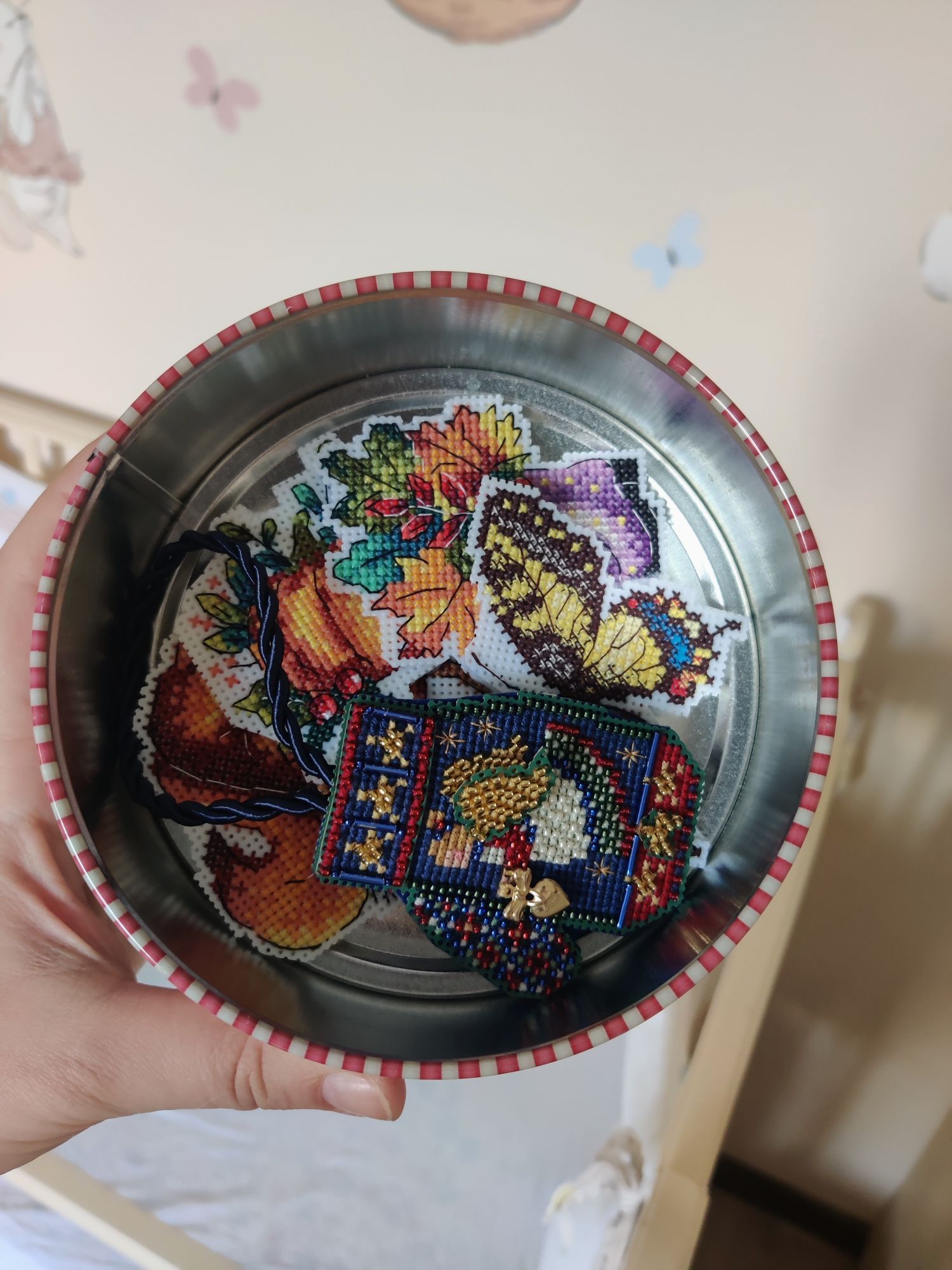 6 января 2022 Девочки! Спасибо вам всем за поздравления и пожелания! Я тут немножко выпала из форума - всей семьёй укатили дышать свежим воздухом на дачу к родственникам. В городе совсем отвыкла от неба в звёздах, по вечерам смотрела на непроглядную темень за окном, пока гуляли глядели на дубы колдуны в лесах, а вокруг участков многие красиво посадили аккуратные ели...а воздух какой!!! Красота же ж!!! В дорогу брала с собой из вышивки только кофточку дочке и Енотика Риолиса. ))) Фото в гайку, продолжение: 01.01.2022 в 13:15, AnnaMarie сказал(а): Кстати, вышив много наборов Дим, могу сказать, что некоторые миники были для меня потяжелее голдов - так они сложно шли... Так что, если этот набор не идет, то совсем не значит, что у тебя и другие не пойдут... С Новым 2022 годом!!! И тебя с Новым 2022 годом!! Пусть принесет только радость и счастье! Надо дотюкать маяк,взяться за котенка и проверить! Мне у Дим многие сюжеты нравятся (медовый мишка, например,такой хорошенький!). Но вот сложности эти как в моем маяке не нравятся вовсе. Может нет настроения нужного, когда думаешь "ого-го сколько всего в такой крохе понатыкано-то! Это же самая лучшая отдыхалочка от любого процесса! Ух,дайте две!". У меня пока "ух! Удавлюсь на люстре,но дошью!" 01.01.2022 в 14:16, ole4k@ сказал(а): Лера, с Новым годом! Пусть все задуманное исполнится! И тебя! Пусть наши мечты обязательно сбудутся! Как у Газпрома. 01.01.2022 в 14:16, ole4k@ сказал(а): Вот лиса у меня просто летела и я ее вышила для своих темпов очень быстро. Но северное сияние Мало того, что там металлизированная нить, которая путается все время и ей нужно шить поверх других вышитых крестиков, так я еще постоянно ошибаюсь в нем и распускаю. Причем интересно, что тот участок, на который все жалуются, я вышила быстро. А вот угол один никак не могу А у меня еще заныканы наборы красивые. И еще я тут недавно осознала, что воздушные шары-то оказывается на 18 канве. Короче не знаю как я буду все это шить Но лиса была не из голдов, может поэтому проще. Там полукрест максимум в 4 нити был и зашивка неполная. Лиса у тебя шикарная, но я никогда бы не подумала что она летела! Ну а Северное сияние это не для слабонервных, ещё и металлик если, то надо терпеть до победного финиша доковыркивая крестики. Бери эту вышивку измором! В закромах у тебя красоты много! Может поймаешь настрой и пойдет в удовольствие?! А почему бы и нет, в конце концов, всё же в жизни бывает. ))) 01.01.2022 в 14:16, ole4k@ сказал(а): Какие классные получились. Спасибо, я люблю пластик. ))) Завела наконец коробочку как у Маруси, под пластиковые забавы: Правда, только со второй попытки - первую доча сразу же себе забрала под резинки и заколочки. )) 01.01.2022 в 22:27, Isinka сказал(а): Лера, с новым годом тебя и твою семью! Пусть планы осуществляются, двигайтесь потихоньку к своей цели. Пусть малышка растёт и радует вас. Не болейте. Побольше времени на вышивальные радости)) Спасибо,Маш! И тебя с твоей богатырской ордой мужчин!! Пусть новый год будет самым лучшим для всех нас! 01.01.2022 в 22:52, amusante сказал(а): Лера, с Новым годом тебя! Пусть все желания сбудутся, а год принесет множество приятных и радостных сюрпризов. И тебя, Лиз, с Новым годом! Желаю тебе и твоей семье в новом году море-океан счастья и каждый день поводов улыбнуться!)) 01.01.2022 в 22:52, amusante сказал(а): В декабре совсем не было сил на форум =( постараюсь исправиться и почаще заходить сюда. Шикарные игрушки получились. 