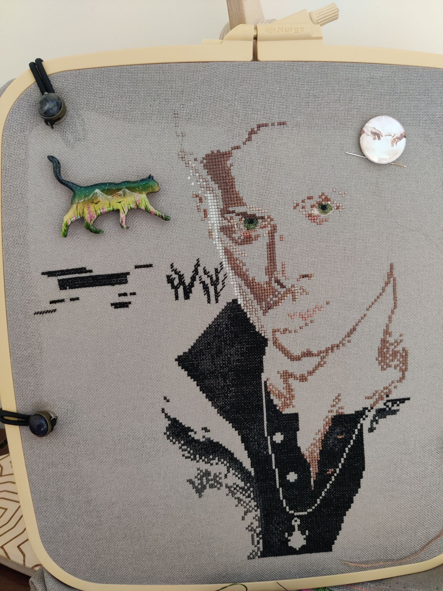 6 июля 2023 Дин Винчестер - фото в гайку - продолжение: Прыгнула недавно в омут, т.е. с разбега взялась вышивать красавчику Дину глаза - а там они практически полностью из четвертушек и это на Мурано. На минуточку! Четвертушки на довольно темной серой основе Мурано. Мои глаза со мной хотели попрощаться,но я вышивала только под лампой, включенной на максимум и по утрам, когда ещё сама была свежая и взгляд острый. В тишине,пока все дома спали, с кофе и аудио книжкой в наушниках - это ли не рай на земле. Кто боялся браться за Волкову? Я боялась! Теперь, после Дина? Вообще три раза "ха!", хоть сейчас готова взяться за айву! Что я не учла с этим процессом: - сроки горят, а вышивать много! - основа довольно темно серого оттенка, для глаз она совсем не подарок. - сам дизайн довольно большой, спасибо хоть зашивка неполная. - Дин Винчестер совершенно не мой типаж мужчины и я бубню его вышивая. - глаза зеленоглазому вышивать трудоемко. - впереди ещё км бэка. - большая часть процесса это черным и черно-серым по серому - это тоска. - схема проработана на отлично, собственно,весь набор на 5+. Но если сам сюжет оставляет в лучшем случае равнодушной (как меня), то брать его не стоит. Всем черешни,ровных крестиков и летнего настроения! Marusya1978, Беладонна, Охотница и 13 других сказали спасибо Поделиться сообщением Ссылка на сообщение