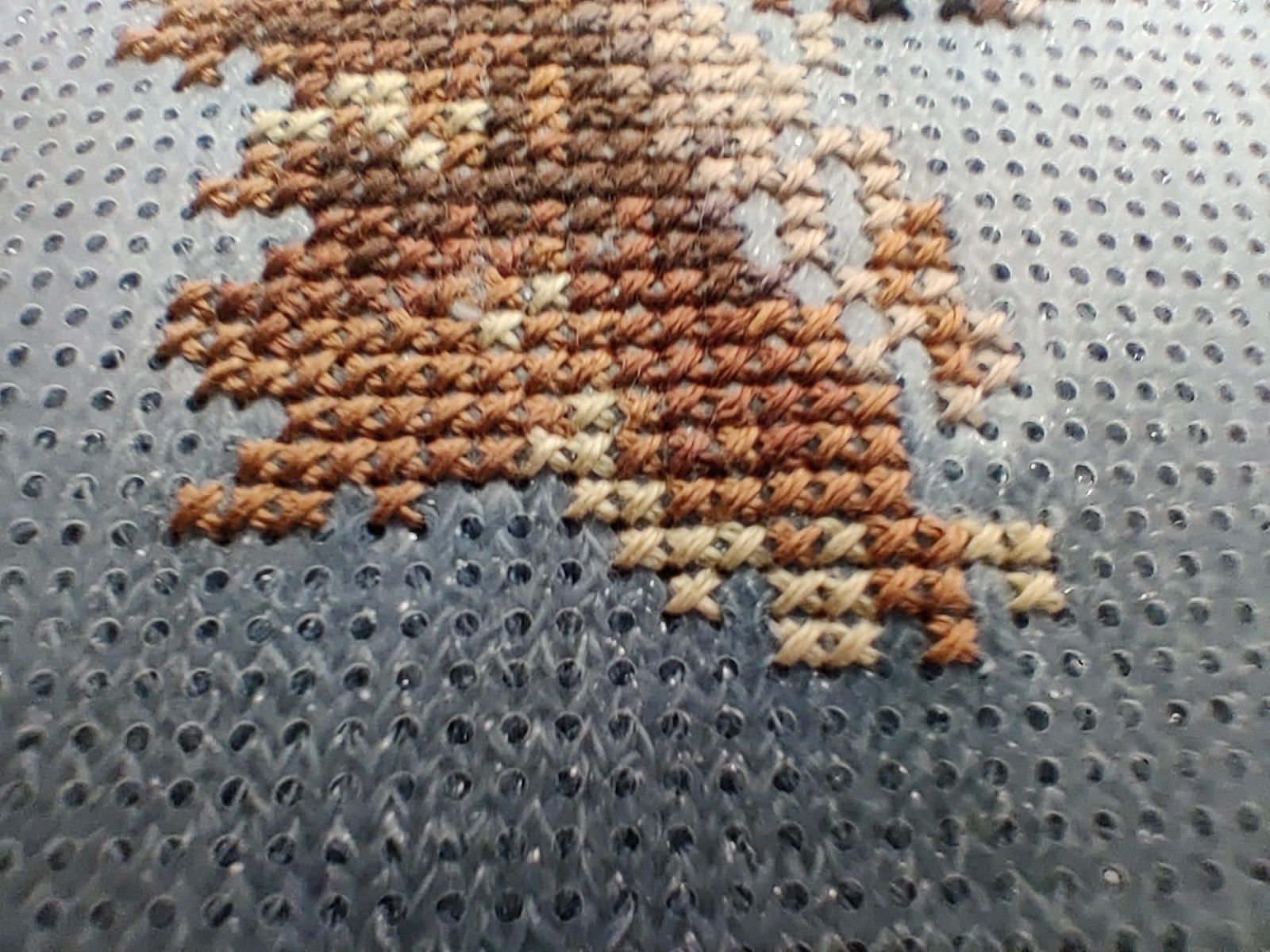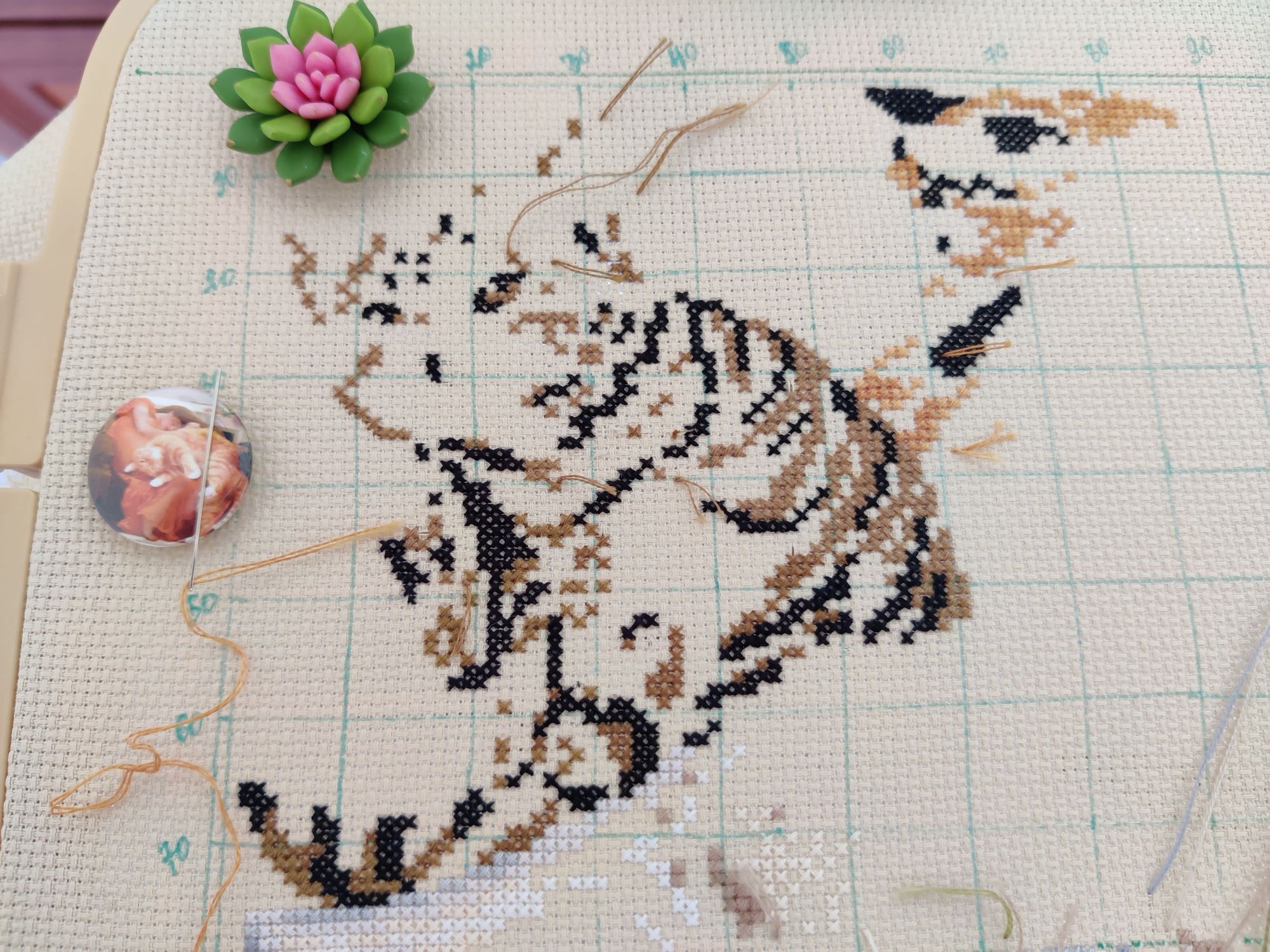 7 августа 2020 Сражаюсь с закрепкой на лице прямо как Дон Кихот Ламанчский с мельницами. У меня идея фикс найти идеальный вариант закрепки именно "на лице",чтобы в дальнейшем рамы в тисках вообще не трогать. Вначале думала о методе "пятелька",но иногда ведь нитки настолько короткие,что это становится издевательством. Потом решила освоить микро стежок. Нашла не помню уж на каком канале ютуба метод "спрячем микростежок". Решила "о!!!! Это же оно!!" А вышла порнография... Все фото не для гайки. В анамнезе имеем 14 аиду и закрепку микростежком, который теоритически должен быть незаметным, провалившись между волокнами. Искала,искала на ютубе и нашла как девушка крепит вначале на лице узелком подальше от места старта. А в конце выводит нитку на лицо по диагонали и её позже крепят остальные крестики работы. Теперь у меня везде торчат "концы" ниточек. И фото стресс теста моих тисков, "цыпы" : Как же удобно,что они держат одинаково легко что рамы, что пяльца и их можно (не снимая и никуда не убирая работу) вот так "завернуть" вверх от маленьких любопытных ручек!! Хозяйка смешных зверей, Kattrielle, AnnaMarie и 8 других сказали спасибо Поделиться сообщением Ссылка на сообщение