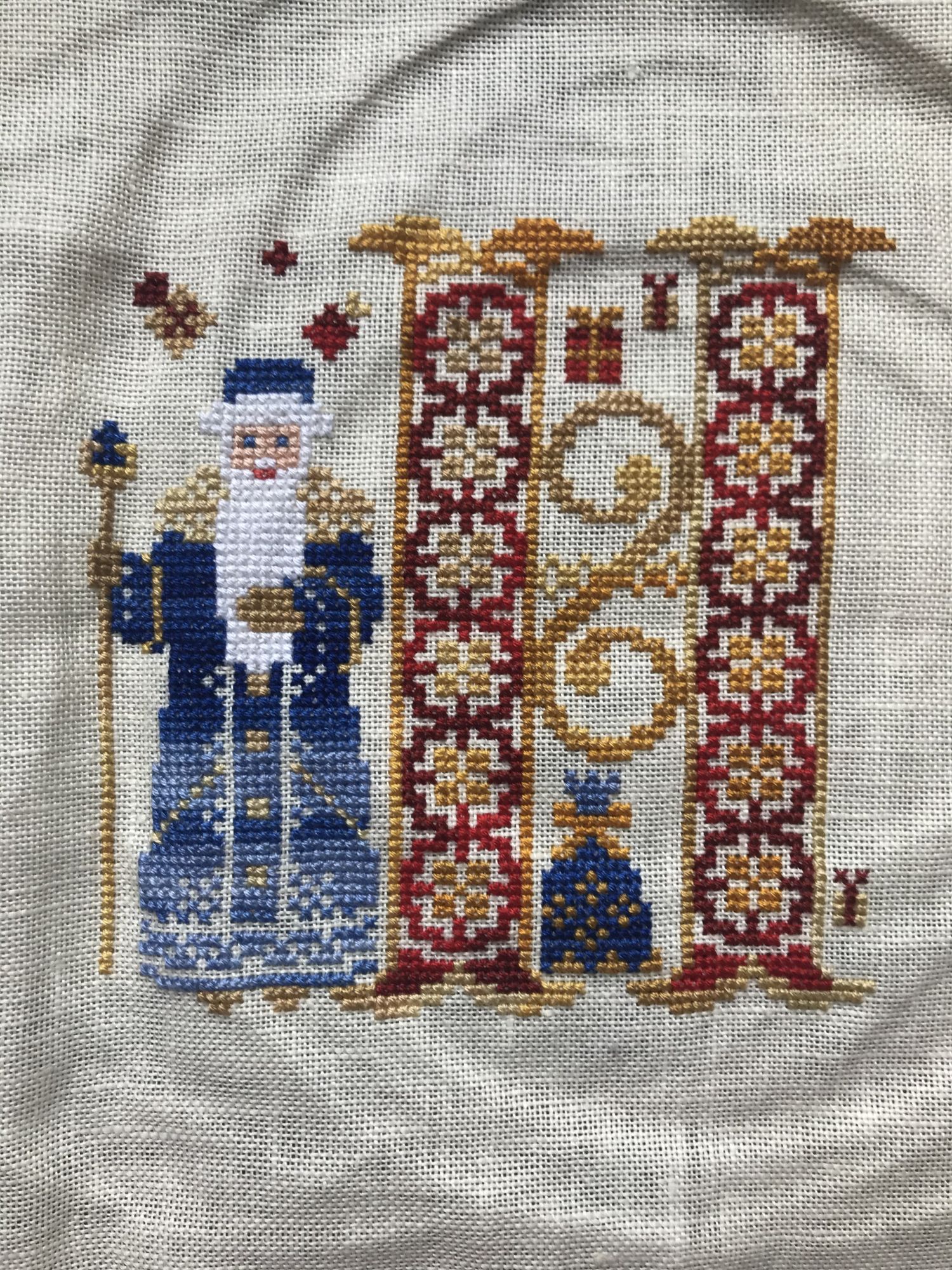 31 июля 2020 Красочная нота Я выбрала ноту ре - синий цвет. В плановых дизайнах его оказалось как-то не очень много. В Новогодних флажках от Совиного леса синим цветом вышила на двух новых флажках с нуля деда Мороза и Снегурочку -1015 крестиков. Но ввиду того, что в работе используются нитки секционного окрашивания, временами мой синий цвет светлел почти до голубого. поэтому я вышила ещё 233 крестика в другом дизайне из плана - Зимний пейзаж от Матрениного Пасада. Было стало Anneti, lefkorosida, Вега и 13 других сказали спасибо Поделиться сообщением Ссылка на сообщение
