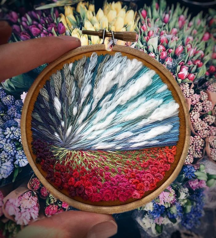 1 сентября 2020 УДИВИТЕЛЬНОЕ РЯДОМ Сейчас уже никого не удивишь картиной, вышитой крестиком, бисером или гладью. Даже большой и красивой. Поэтому мастерицы придумывают что- то новое, комбинируют техники и включают творческую фантазию. И получаются удивительные работы... Одной из таких мастериц является рукодельница Вера Шимберева (Шимуня) из Санкт-Петербурга, которая с помощью ниток и пяльцев создает великолепные пейзажи в стиле импрессионизма. Вышивку Веры в интернете прозвали "хулиганской гладью", и для нее не нужны эскизы и заготовки. Девушка "рисует то, что чувствует", а ее главный персонаж - это природа. На создание одной вышивки идет от трех дней до месяца, а некоторые ее работы не больше кончика пальца. Вот некоторые ее работы. Agusia, Selenia, dinakopacheva и 17 других сказали спасибо Поделиться сообщением Ссылка на сообщение