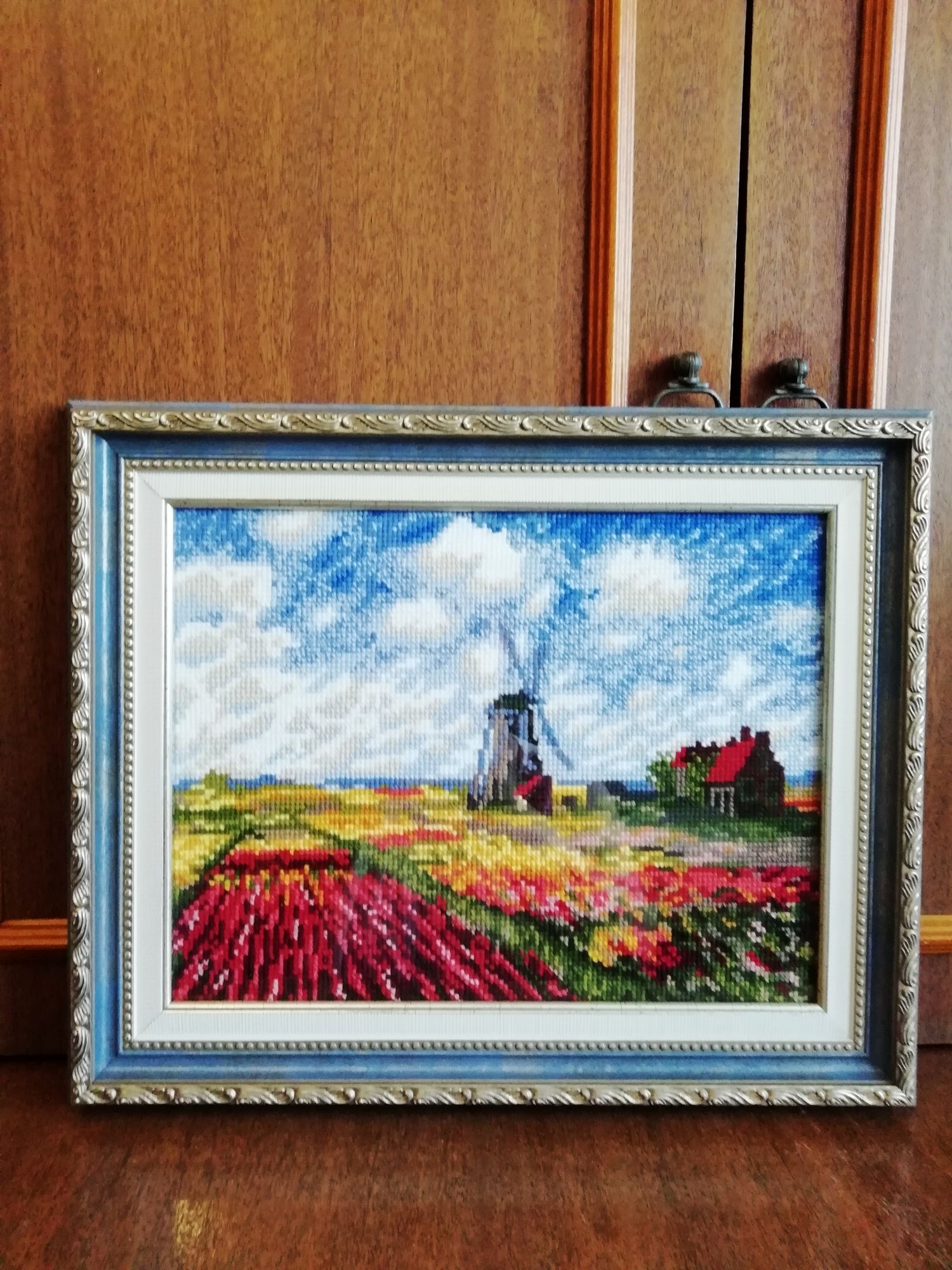4 октября 2020 Художественная галерея. Напишу об вышитой работе Риолис 1643 "Поле с тюльпанам", одной из любимых. . Клод Моне известный художник и отец импрессионизма, в 1883 году арендовал дом с большим садом в Живерни, поселившись там с двумя сыновьями, второй женой. а также её шестью дочерьми от первого брака. Увлёкшись садоводством, долгие годы он обустраивал это место — рыл пруды, строил мосты, растил кувшинки, сажал цветы, в том числе розы, ирисы, георгины, глицинии, тюльпаны, а также отправлялся на поиски новых растений и попутно зарисовывал их. Во второй половине 1880-х годов Моне несколько раз удалялся от комфортной жизни в Живерни и отправлялся в творческие поездки в более или менее отдаленные места — плодом этого становились новые картины, дорабатываемые художником в своей мастерской в Живерни. Так, в период с 27 апреля по 6 мая 1886 года он побывал в Голландии. Соответствующее приглашение поступило от барона Эстурнеля де Констана, секретаря французского посольства в Гааге и будущего лауреата Нобелевской премии мира. Барону нравились работы Моне, а кроме того он дружил с коллекционером его полотен — Шарлем Дедоном. В письме критику Теодору Дюрэ. Моне писал: «Я приехал сюда по приглашению джентльмена, которого я не знал, друга Дедона, поклонника моих полотен, который хотел показать мне урожай, огромные поля в полном расцвете; это замечательно, но сводит с ума бедного художника; это всё слишком для наших плохих красок». Картина написана маслом на холсте, а её размеры составляют 65,5 × 81,5 см. Картины, написанные Моне в Голландии, экспонировались на международной выставке, организованной галеристом Жоржем Пети в Париже в 1886 году. «Поля тюльпанов в Голландии» были среди первых работ Моне, которые увидел Ван Гог по прибытии в том же году в Париж, оставшись, вероятно, под впечатлением от гладких мазков и ярких цветов этого видного художника-импрессиониста. Тогда же прямо с выставки картину за две с половиной тысячи франков купила у Моне лично Виннаретта Зингер, будущая принцесса и супруга Эдмона де Полиньяка. Полотно находилось у неё до 1944 года, а затем как наследство принцессы принято государством в дар, отправлено в Лувр и с 1947 года выставлялось в галерее Же-де-Пом. В 1986 году работа была передана в музей Орсе, где и находится в настоящее время. soln33, Вега, titania и 12 других сказали спасибо Поделиться сообщением Ссылка на сообщение