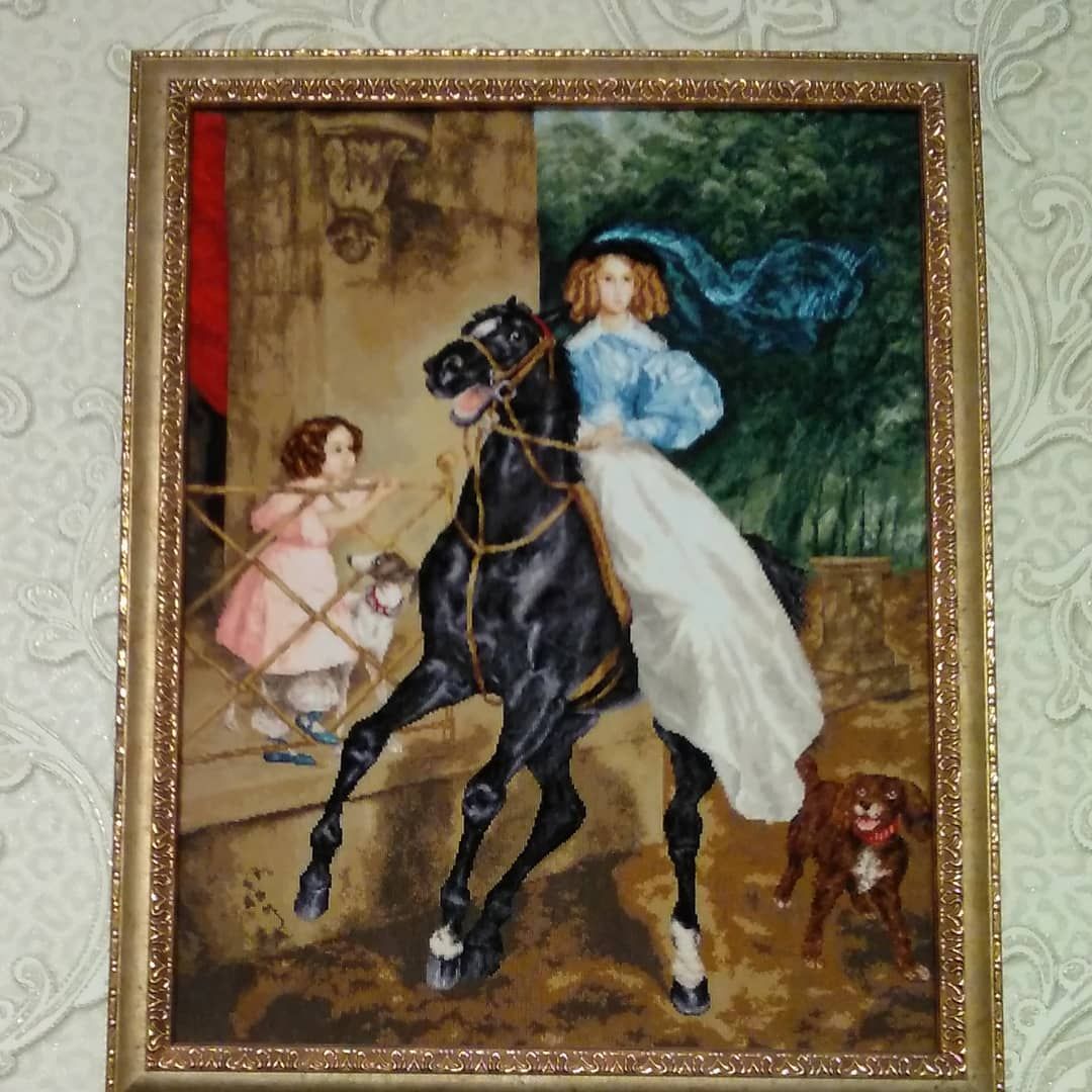 4 октября 2020 Художественная галерея. Трудно выбрать одну, самую любимую. Но от первой (и пока единственной) отшитой впечатления незабываемые! Карл Брюллов. Всадница. Картина была написана в Милане по заказу графини Юлии Самойловой. В том же 1832 году полотно экспонировалось в миланской Академии изящных искусств Брера, где оно было высоко оценено зрителями и критиками. В своих отзывах итальянцы писали, что им до сих пор не приходилось видеть «конного портрета, задуманного и исполненного с таким искусством». После этого полотно находилось в собрании Юлии Самойловой, и в течение почти сорока лет о нём практически ничего не было известно. В 1872 году, за три года до смерти разорившейся Самойловой, в Париже была организована распродажа её имущества. На аукционе «Всадница» была куплена одним из комиссионеров, затем полотно попало в Петербургское общество для заклада движимых имуществ, а оттуда в 1893 году его приобрёл Павел Третьяков. Долгое время считалось, что на картине была написана сама Юлия Самойлова. Впоследствии искусствоведы пришли к выводу, что в качестве наездницы была изображена воспитанница Самойловой Джованнина, а моделью для маленькой девочки послужила Амацилия, дочь композитора Джованни Пачини и приёмная дочь Самойловой. По словам искусствоведа Магдалины Раковой, «Всадница» является «типичным примером портрета-картины», в котором всё «задумано как апофеоз красоты и жизнерадостной юности, как апофеоз безмятежности ощущения жизни», и всё это заключено в двух действующих лицах — молодой наезднице и маленькой девочке. tessykat, Agusia, titania и 13 других сказали спасибо Поделиться сообщением Ссылка на сообщение
