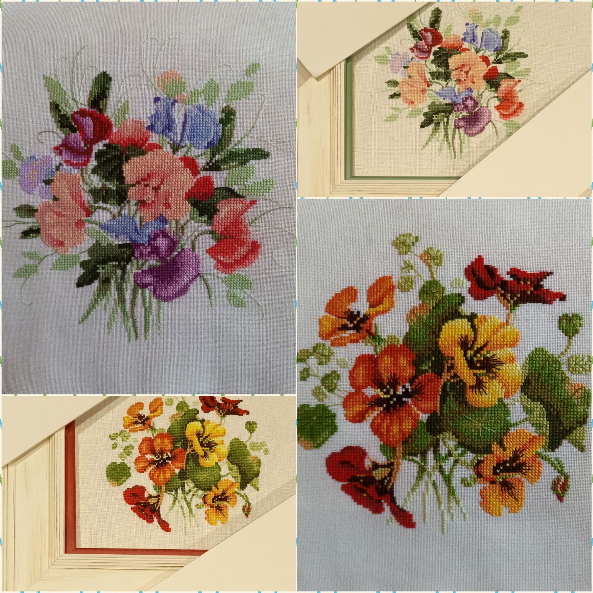 19 октября 2020 Виртуальная выставка Мой прекрасный сад Я в своих предпочтениях неоригинальна: люблю цветы А т.к. для реализации своей мечты не имею возможностей (т.е. достаточного количества земли), то приходится выращивать цветы в крестиках Самыми первыми в моем виртуальном саду появились наперстянка и дельфиниум о "Чаривной мити": Сейчас украшают любимую дачу: Очень понравились географическо-цветочные риолисовские корзинки. Ромашки уже висят: Вереск подходит к финалу, лаванда и рапс впереди. Оформление у всех будет одинаковым. Возможно, когда-нибудь переоформлю. Прекрасные херитажевские букеты душистого горошка и настурций еще не одеты, но оформление уже подобрано, осталось дождаться нужного багета: Прекрасно проработанный и яркий букет незабудок от Овна подарен сестре: . Удивительные нежные шовчиковые настурции и луки приносят весну в мой дом: Цветы люблю не только в саду, но и в живописи. "Букет подсолнухов" Ван Гога неизвестного китайского производителя куплен на распродаже и вышит в 1 нить, но все равно прекрасен: Подарен тете, которая с раннего детства знакомила меня с миром картин и художников. А моя мечта о собственном прекрасном саде воплотилась в серии херитажевских мириатюр: . В выставках никогда не участвовала: не вхожу ни в какие постоянные оффлайн вышивальные "тусовки". Да и если бы входила - мои работы обыкновенные, таких много у каждой вышивальщицы. Но я их все нежно люблю! Anneti, lamina-65, soln33 и 15 других сказали спасибо Поделиться сообщением Ссылка на сообщение