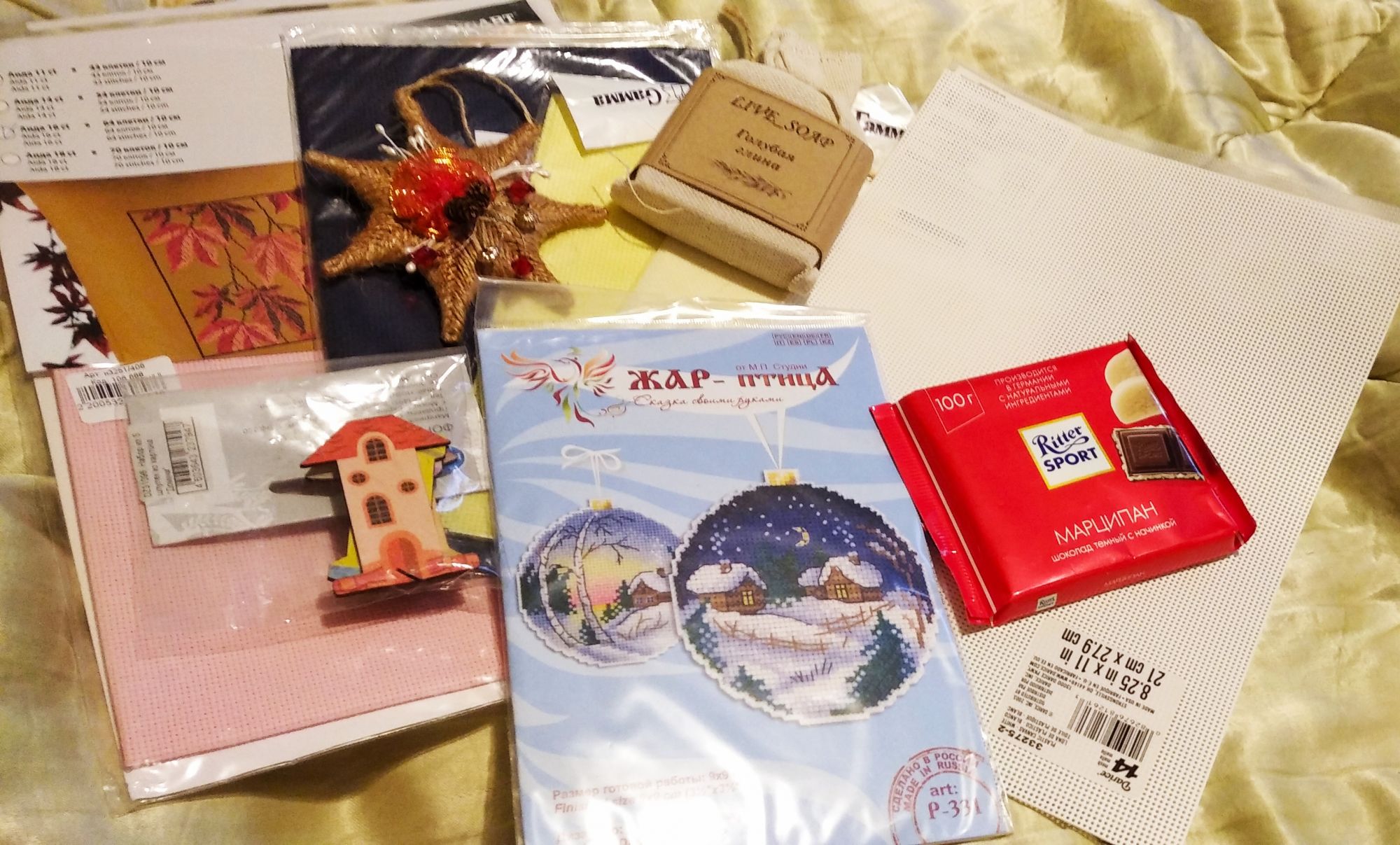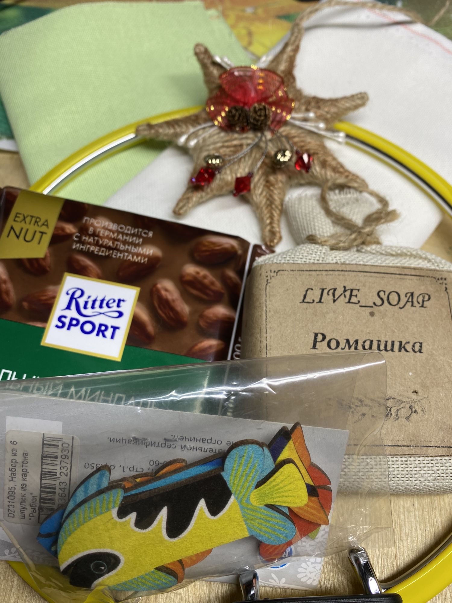 29 января 2021 Девочки! Я вам принесла похвастать! Выцырапала из лап почты посылку. А там вот что два кусочка моей любимой равномерки , пальцы нурге, шоколадка, мыло, рыбки на которые можно нитки намотать, и классная игрушка Танюша огромное тебе спасибо! Подарки просто замечательные! Игрушку повесила себе на лампу будет там висеть. Marti, tessykat, Ксен40 и 10 других сказали спасибо Поделиться сообщением Ссылка на сообщение