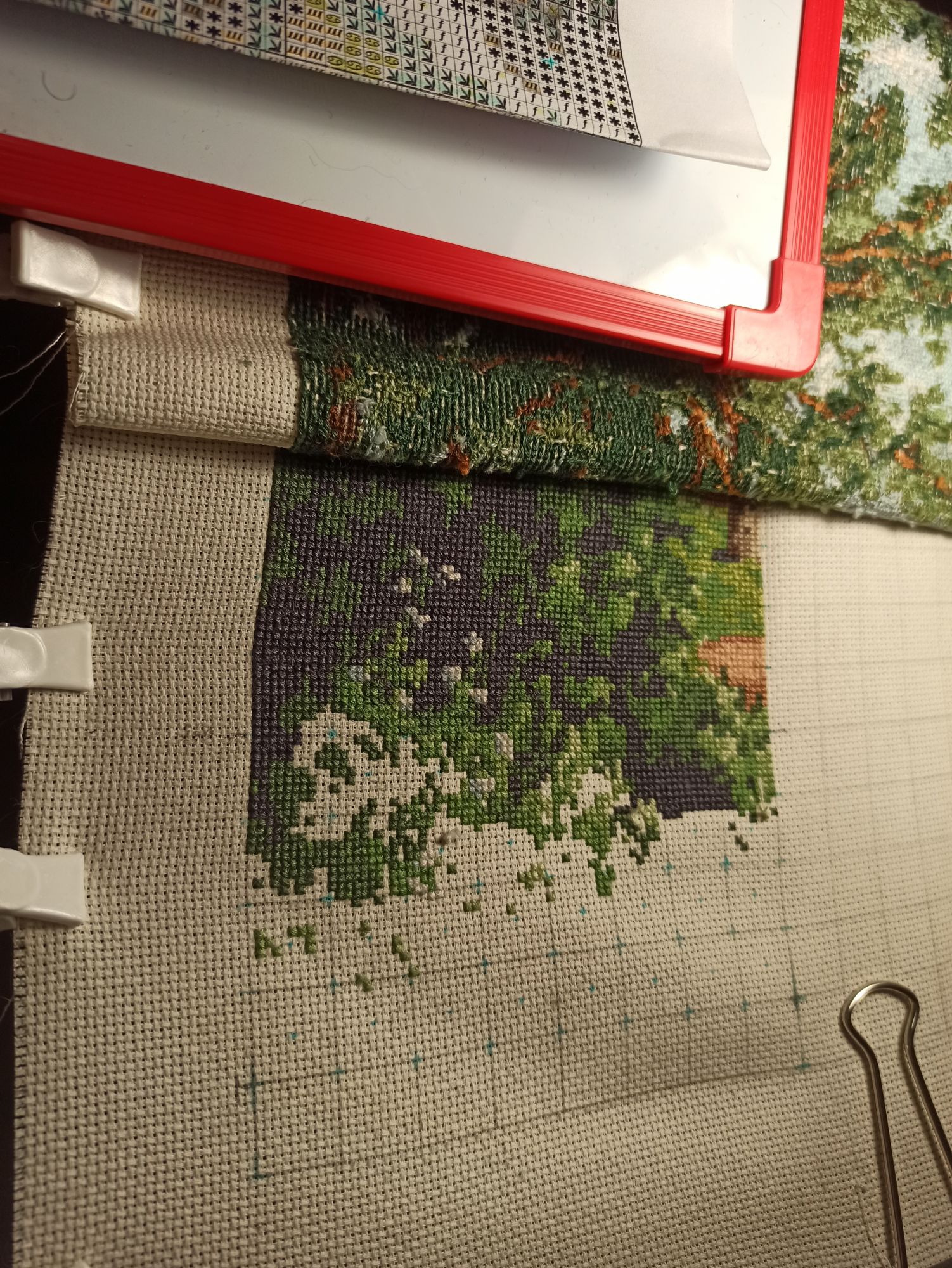 3 января 2020 И еще рассказ о подготовке нового процесса. Вот уже 5 лет для меня не стоит вопрос "Что шить дальше", т.к. я каждый год участвую в планировании. Но в рамках игры, т.к я шью не один набор весь год, выбор все же есть. Но обычно я чередую простые и сложные наборы. Если вышита какая-то отдыхалочка, то после нее беру посложнее набор из запланированных. Обычно я размечаю канву смывающимся маркером, начинаю с левого верхнего угла. Отсчитываю по 10 клеточек, делаю насечку, потом еще 10 и так далее до конца. Потом считаю, сколько квадратов в схеме по горизонтали. Например, их 15, а у меня на канве получилось 20. Тогда я с одного края отступаю 2 квадрата, с другого 3 и прочерчиваю границы вниз. Это будут боковые границы вышивки. Потом так же делаю с границами верхней и нижней. Для этого иду сверху вниз по 10 клеточек и отмечаю насечками так же. Итого у меня получается на канве нарисован маркером квадрат, внутри которого будет вышивка. После этого я размечаю этот квадрат внутри на мелкие квадратики 10*10 клеточек. Края канвы я не обметываю и никак не обрабатываю. Было время, когда у меня был какой-то классный клей для ткани, я им проклеивала края канвы. Но он закончился, марку я забыла, в магазинчик рядом с домом его завезли лишь раз (тогда я его и приобрела). Машинка у меня у мамы, к ней ходить каждый раз лениво)))) Поэтому так уже шью, без ничего Когда канва размечена, начинаю шить. Шью с какого-нибудь участка, где сосредоточено много крестиков одного цвета. Шью по цветам. Парковку как-то я не осилила. Да и бзик у меня на идеальной изнанке. Конечно, никак я ее соорудить не могу - протяжки все равно есть, небольшие, конечно, но есть. Когда шью, то закрашиваю схему, поэтому всегда в начале процесса у меня рядом лежит какой-нибудь остро отточенный цветной карандаш: красный, голубой или зеленый. Как-то исторически сложилось, что использую именно эти три цвета. И еще точилка всегда под рукой, т.к. карандаш быстро затупляется. Цветные глянцевые схемы закрашивать не получается, потому шью без карандаша и страдаю Из-за этого стараюсь такие работы завершить очень быстро, чтобы опять красить Еще пользуюсь зажимами, закрепляю ими свободную канву. Эту идею подсмотрела тоже тут, на форуме. Также все хвостики складываю в процессе в пакет, где был набор. А потом по окончании процесса торжественно выбрасываю все хвосты в мусорное ведро. Это такое символического завершение процесса Marti, korund, Ан4оус и 19 других сказали спасибо Поделиться сообщением Ссылка на сообщение